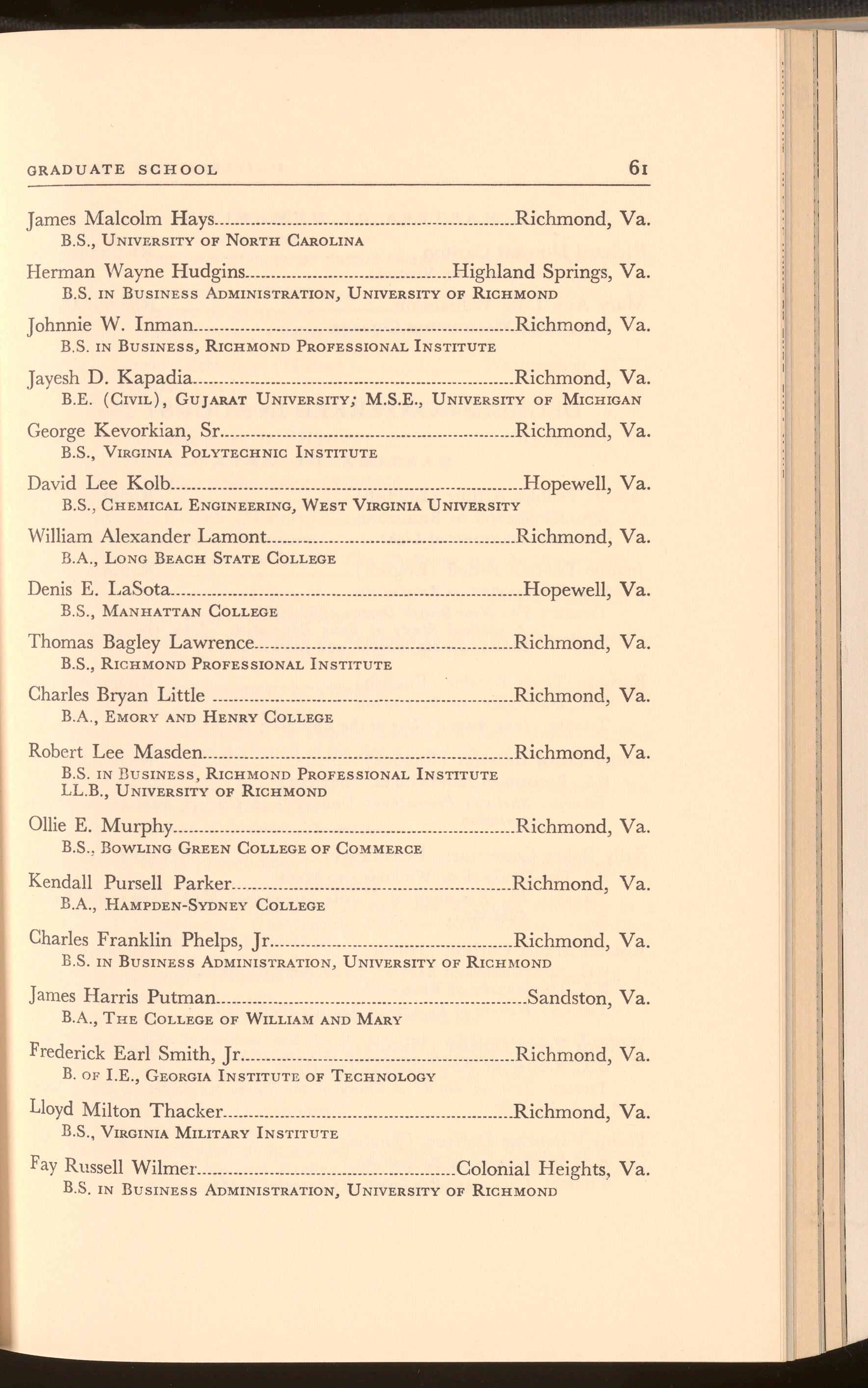 George Edward Morgan ................... - ............................... Richmond, Va.