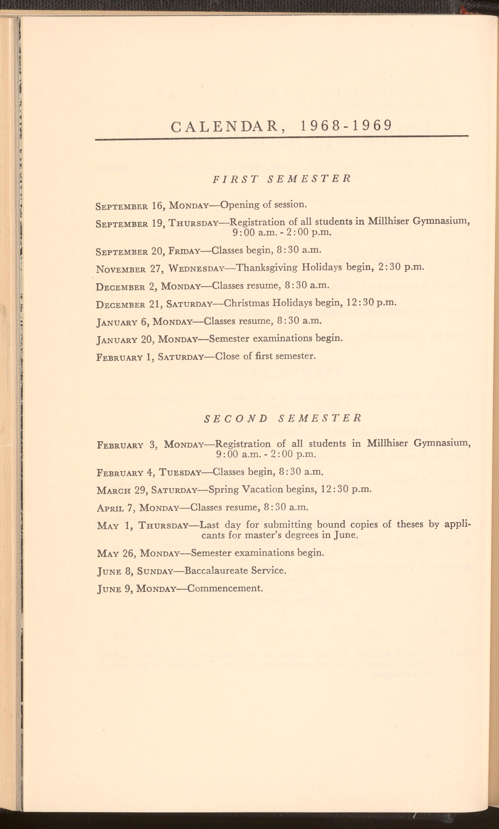SEPTEMBER19, THURSDAY-Registration of all students in Millhiser Gymnasium, 9 : 00 a.m. - 2:00 p.m.