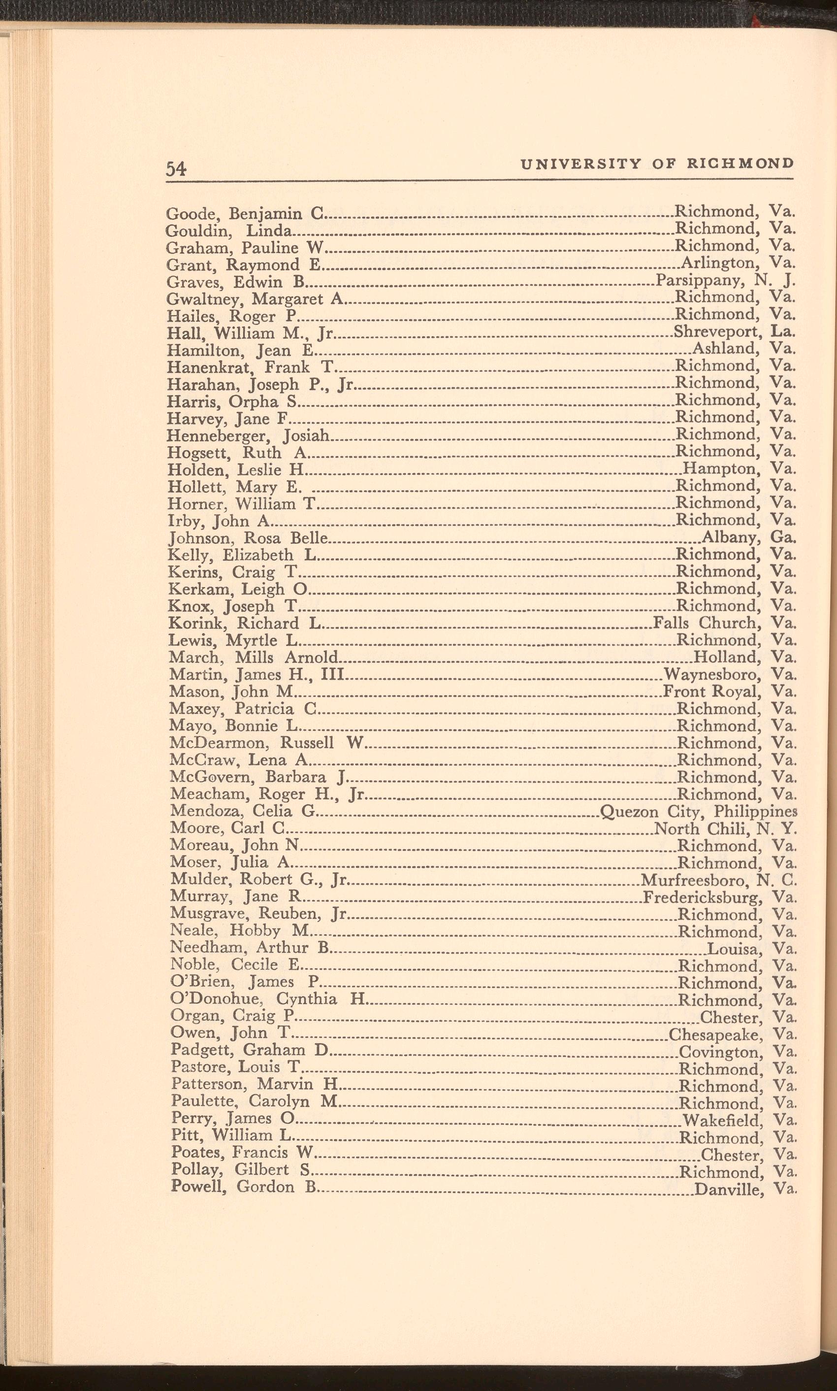 UNIVERSITY OF RICHMOND, VIRGINIA 23173