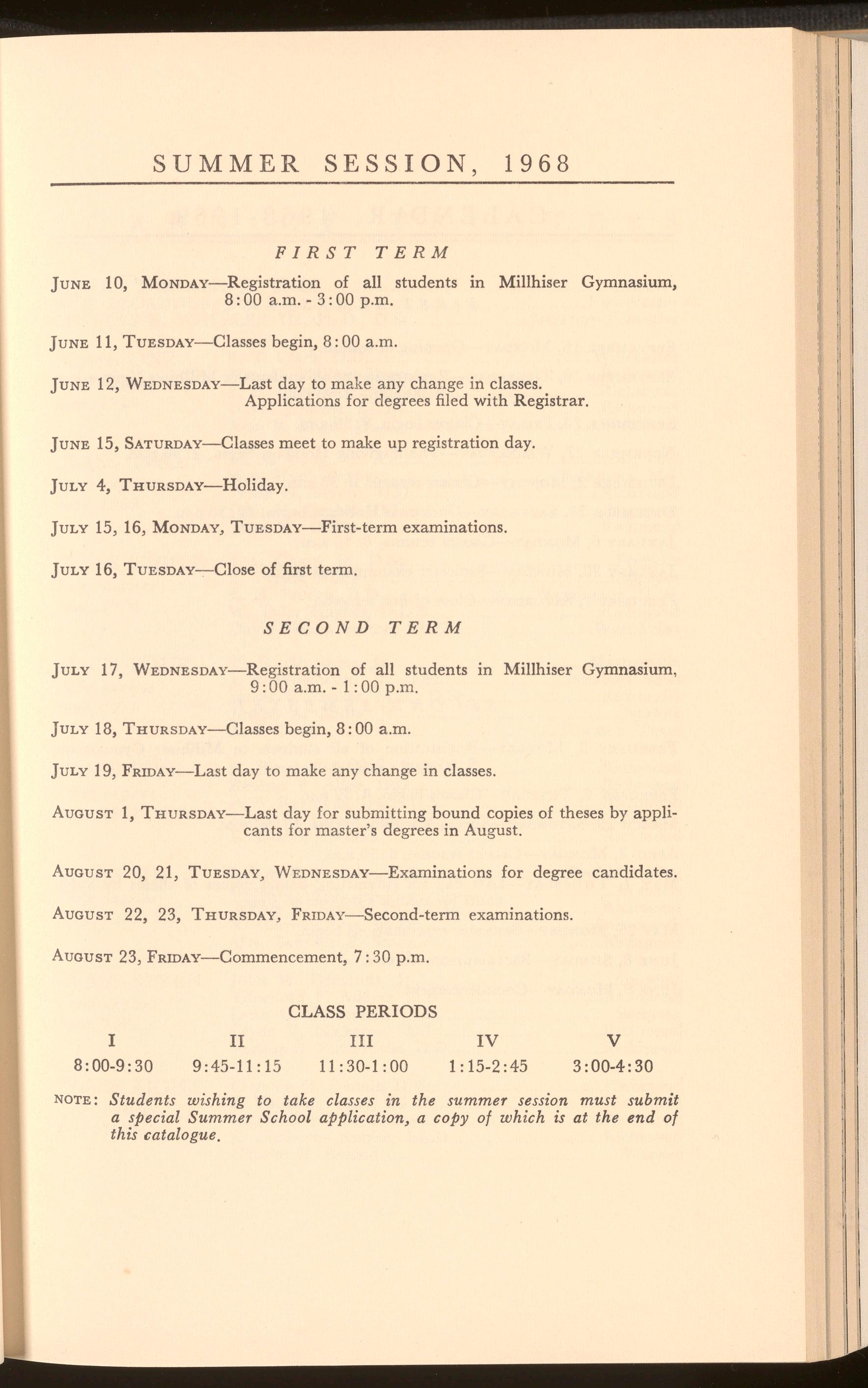 NOTE: Students wishing to take classes in the summer session must submit a special Summer School application, a copy of which is at the end of this catalogue.