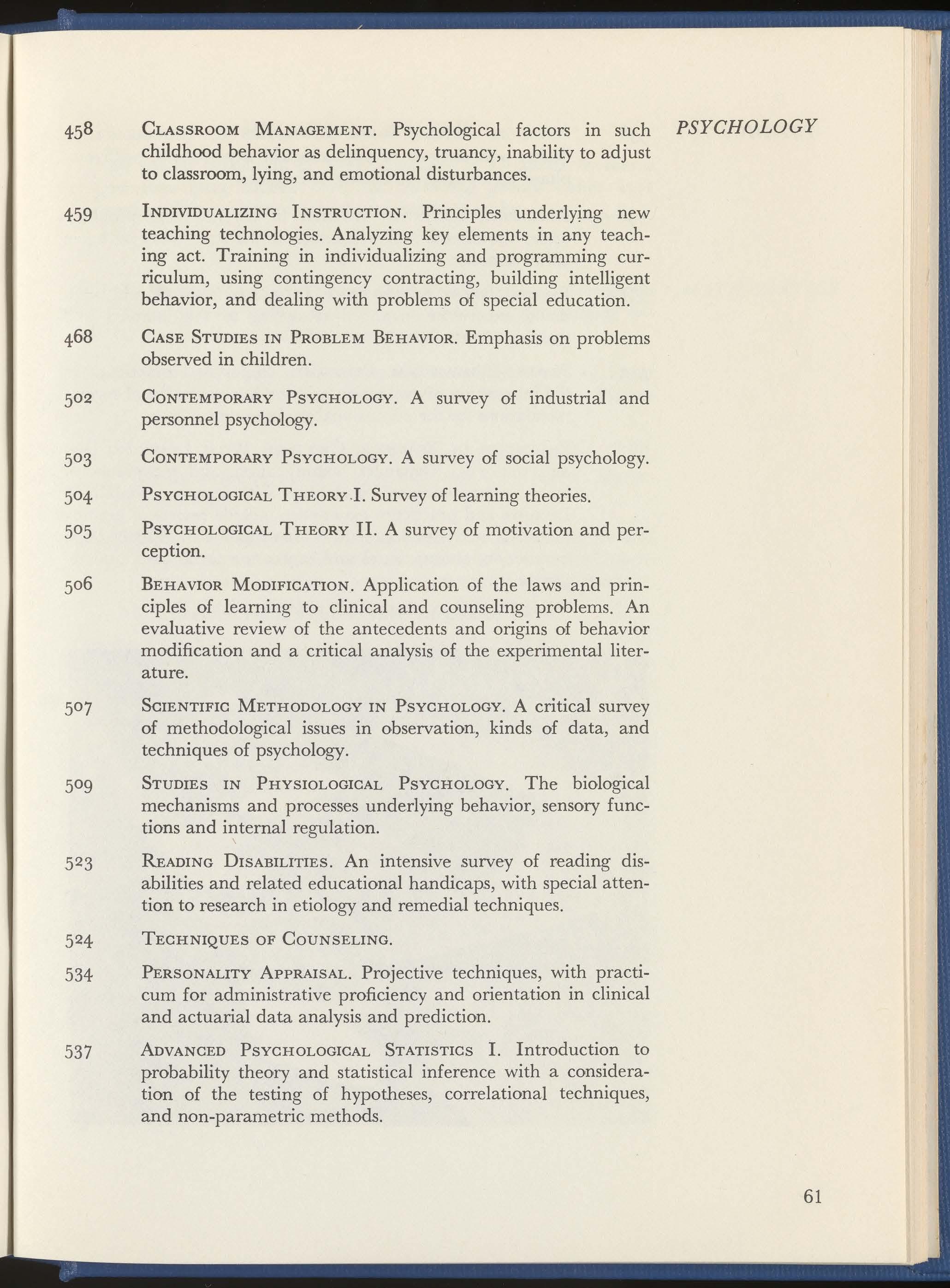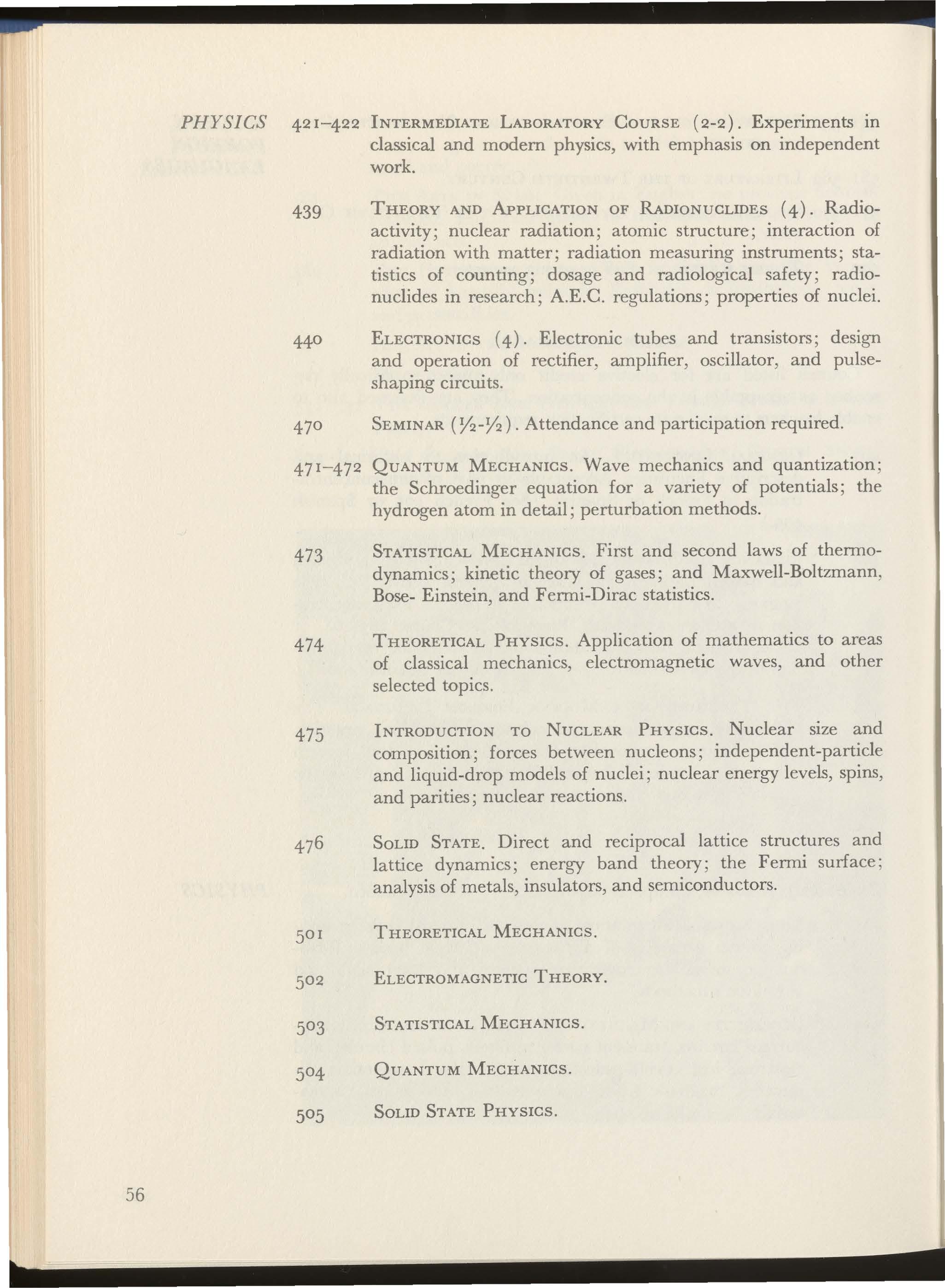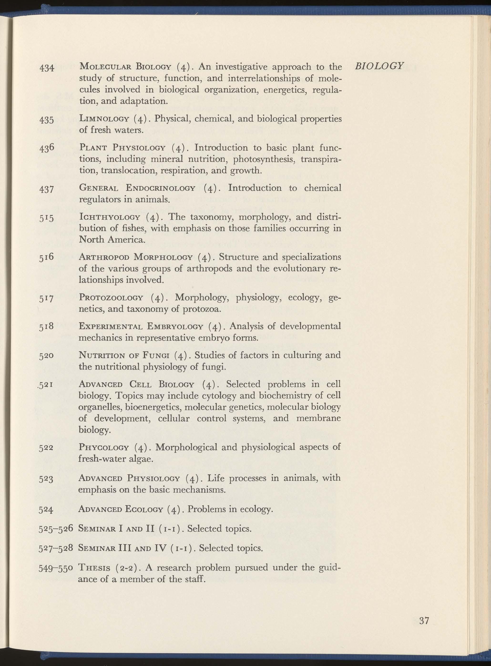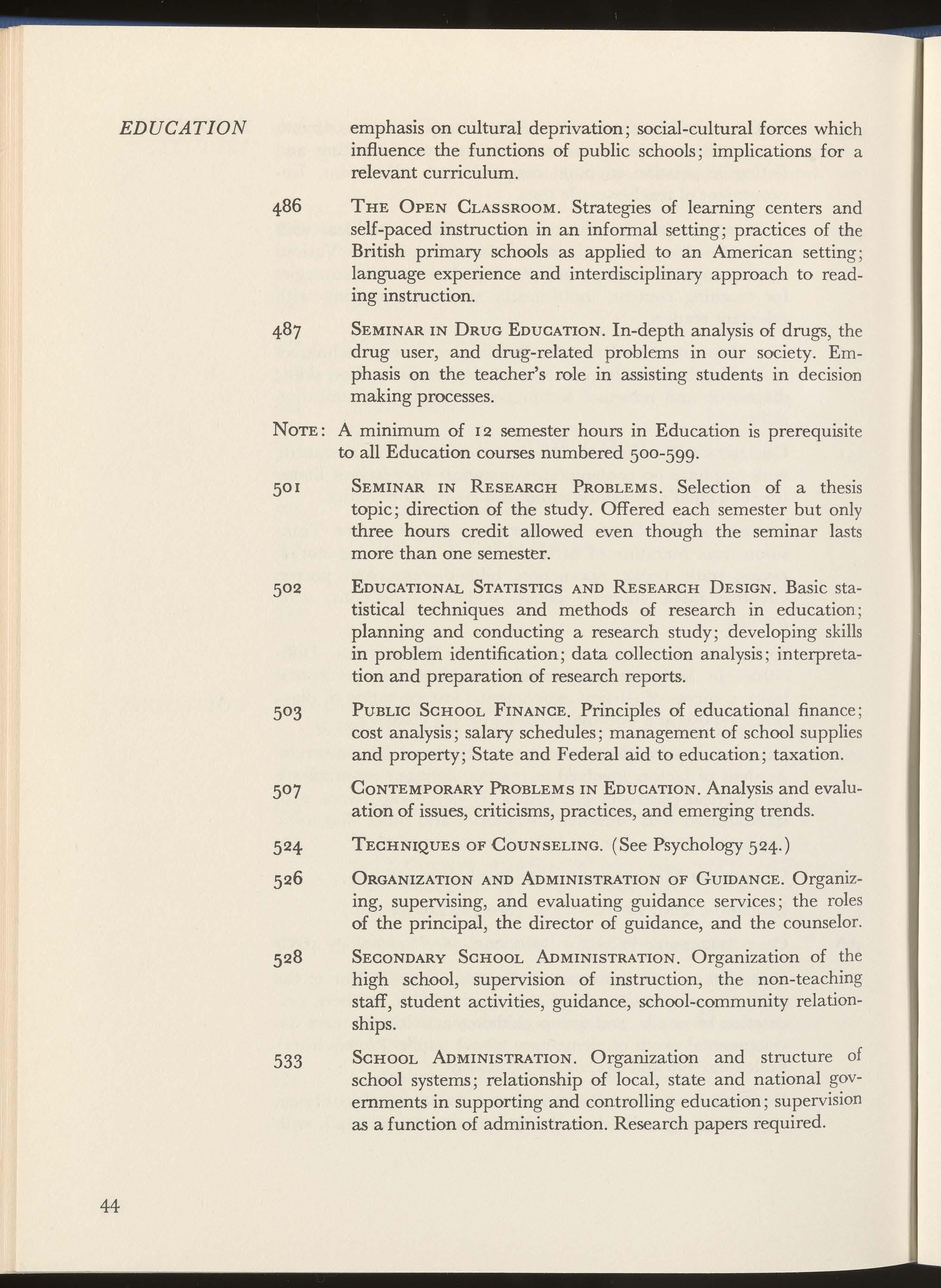 The Graduate School offers programs leading to the Master of Arts degree in Biology, Classical Studies , English , French, History, Political Science, Psychology, and Spanish ; the Master of Science degree in Biology, Chemistry, and Physics; the Master of Education (primarily in the summer session); the Master of Commerce; and the Master of Humanities. The Commerce and Humanities programs, both of which are terminal, are offered in the evening in University College .