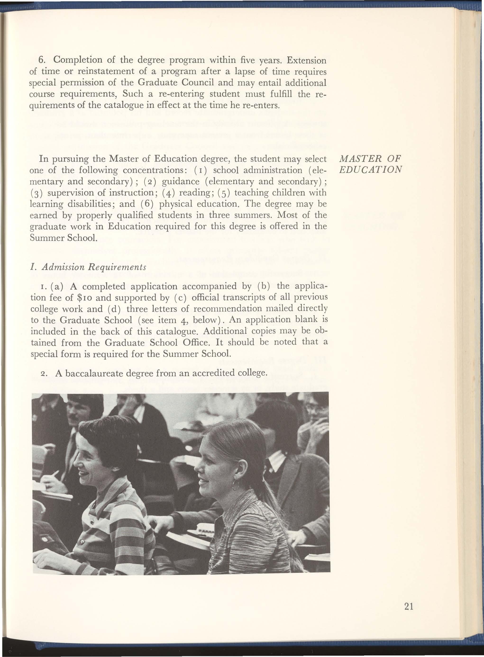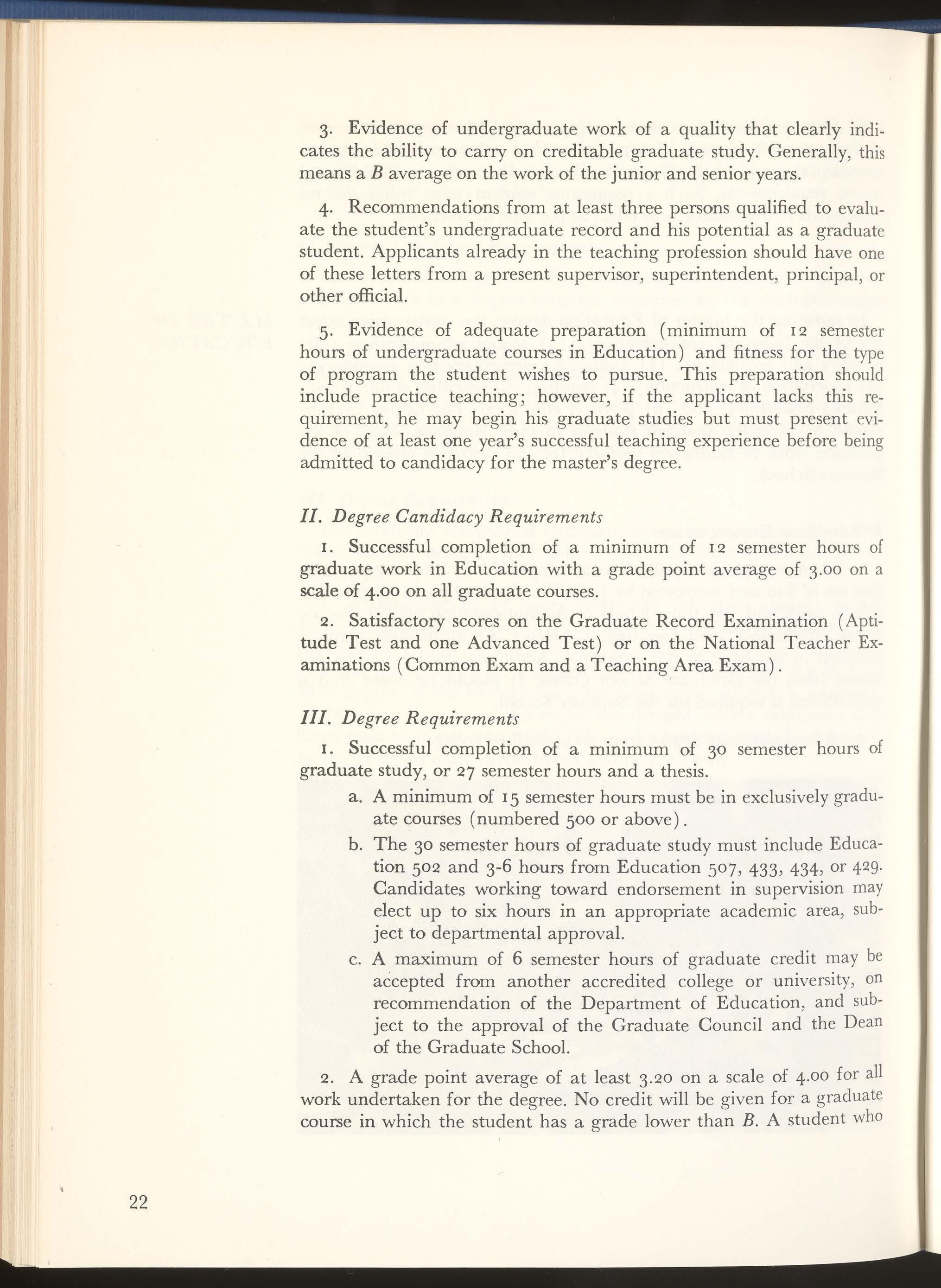 c. Required of applicants for degree programs: letters of recommendation from three (3) professors to be sent directly to the Graduate School. (Applicants now teaching should have one of these letters from a present supervisor or principal.)