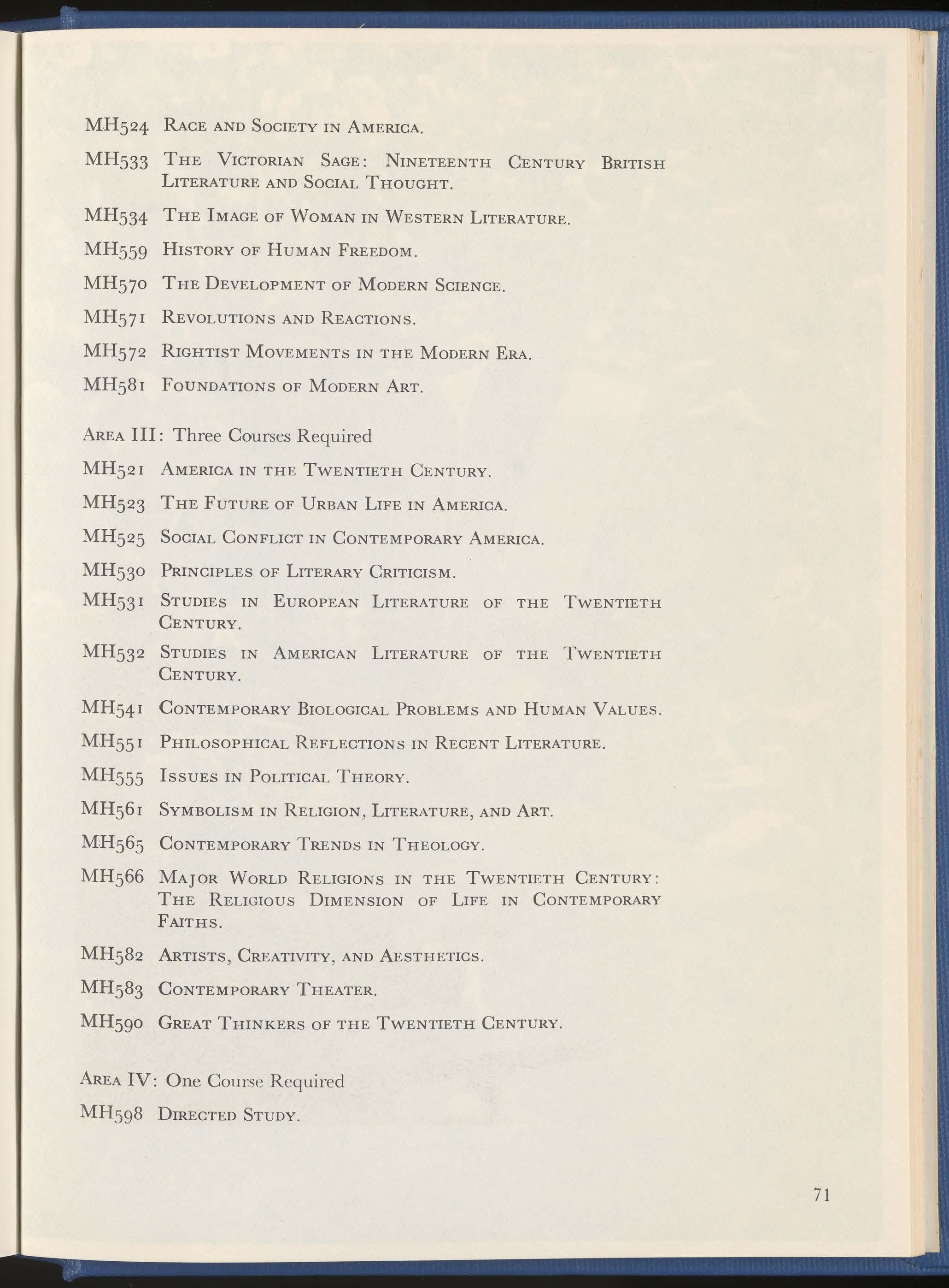 A new area curriculum enables the student to select courses from a wide variety of offerings.