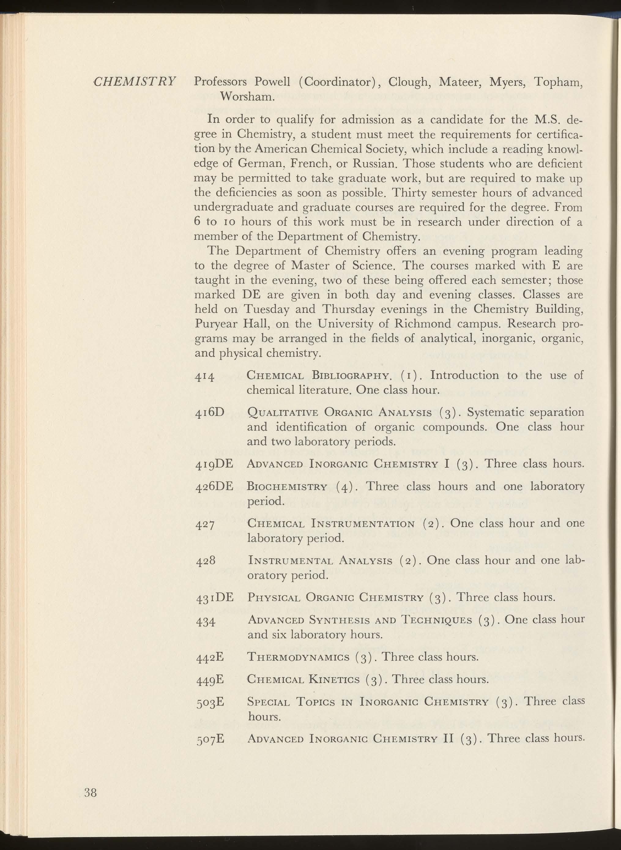 The University of Richmond's accreditation by the Southern Association of Colleges and Schools covers all of its programs. The University is accredited also by the Virginia State Board of Education. The Department of Chemistry is accredited by the American Chemical Society The School of Law is accredited by the recognized standardizing agencies in America; it is a member of the Association of American Law Schools and is on the approved lists of the American Bar Association and the Virginia State Board of Bar Examiners; its Juris