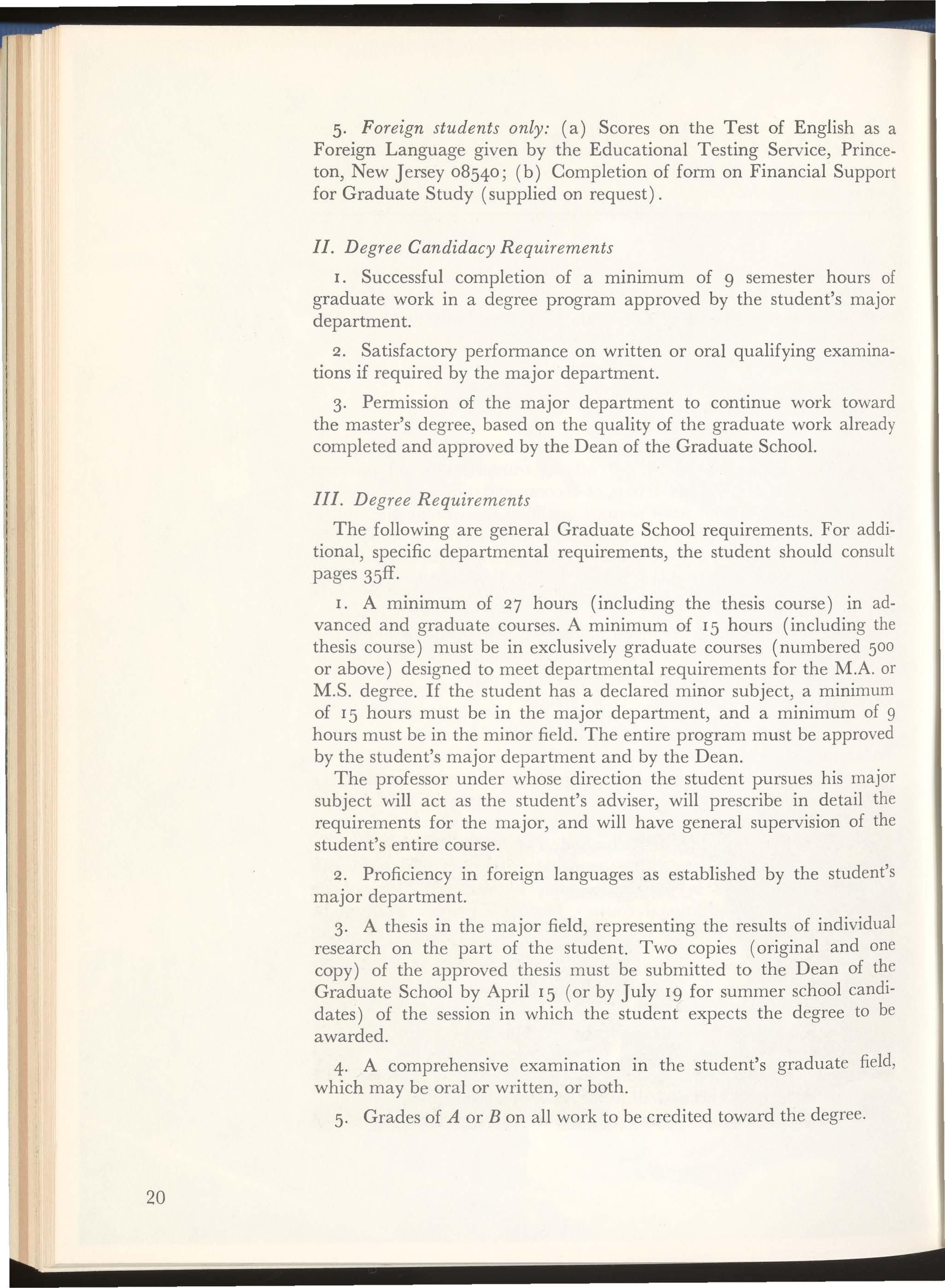 d. Foreign students only: Scores on Test of English as a Foreign Language given by Educational Testing Service, Princeton, New Jersey. Completion of form on Financial Support for Graduate Study. (Form supplied on request.)