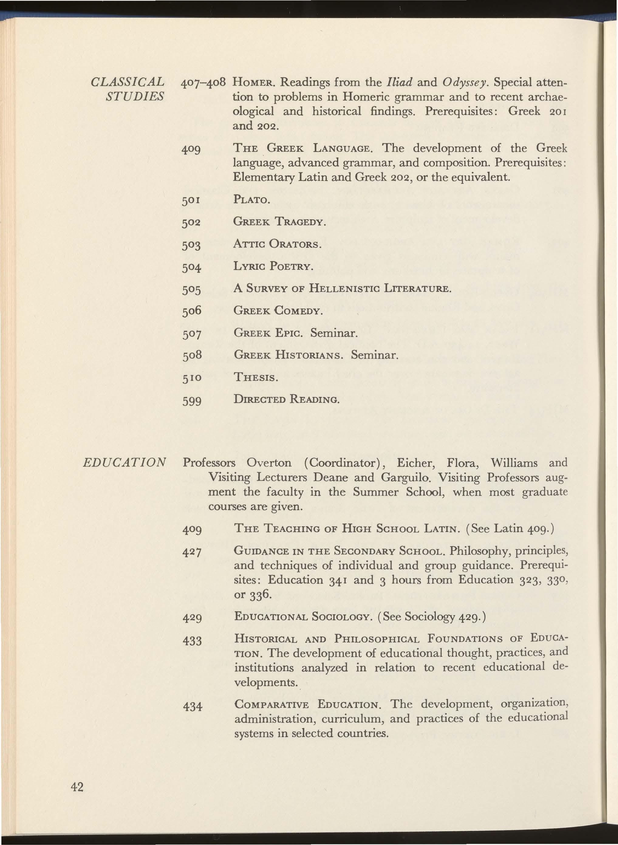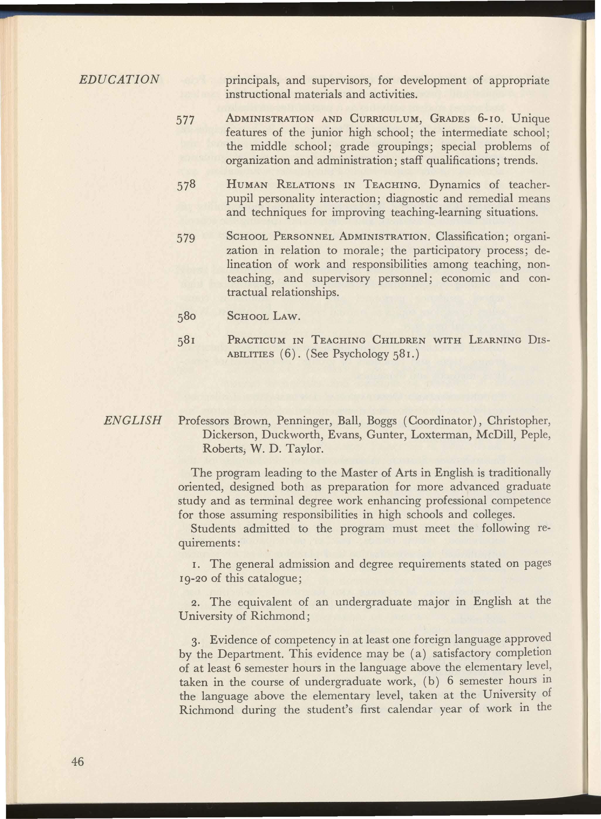 A.B., Tufts University; M.A., Longwood College; M.A. , University of North Carolina; Certificat et Diplome , University of Toulouse, France; Graduate Study, University of North Carolina.