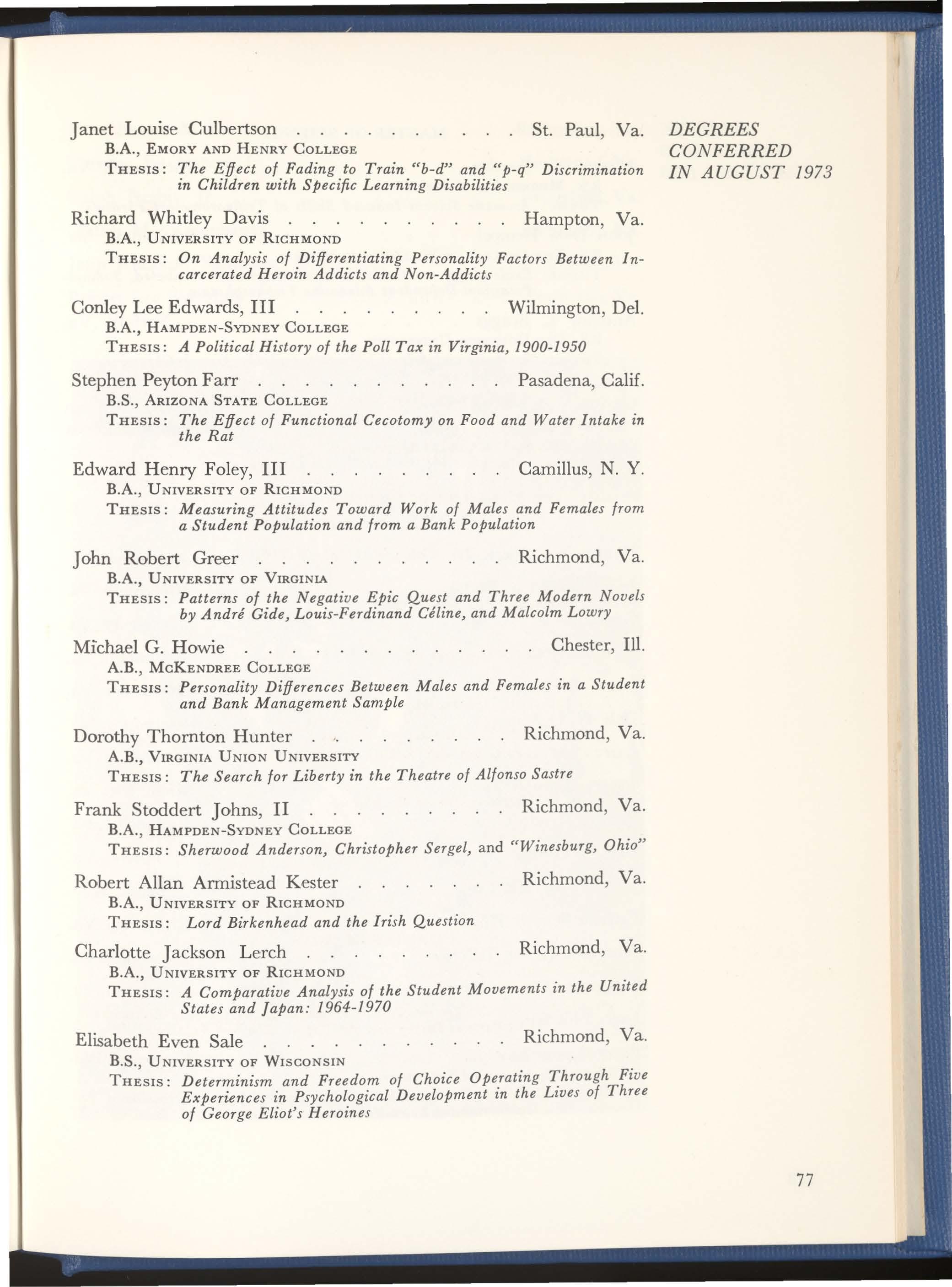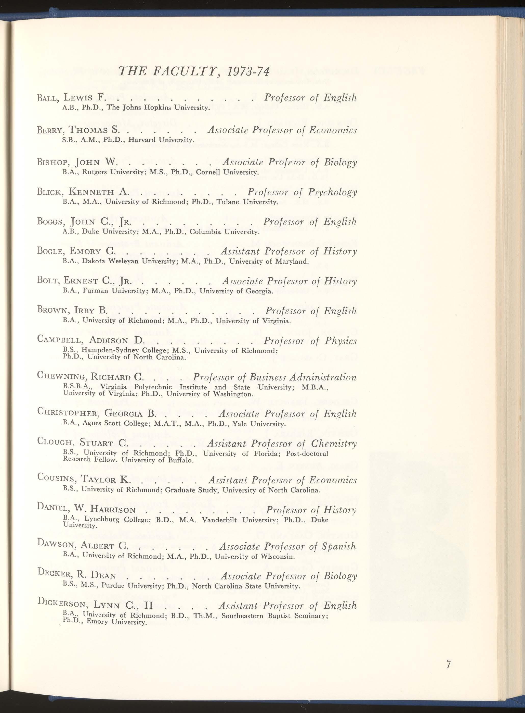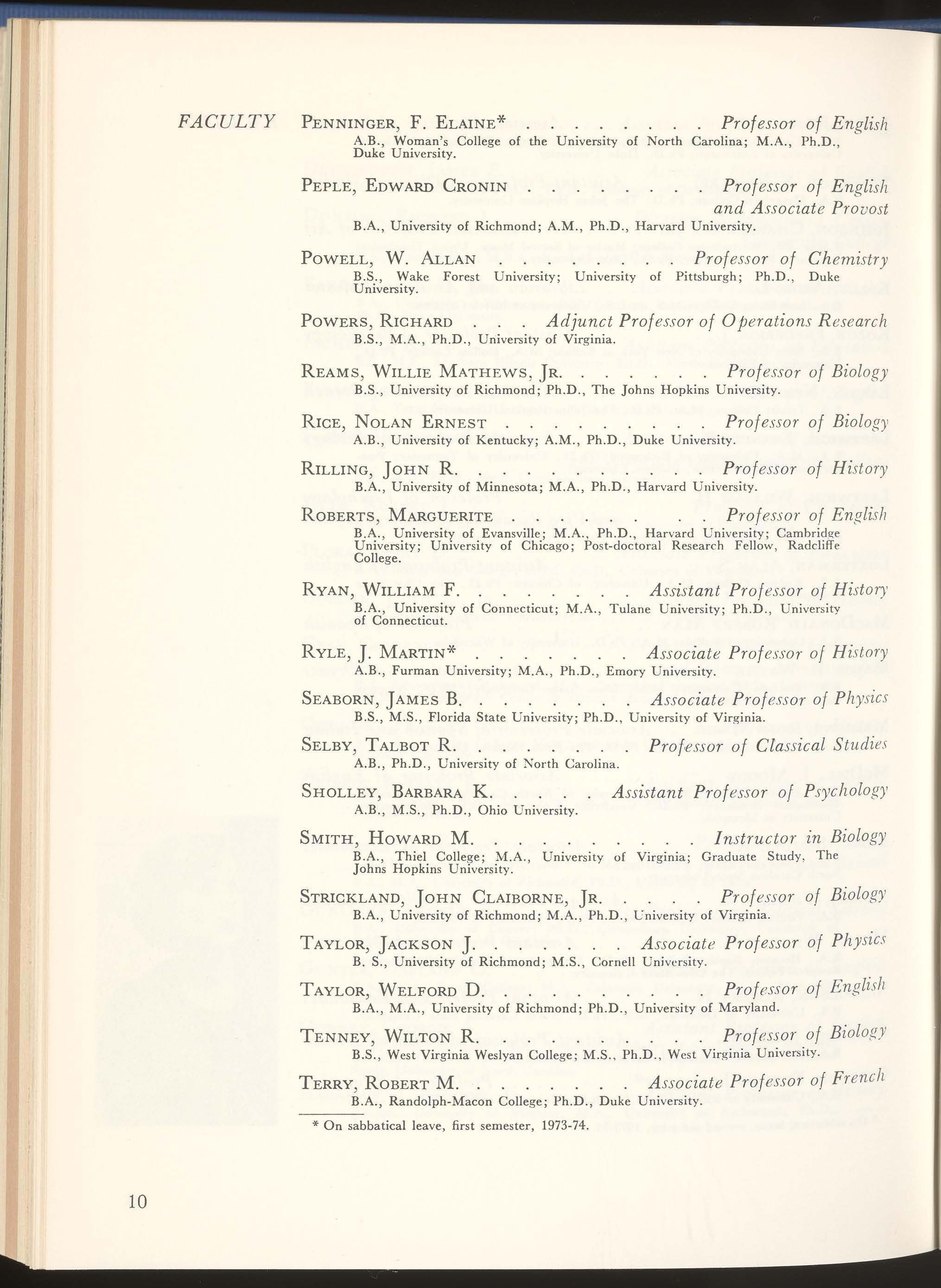 B.A., M.A., University of Richmond; Ph.D., University of Iowa.