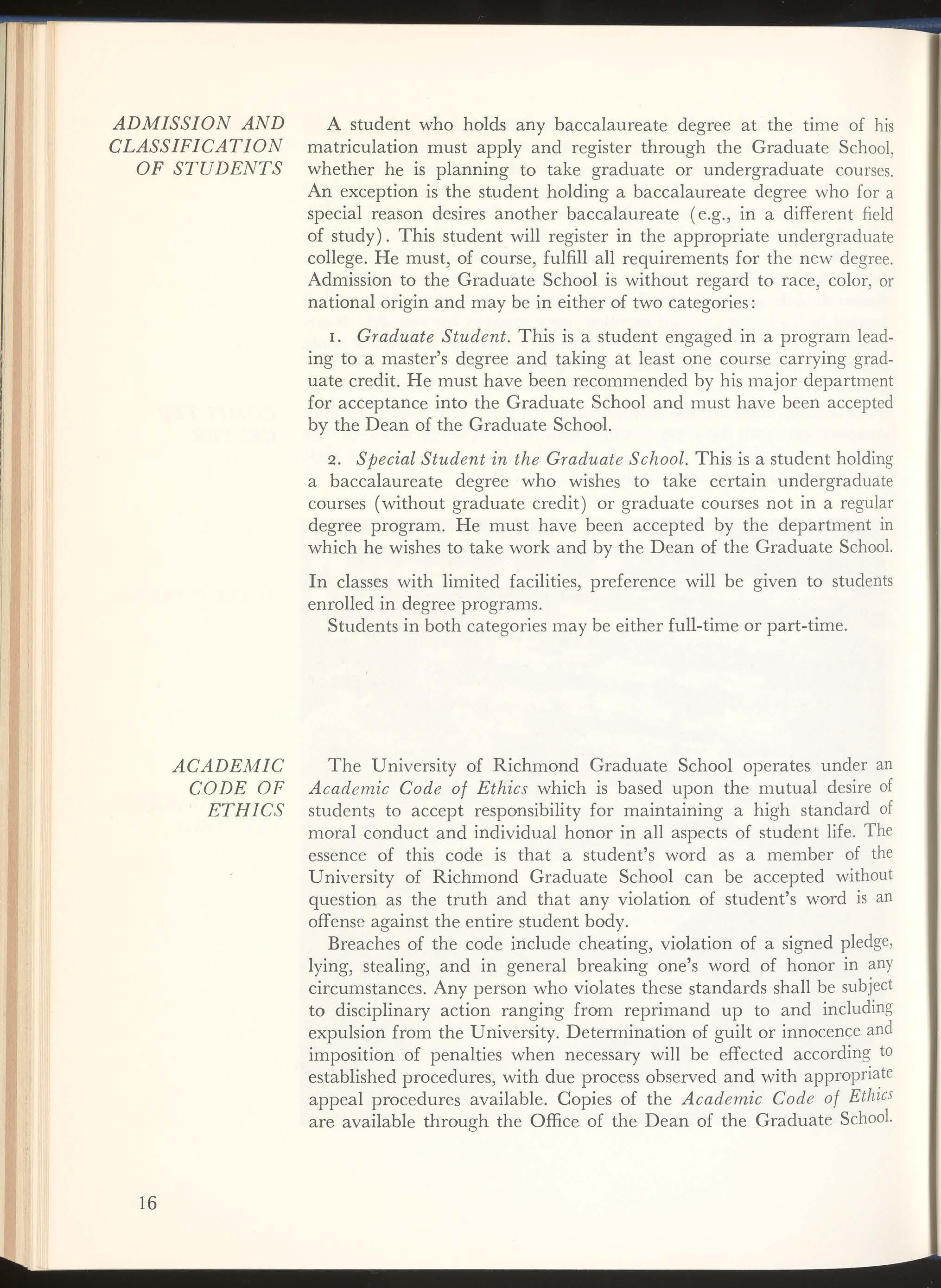 The policy governing admission to all colleges and schools of the Universit y of Richmond provides equal educational opportunity to qualified applicants with out regard to race, color , or national origin.