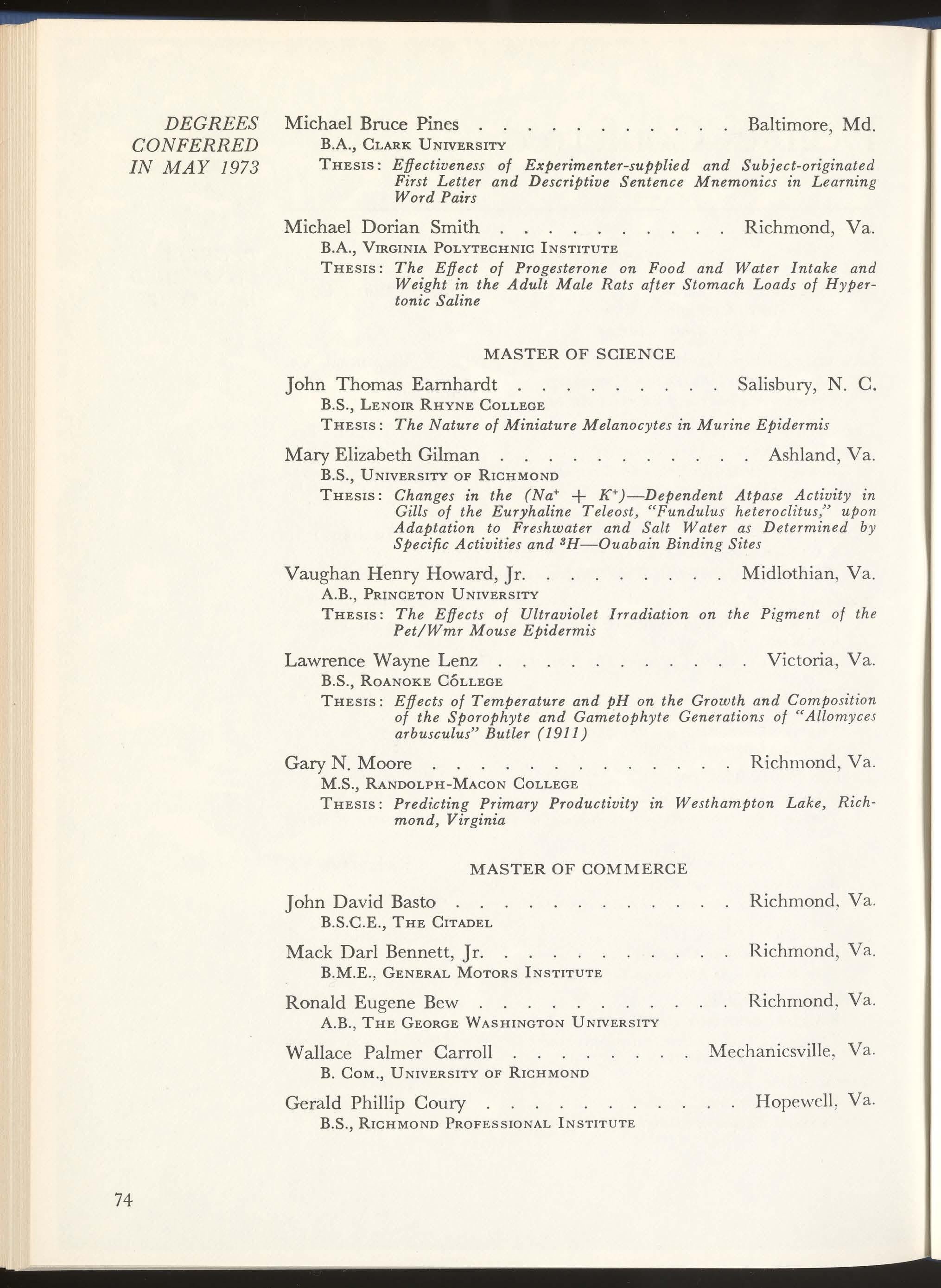 B.A., University of Richmond; M.A. , Columbia University; Ed.D., University of Virginia; Certificate , Centro de Estudios Hist6ricos, Madrid, Spain.