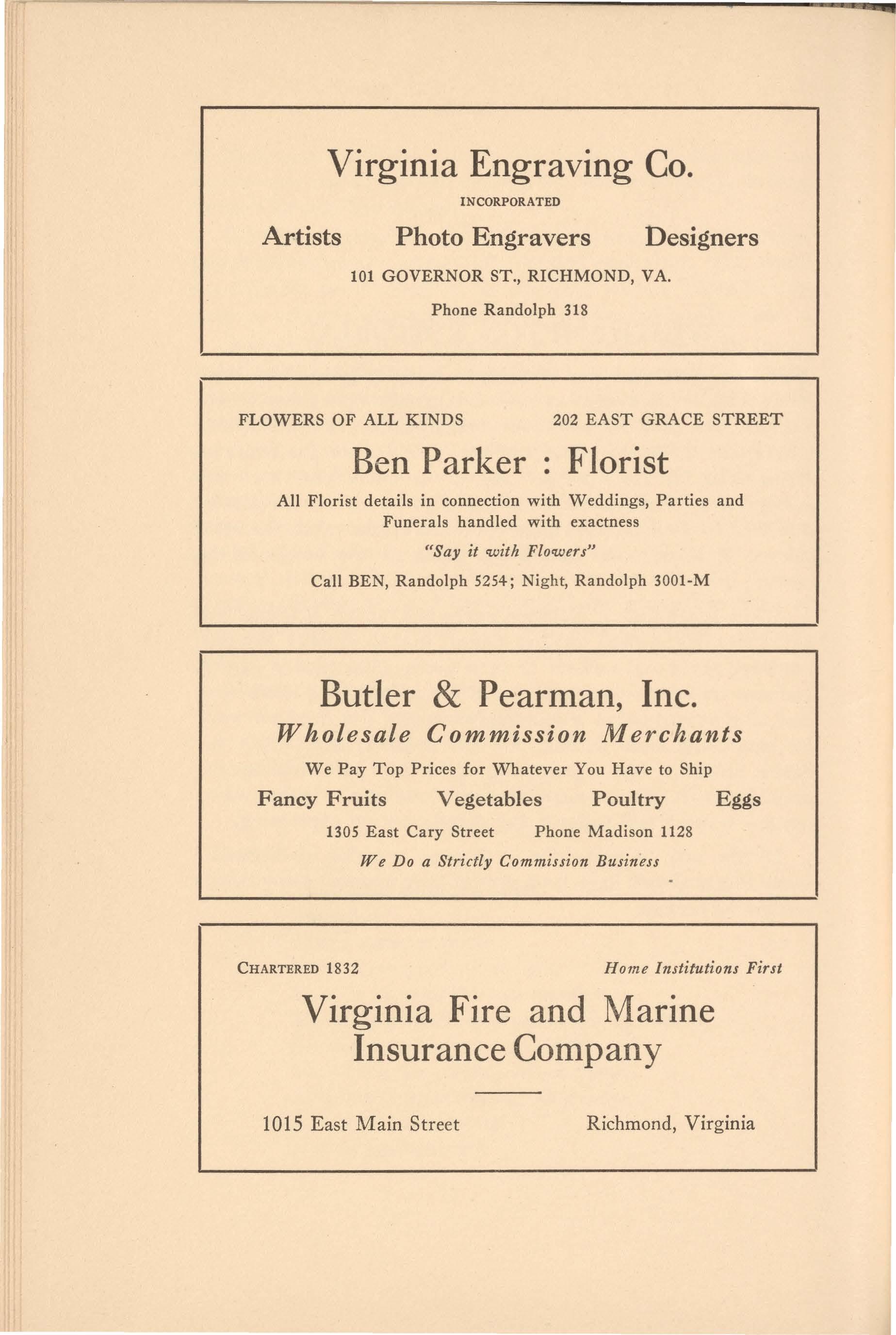 THE MESSENGER is publishedeverymonthfromNovemberto Aprilinclusiveby the studentsof the Universityof Richmond.Contributionsare welcomedfrommembersof the studentbodiesand facultiesof bothcolleges,and fromalumni.Manuscriptsnot found suitablefor publicationwill be returned. Subscriptionrates are two dollarsper year; thirty.fivecentsper singlecopy. Allbusinesscommunicationsshouldbe addressedto the BusinessManagers.