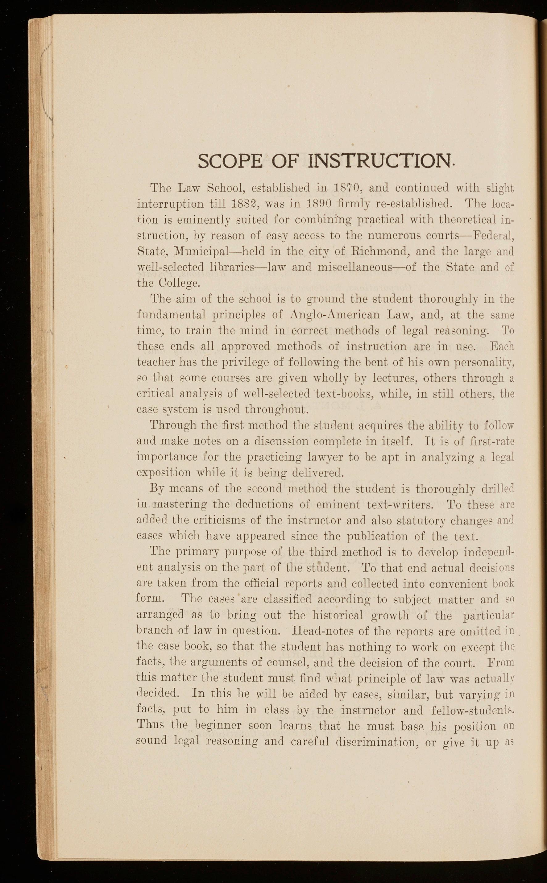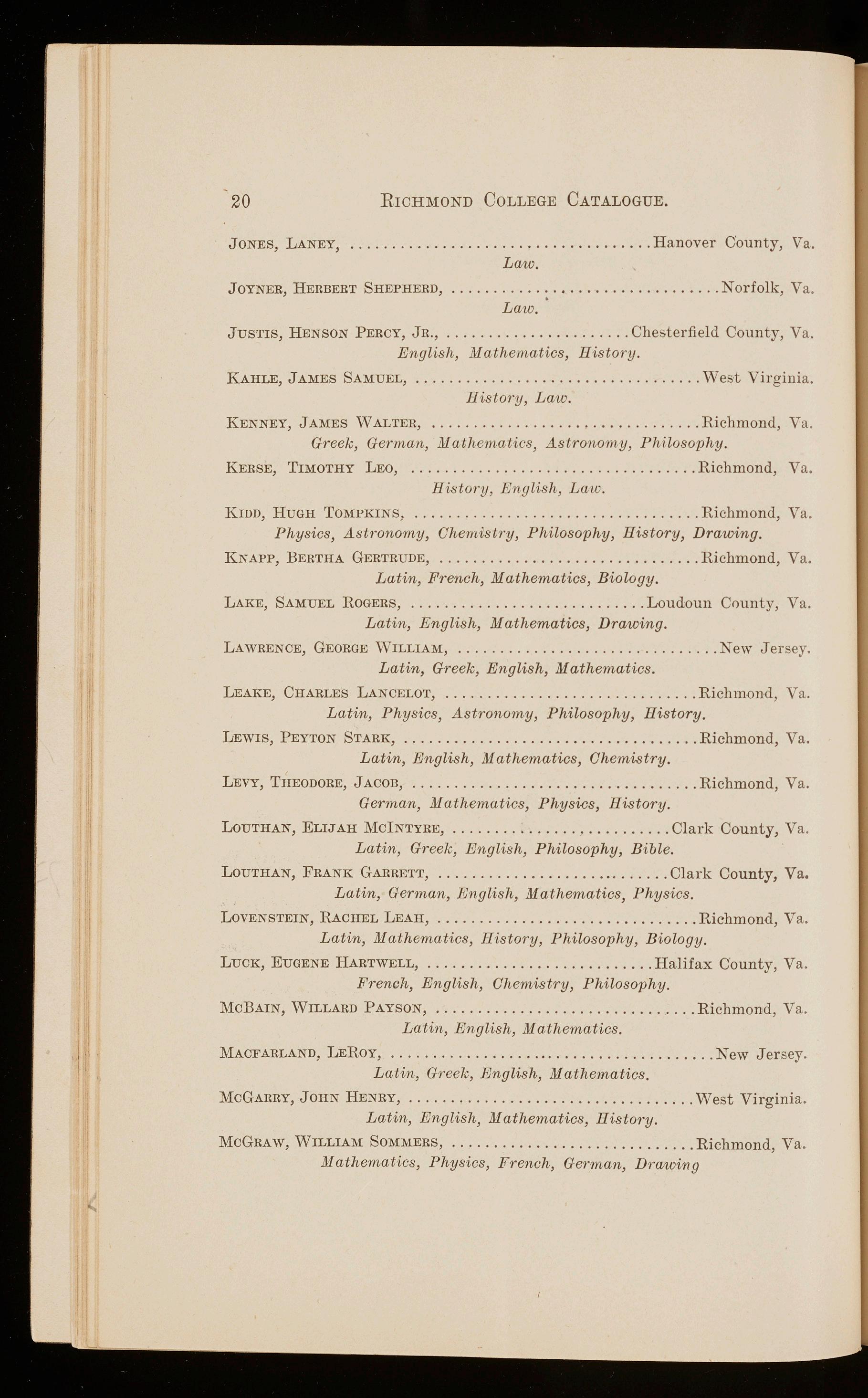 B. L. Richmond College, 1894; LL. B. Yale University, 1896; Associate Profe ssor of Law since 1898.