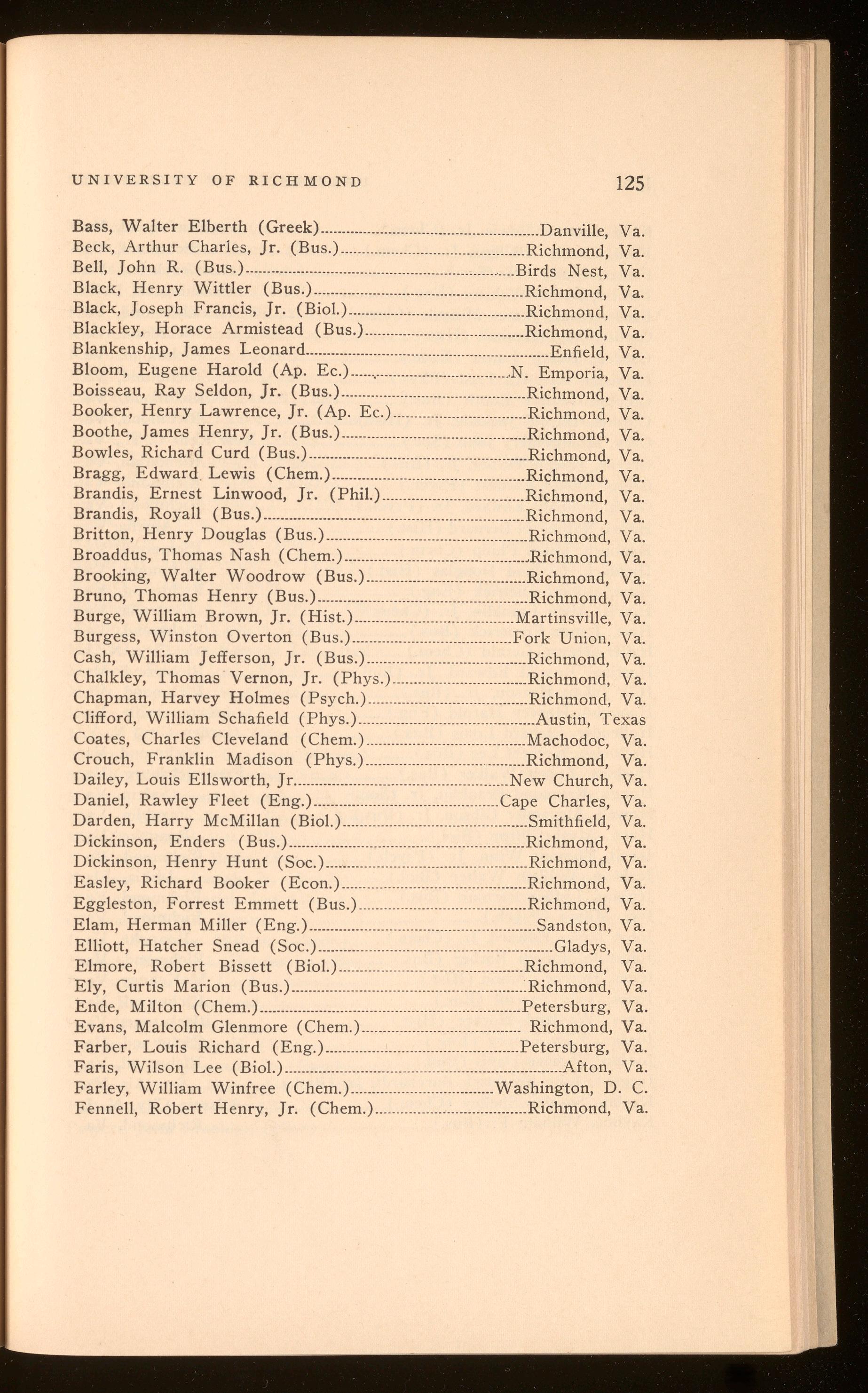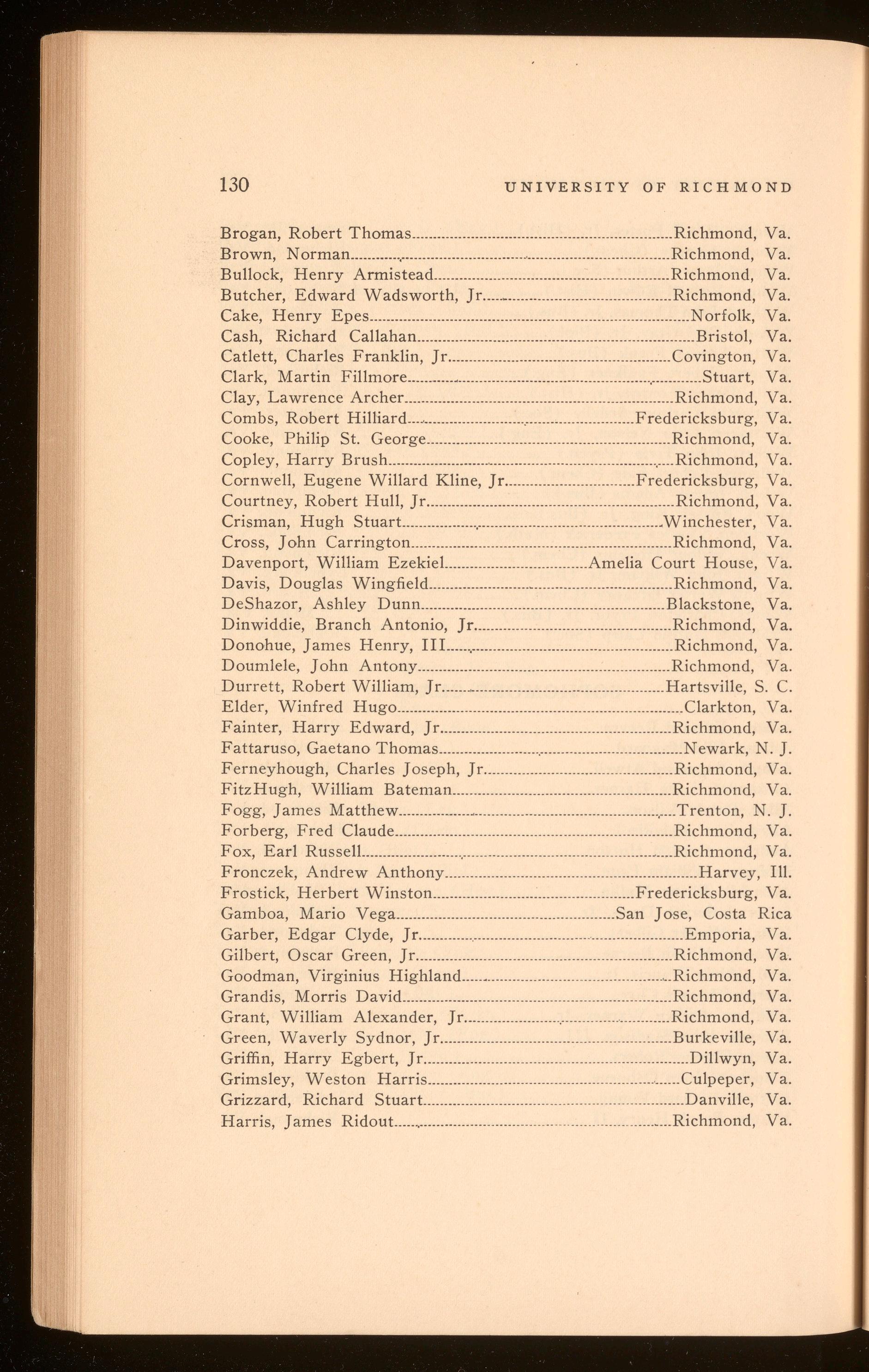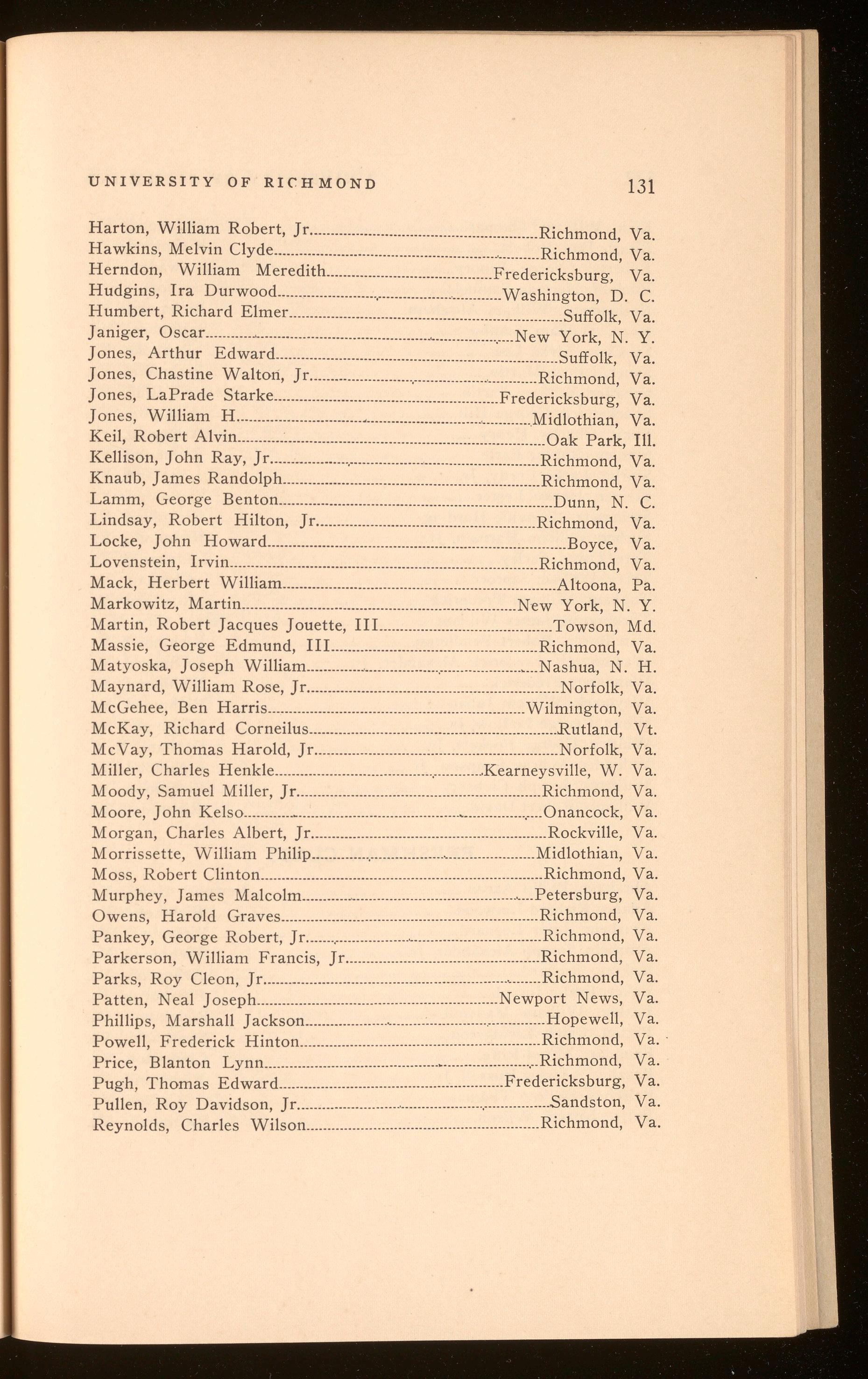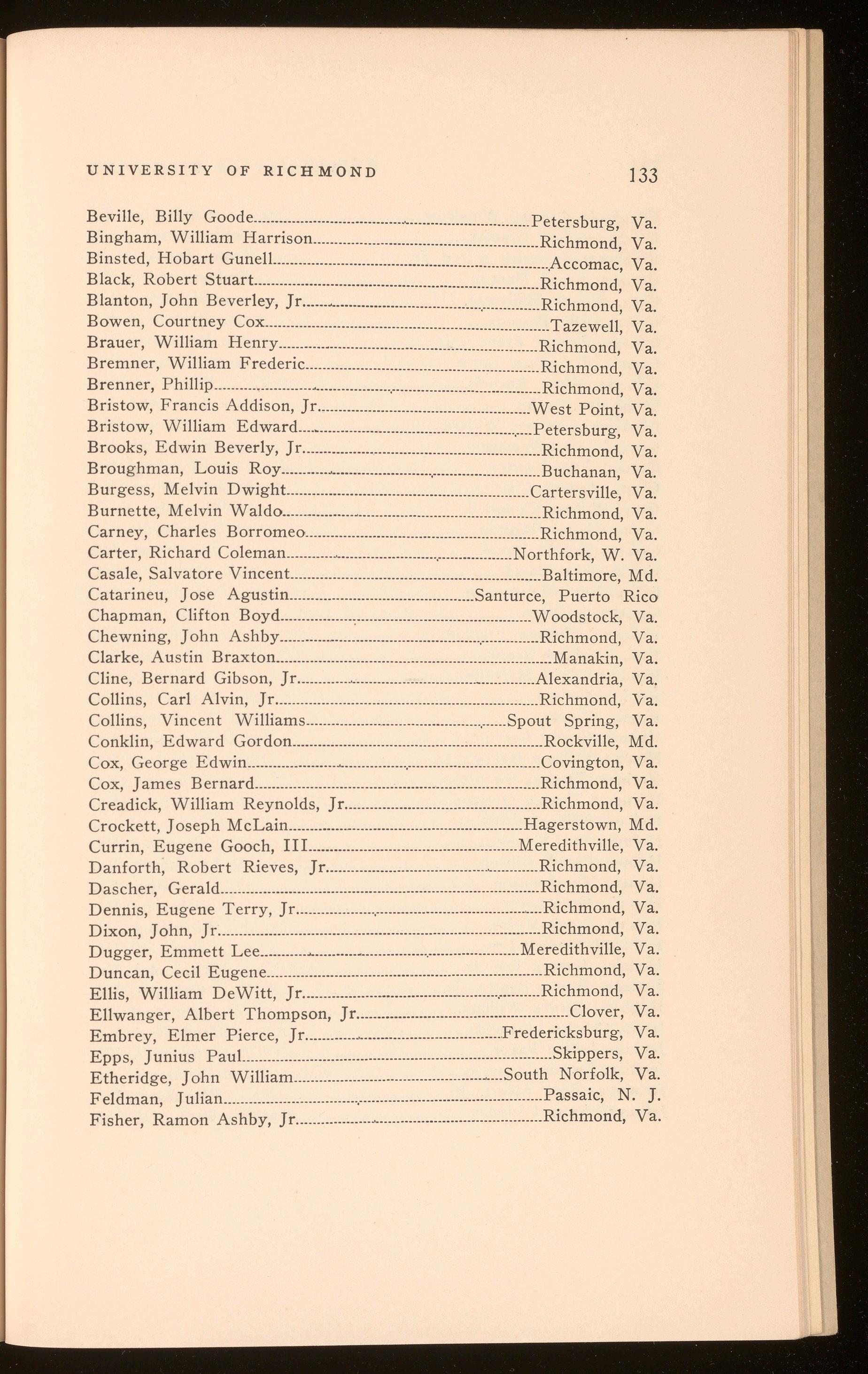 Bagby, Richard Hugh .................................................................. Richmond, Va. Curry, Harper Wark .......................................................................Richmond, Va. Polyak, Stefan Thomas .............................................................. Richmond, Va. Roberts, Shilly Herbert .............................................................. Richmond, Va.