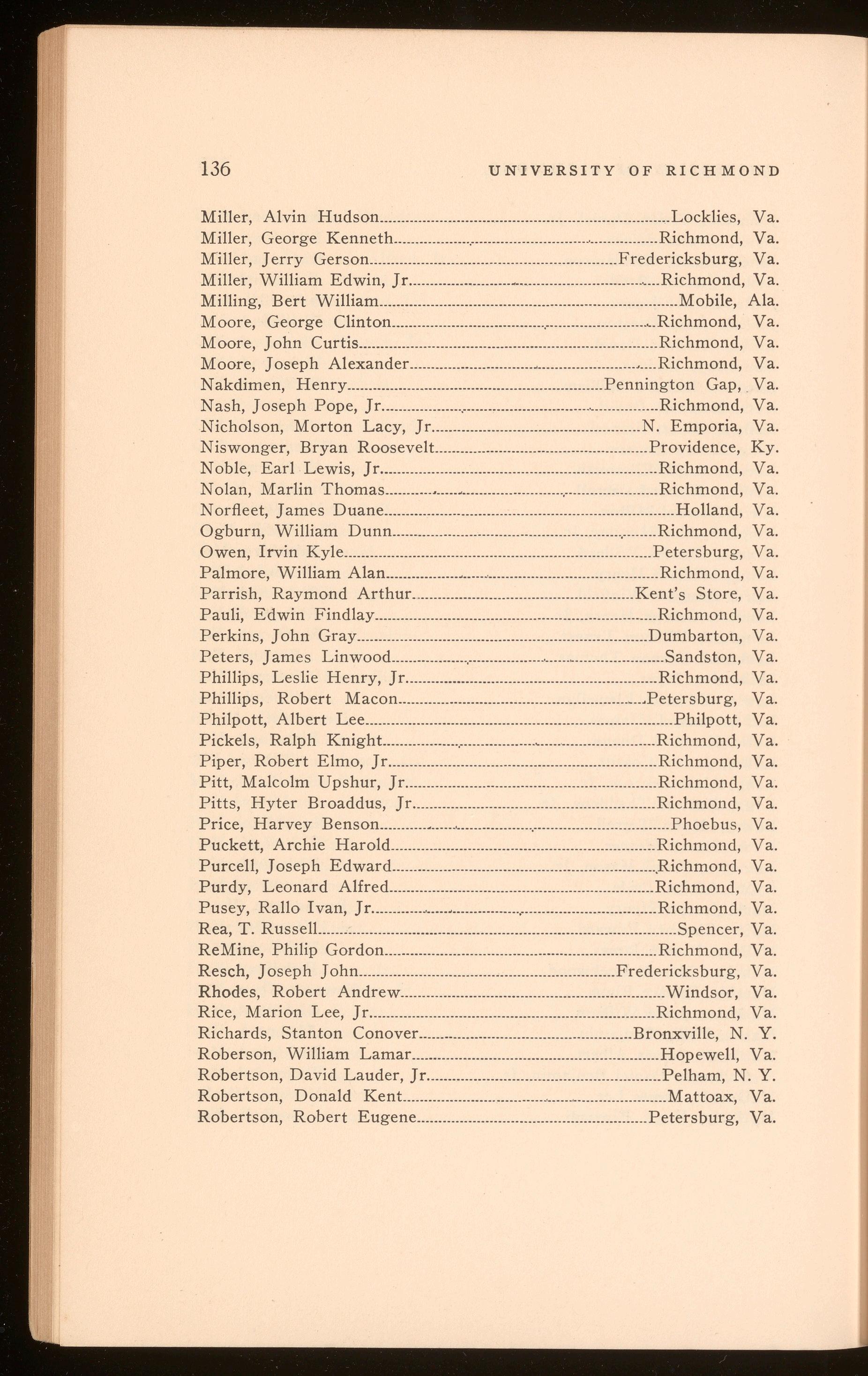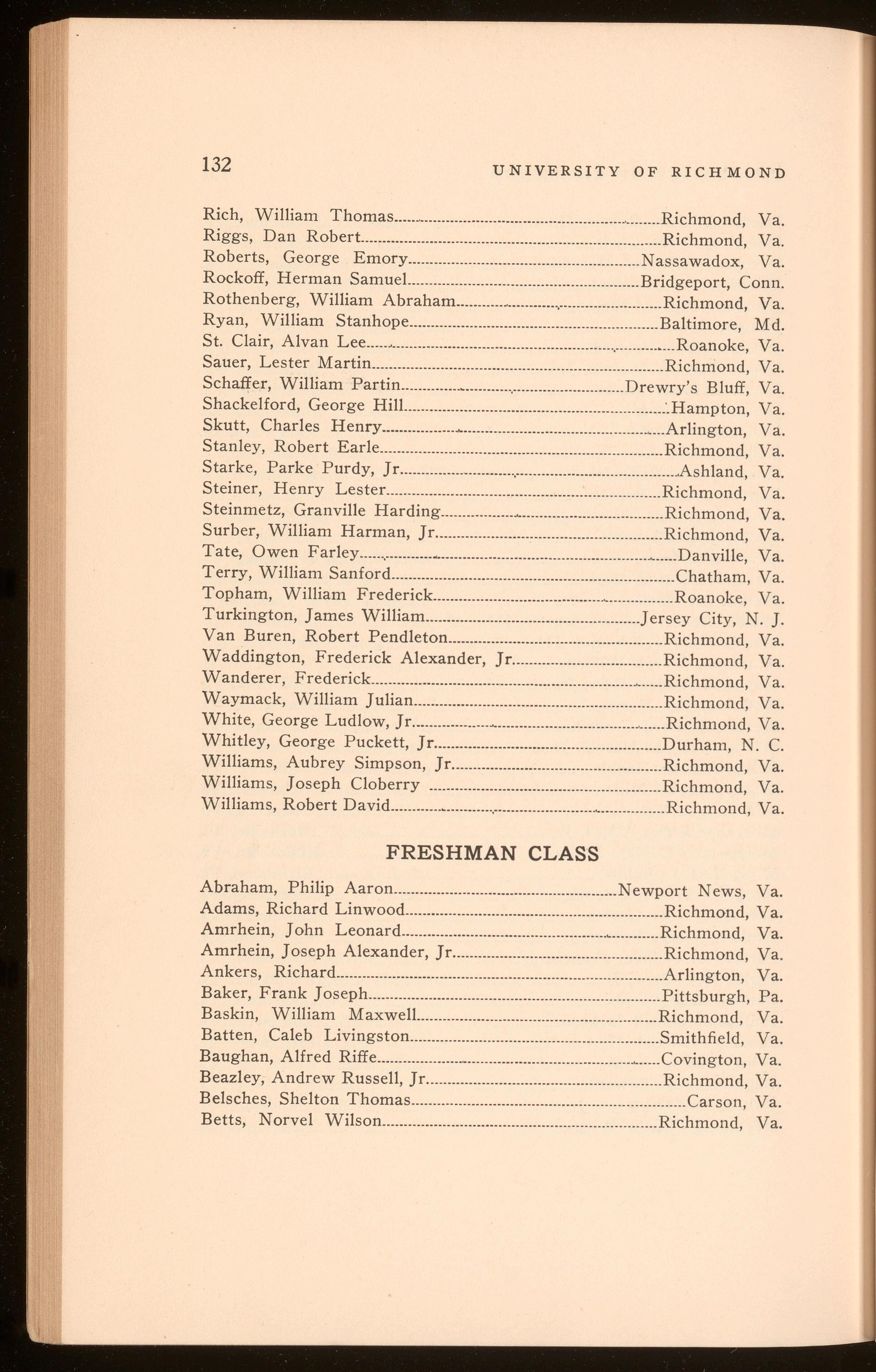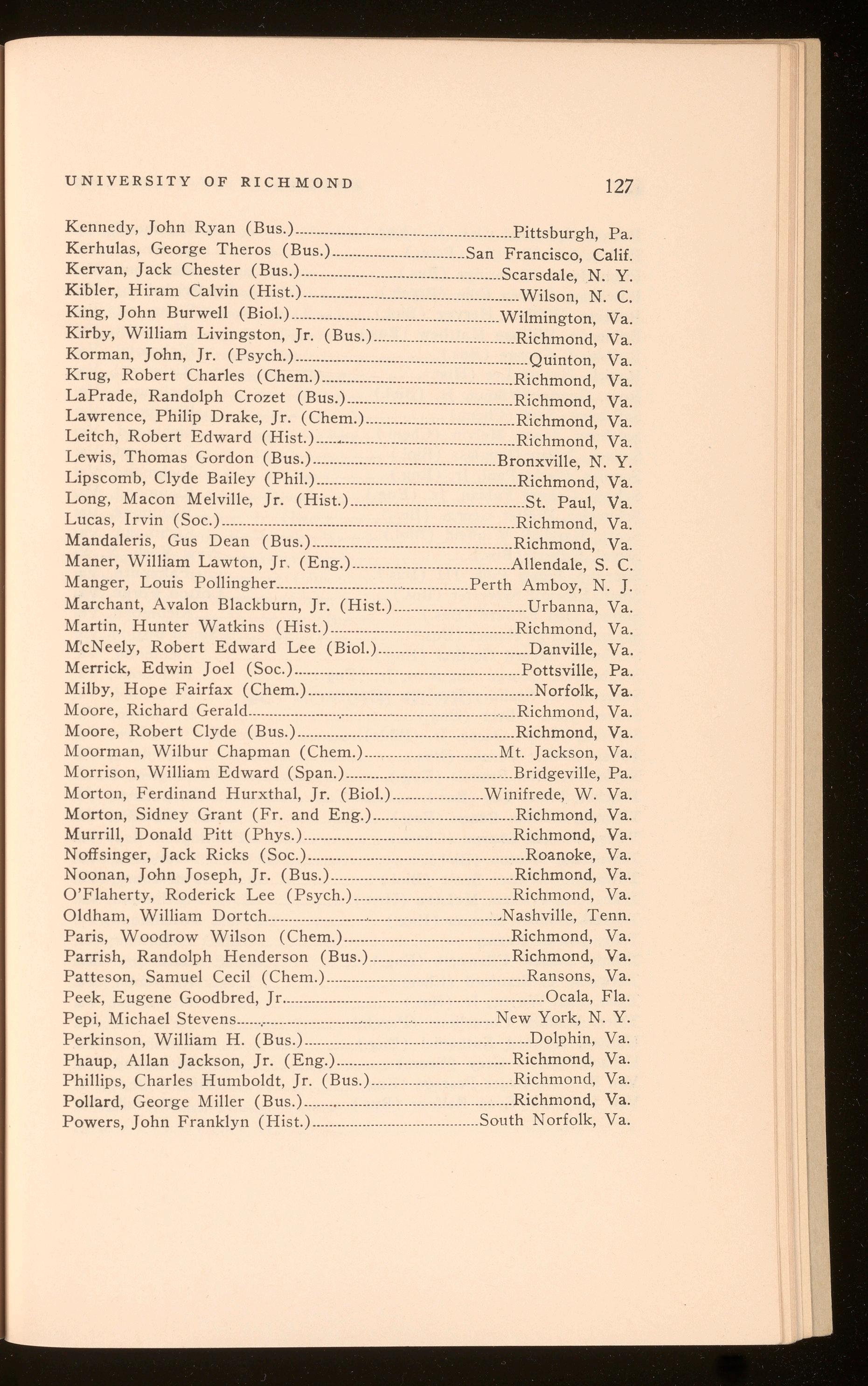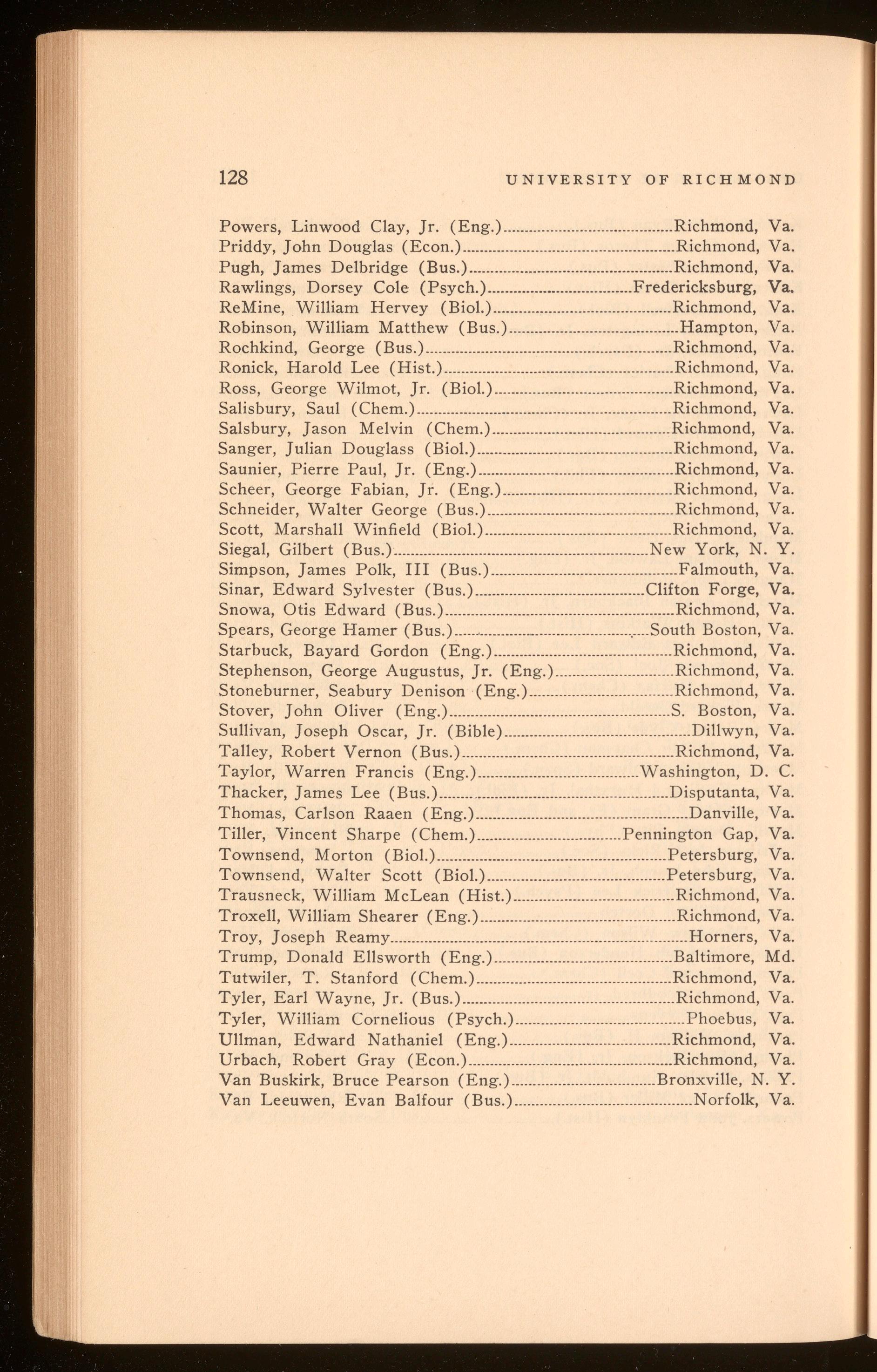 Bagby, Richard Hugh .................................................................. Richmond, Va. Curry, Harper Wark .......................................................................Richmond, Va. Polyak, Stefan Thomas .............................................................. Richmond, Va. Roberts, Shilly Herbert .............................................................. Richmond, Va.