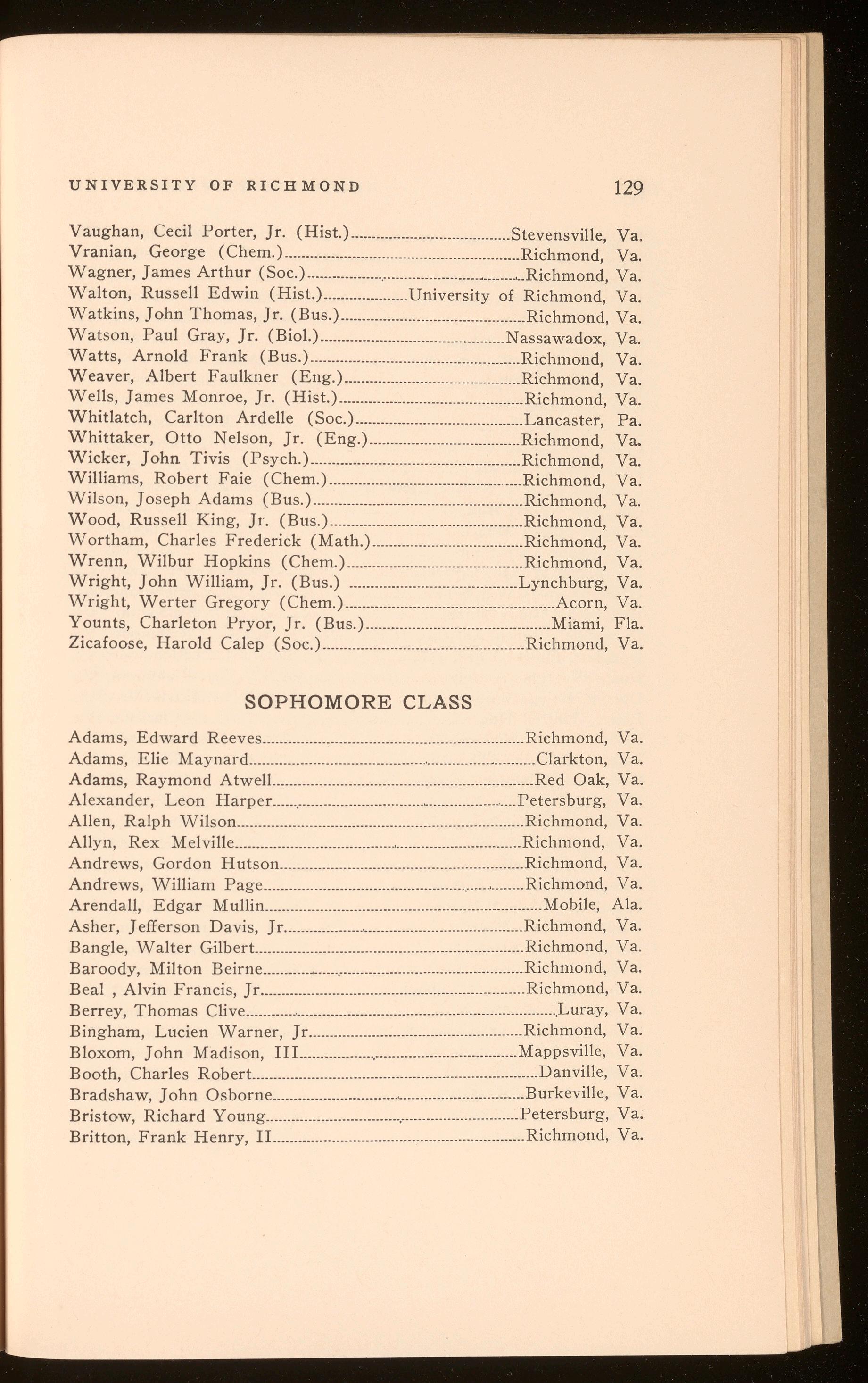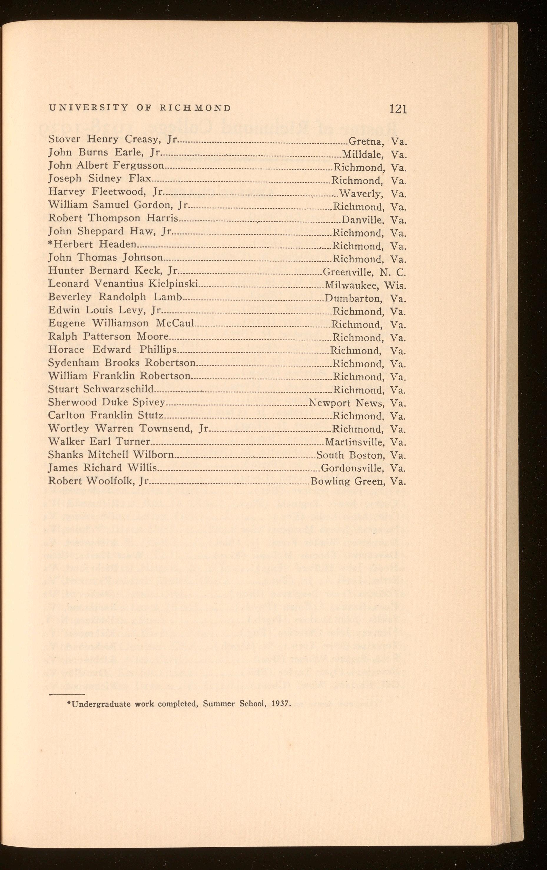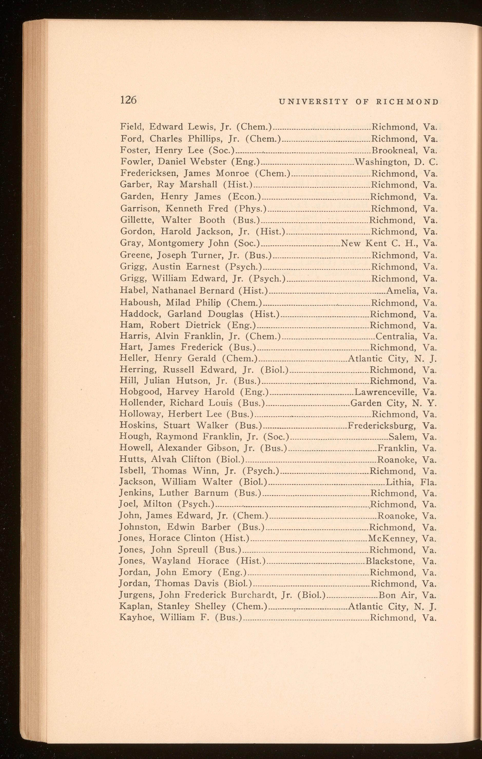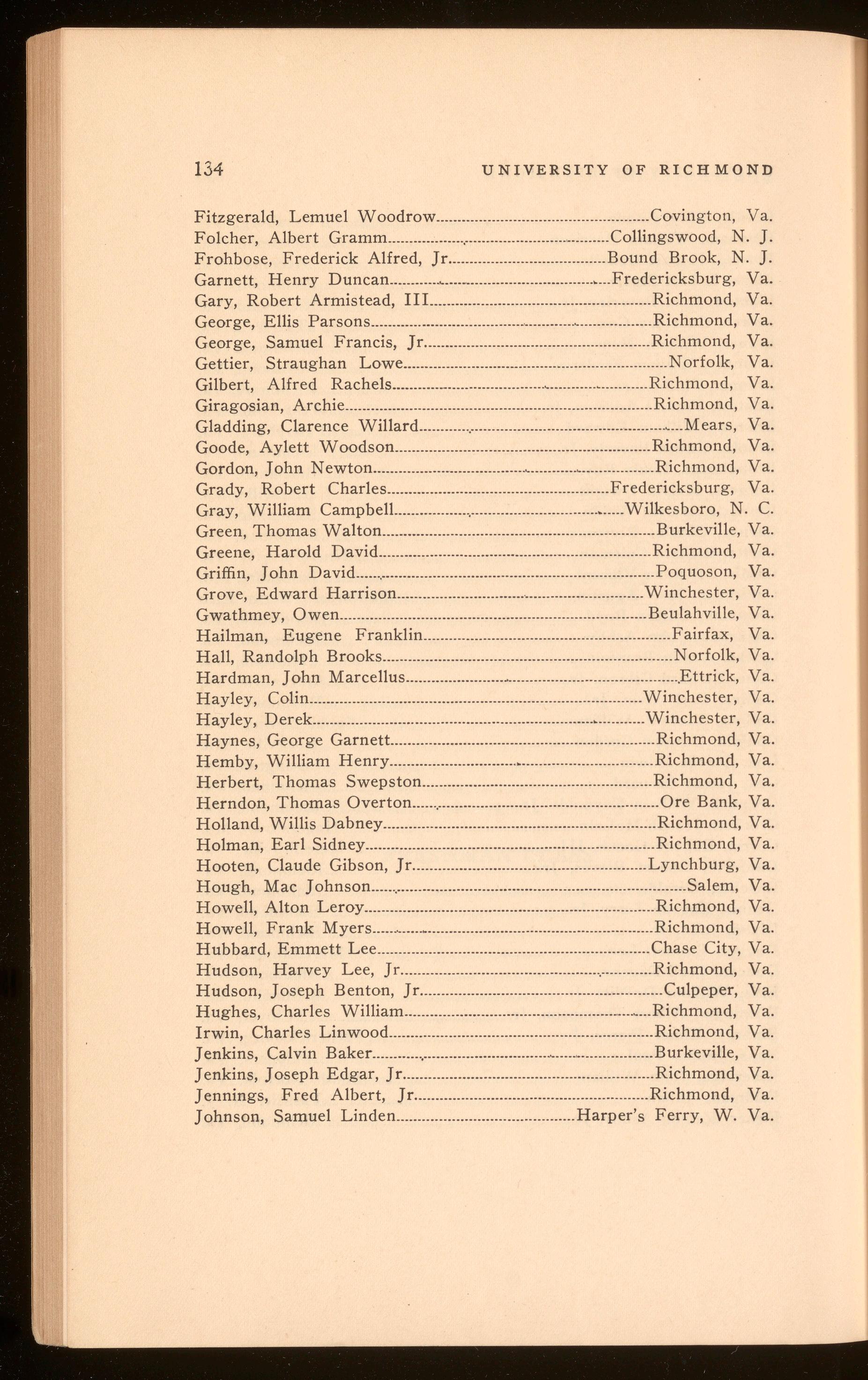 Bagby, Richard Hugh .................................................................. Richmond, Va. Curry, Harper Wark .......................................................................Richmond, Va. Polyak, Stefan Thomas .............................................................. Richmond, Va. Roberts, Shilly Herbert .............................................................. Richmond, Va.