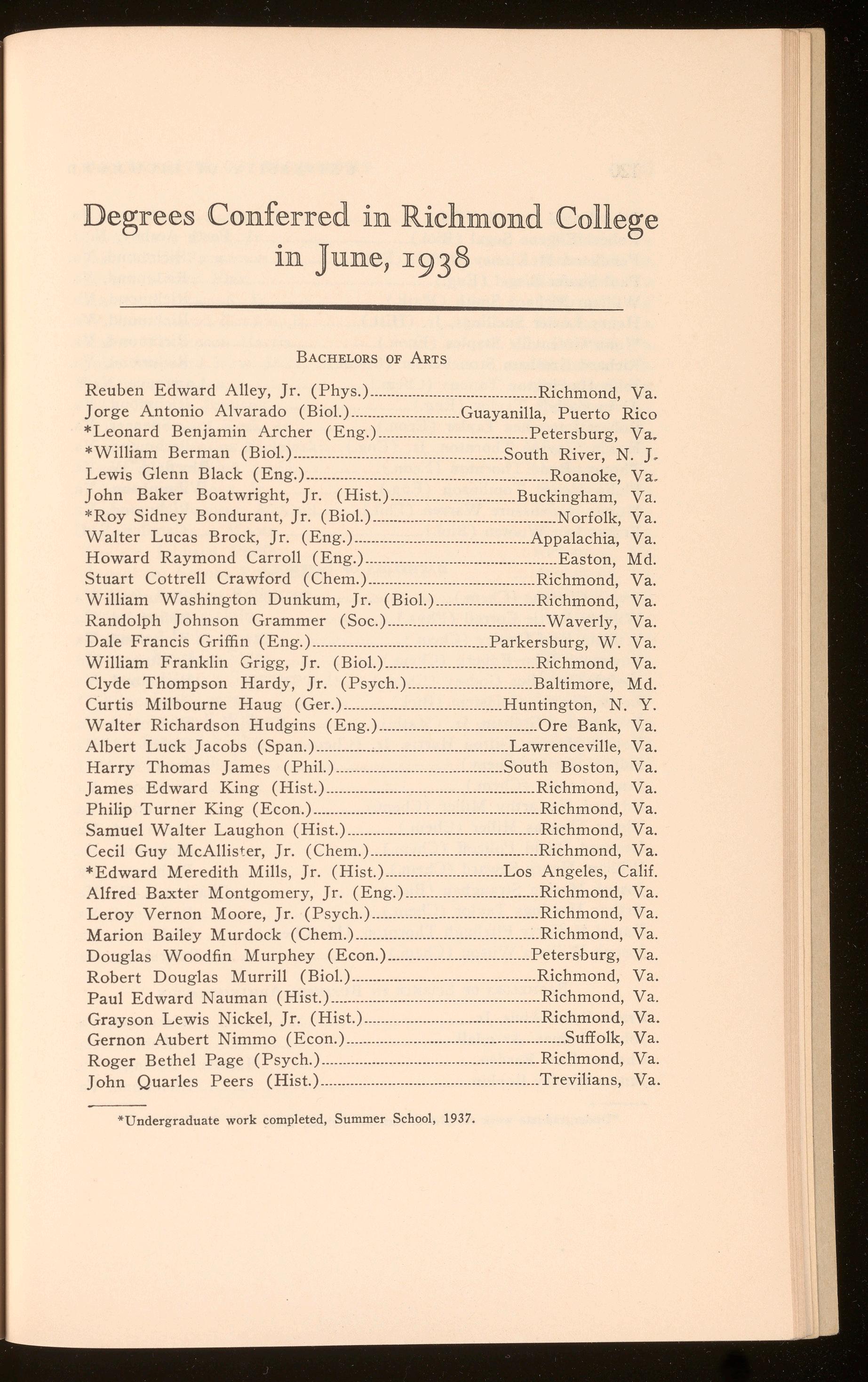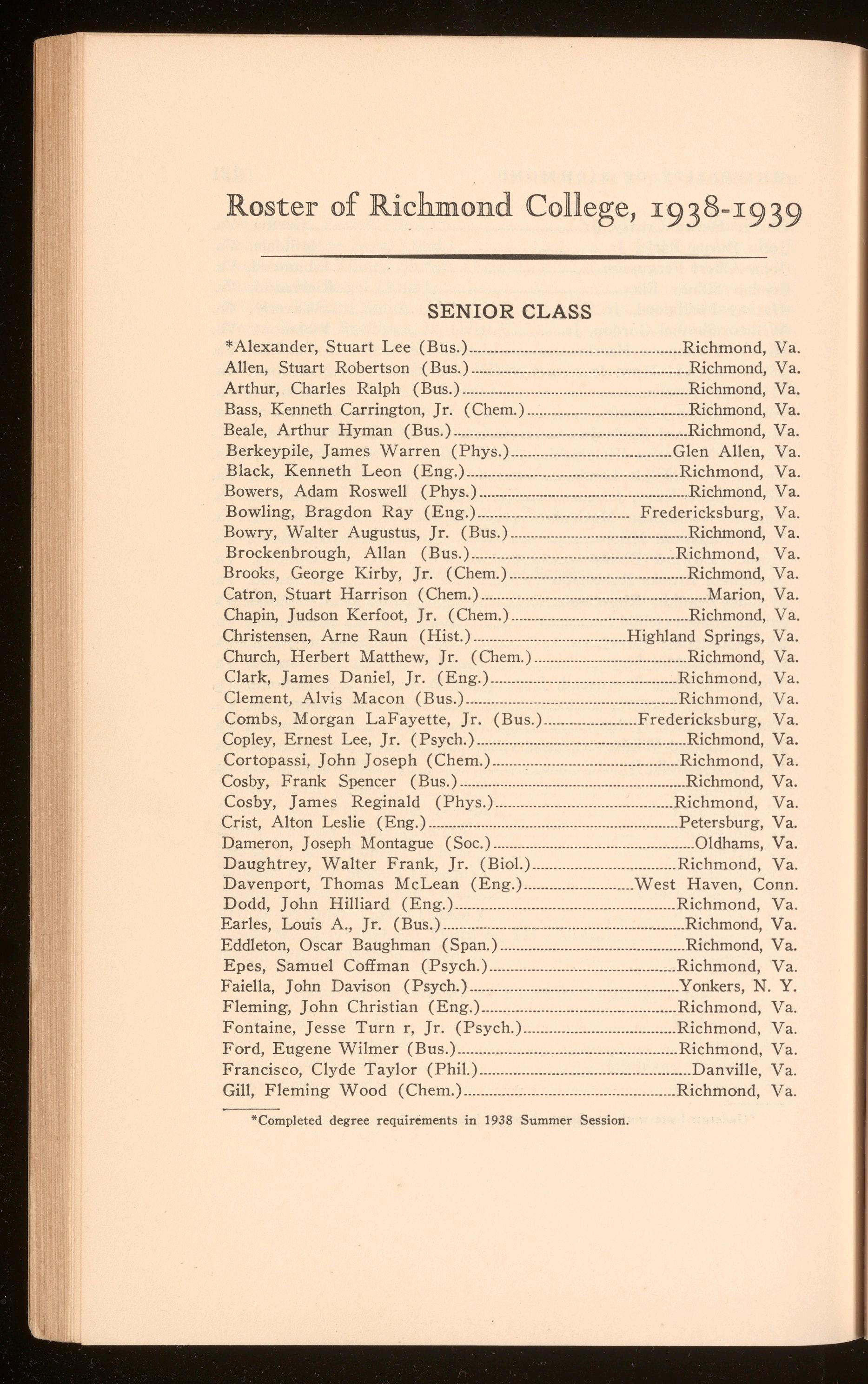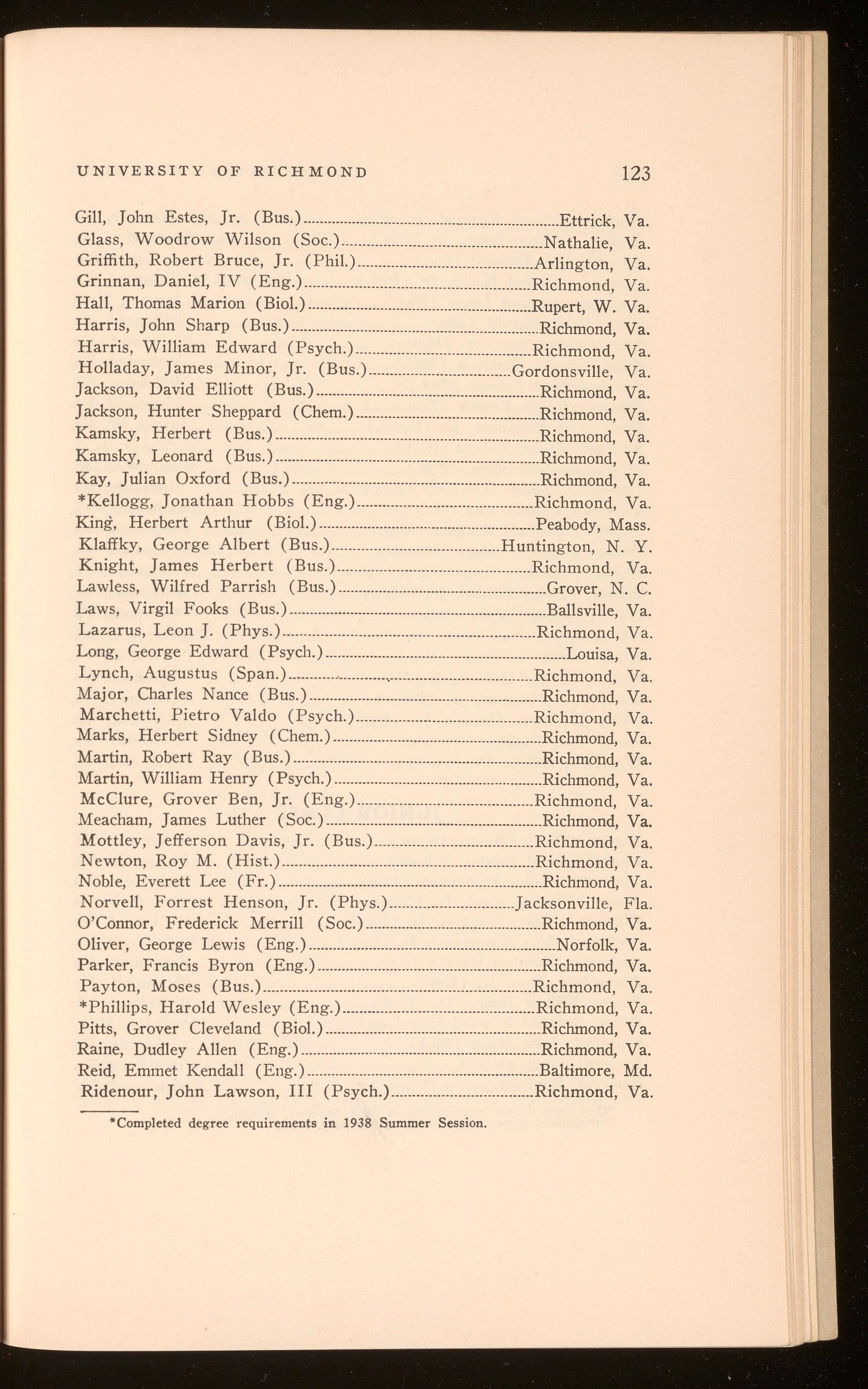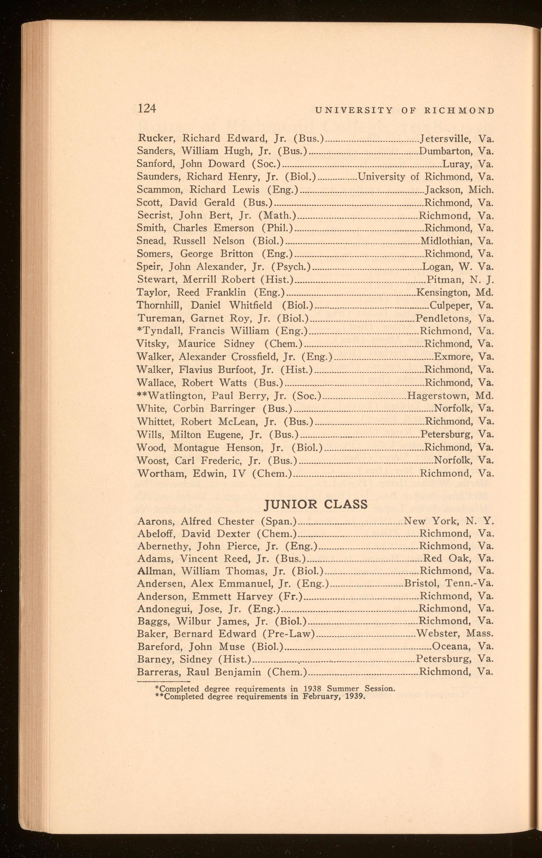 Bagby, Richard Hugh .................................................................. Richmond, Va. Curry, Harper Wark .......................................................................Richmond, Va. Polyak, Stefan Thomas .............................................................. Richmond, Va. Roberts, Shilly Herbert .............................................................. Richmond, Va.