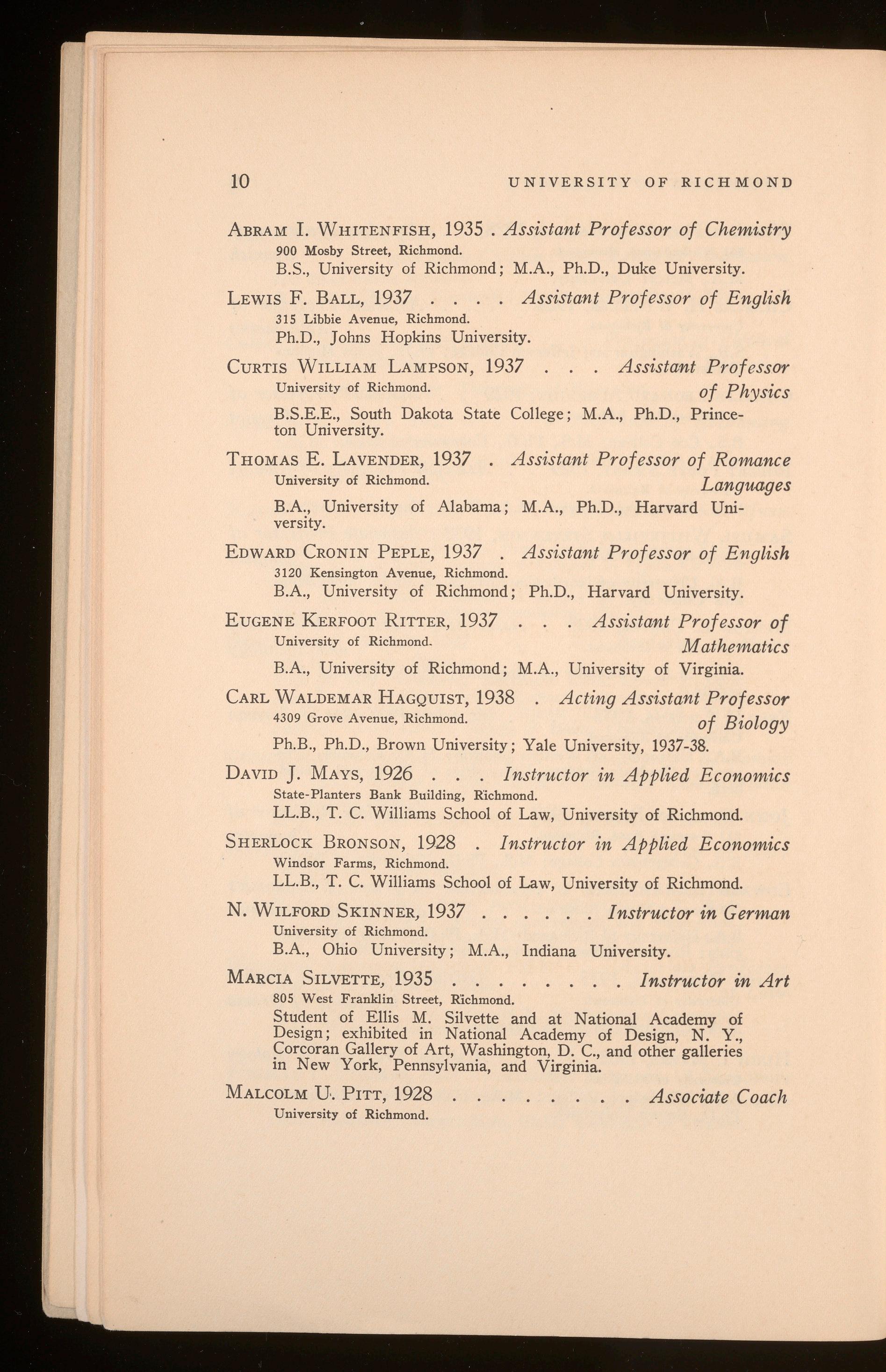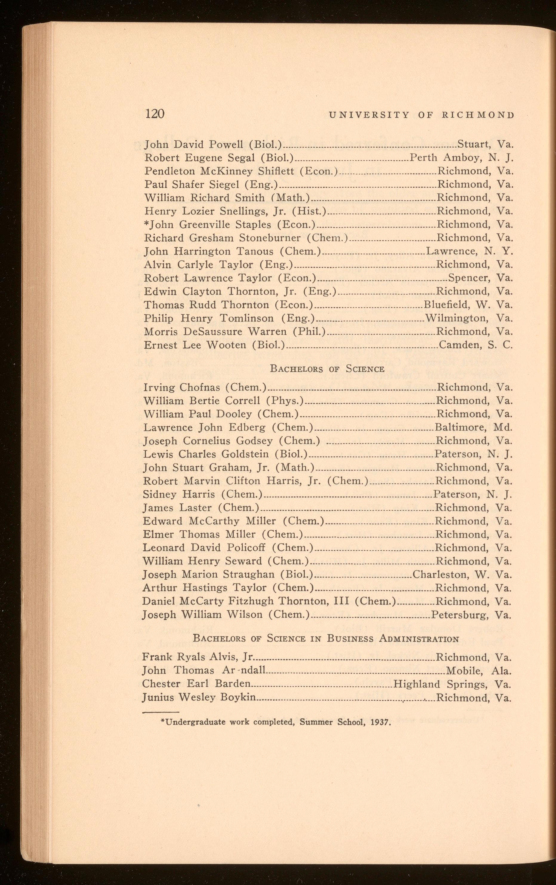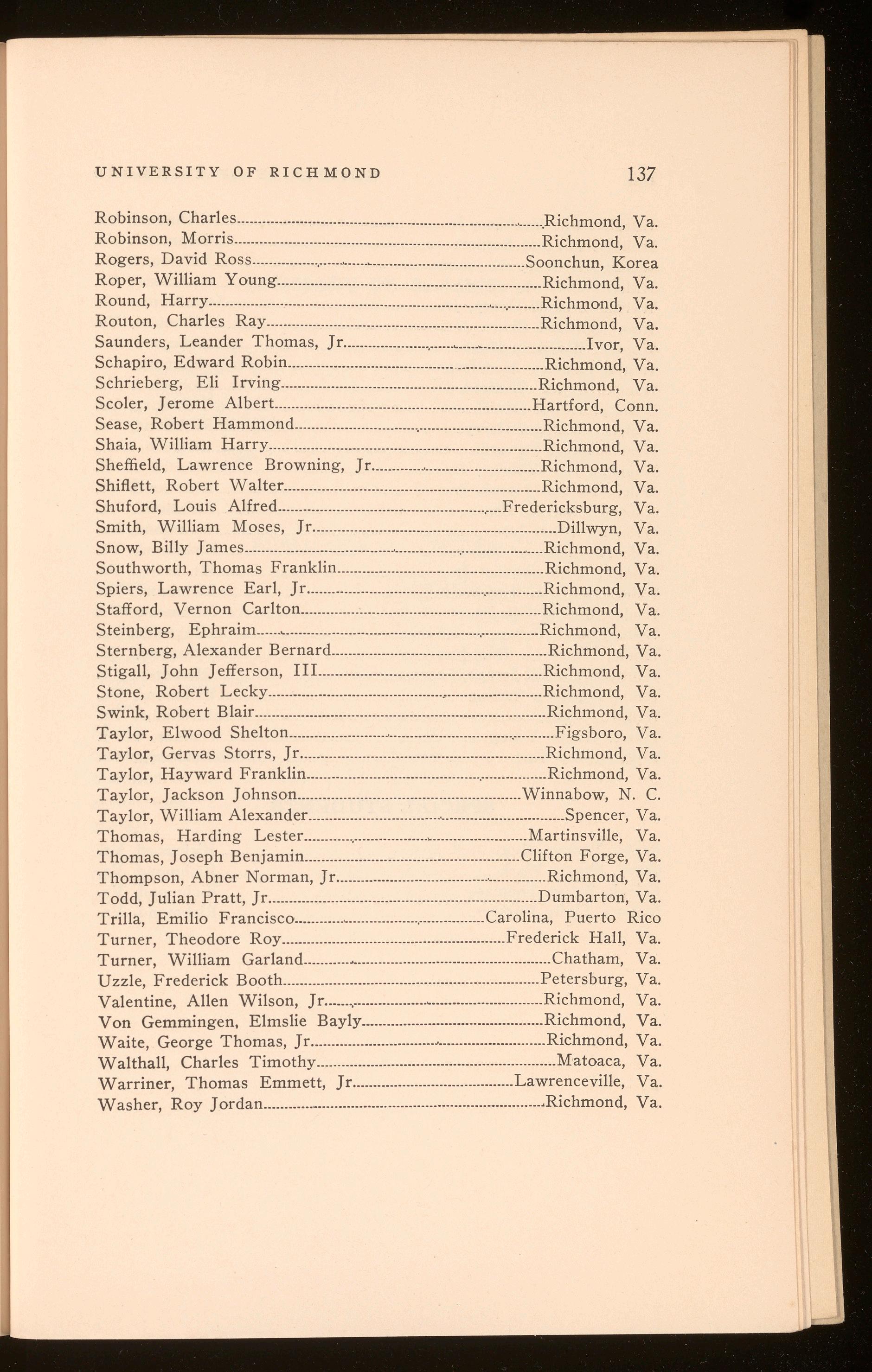 Sease, Robert Hammond .............................................................Richmond, Va.