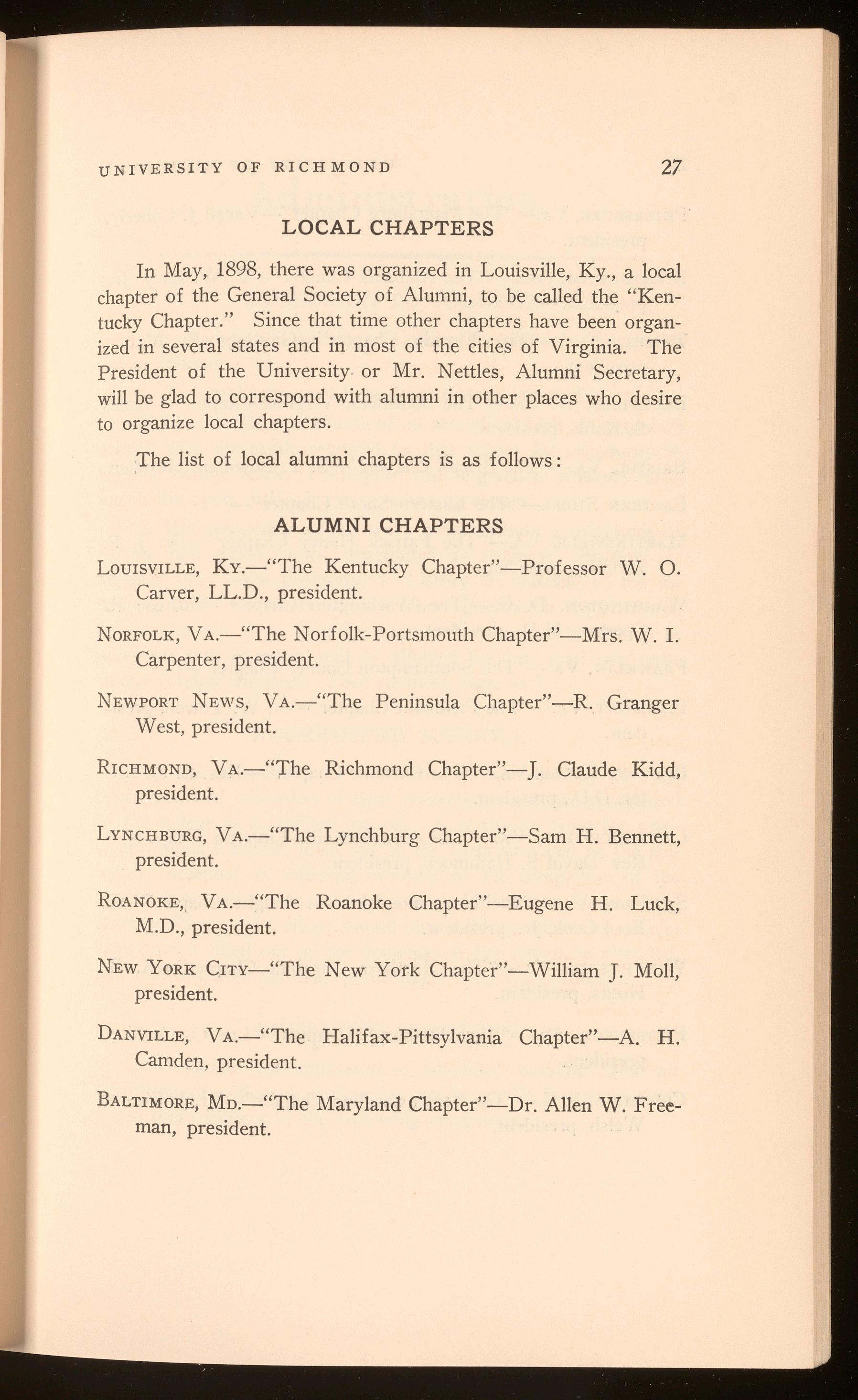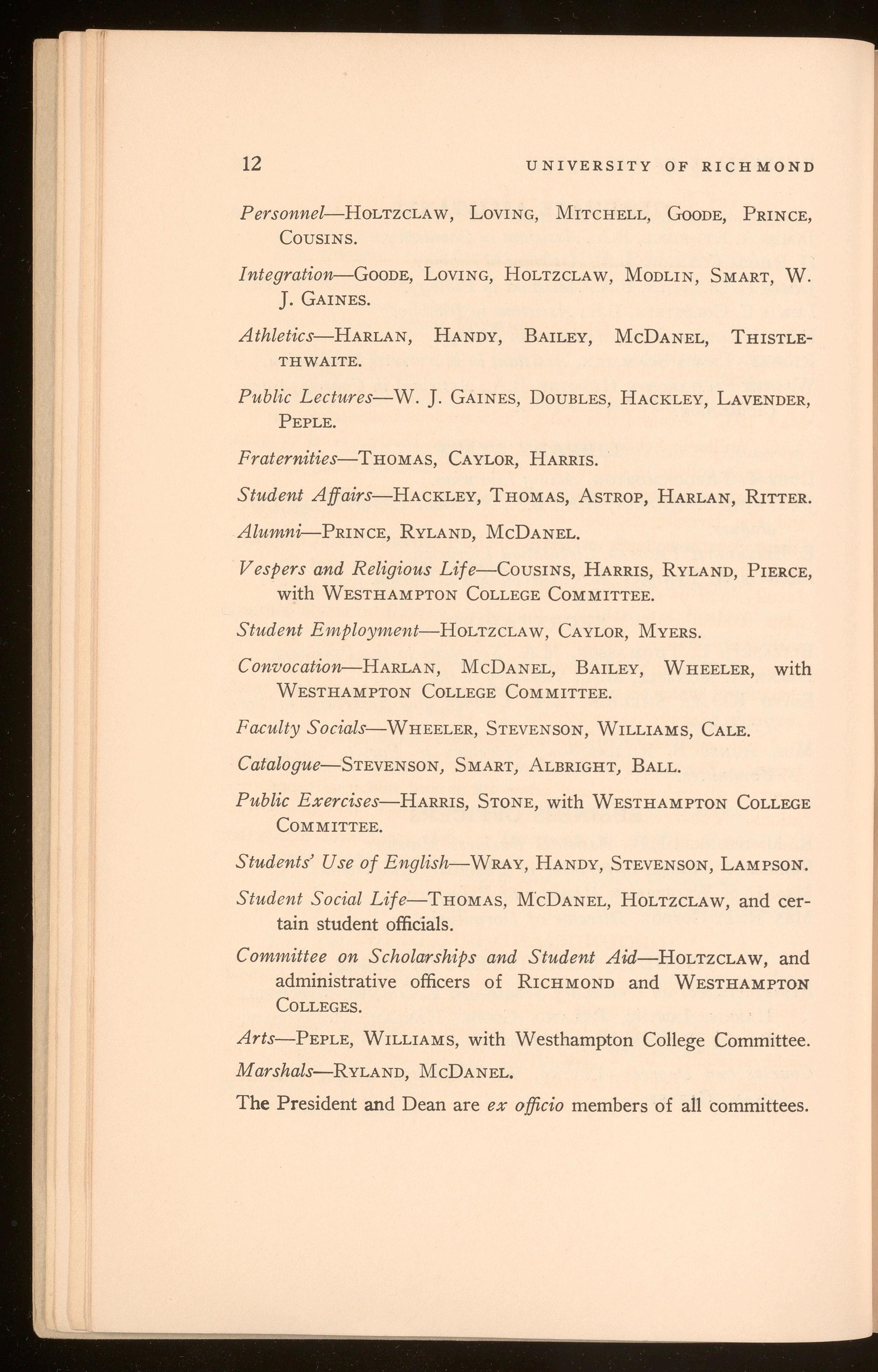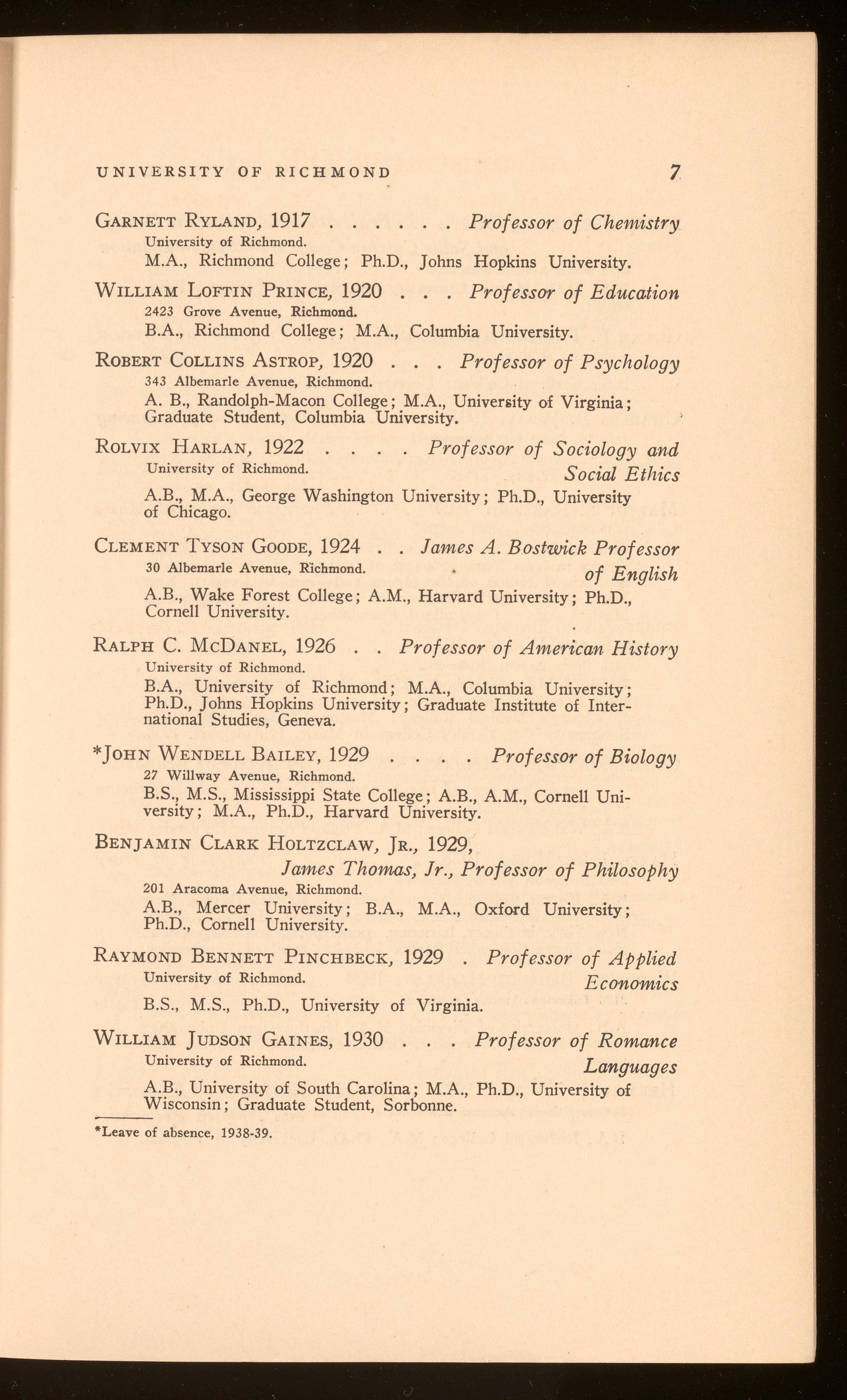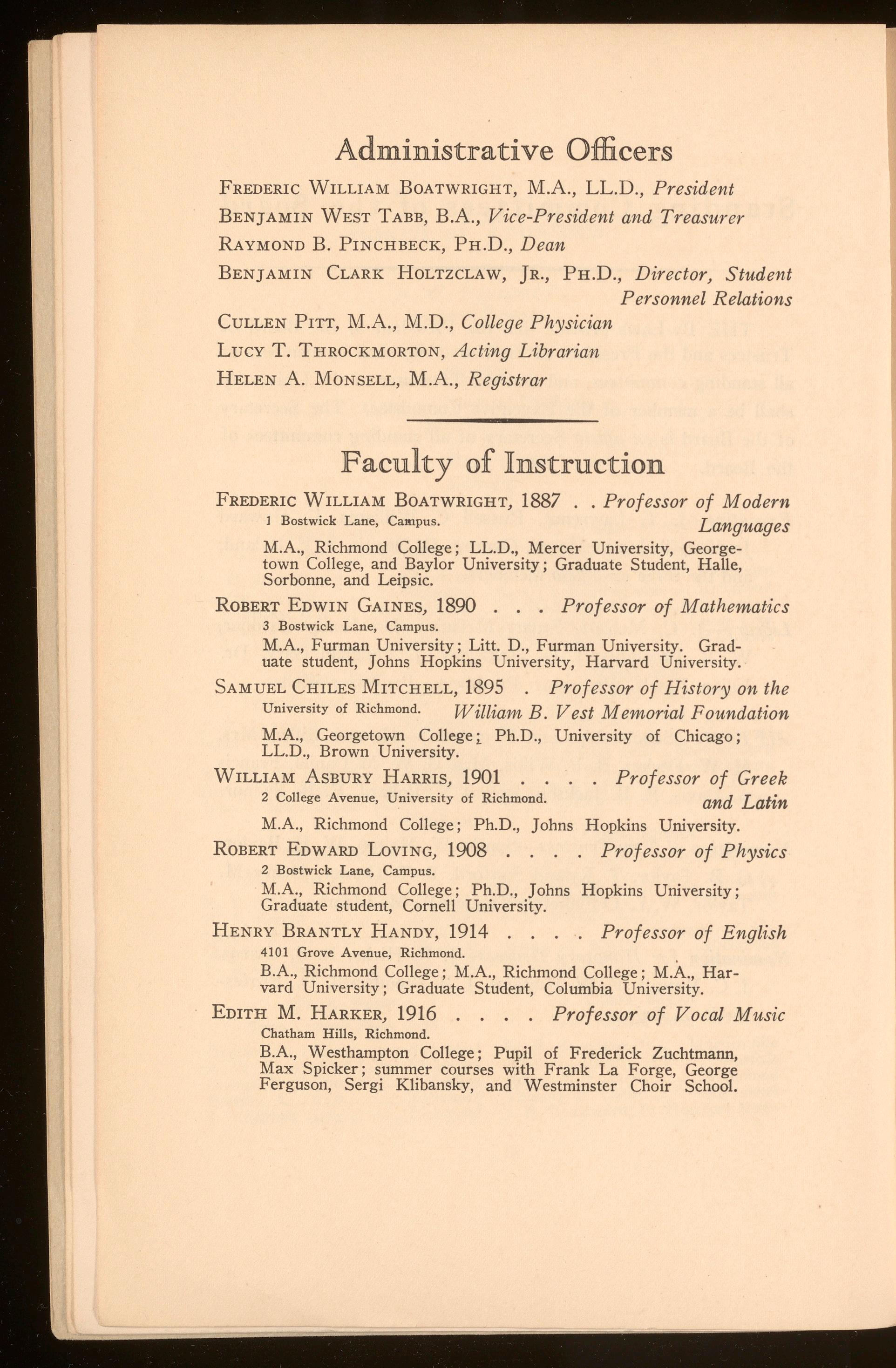 Aid Funds (Scholarships and Donations)-Hunter Miller, Mrs. H. W. Decker, B. P. Willis, Mrs. G. W. McDaniel, Francis A. Davis, E. B. Jackson , Robert N. Pollard, E. B . Sydnor.