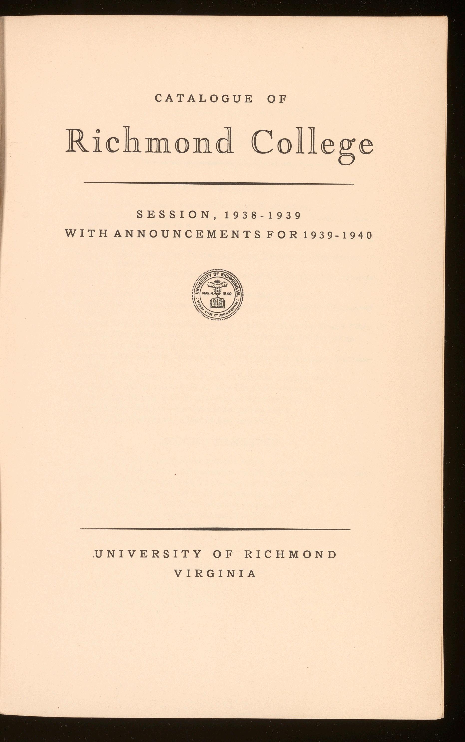 SESSION, 1938-1939 WITH ANNOUNCEMENTS FOR 1939-1940