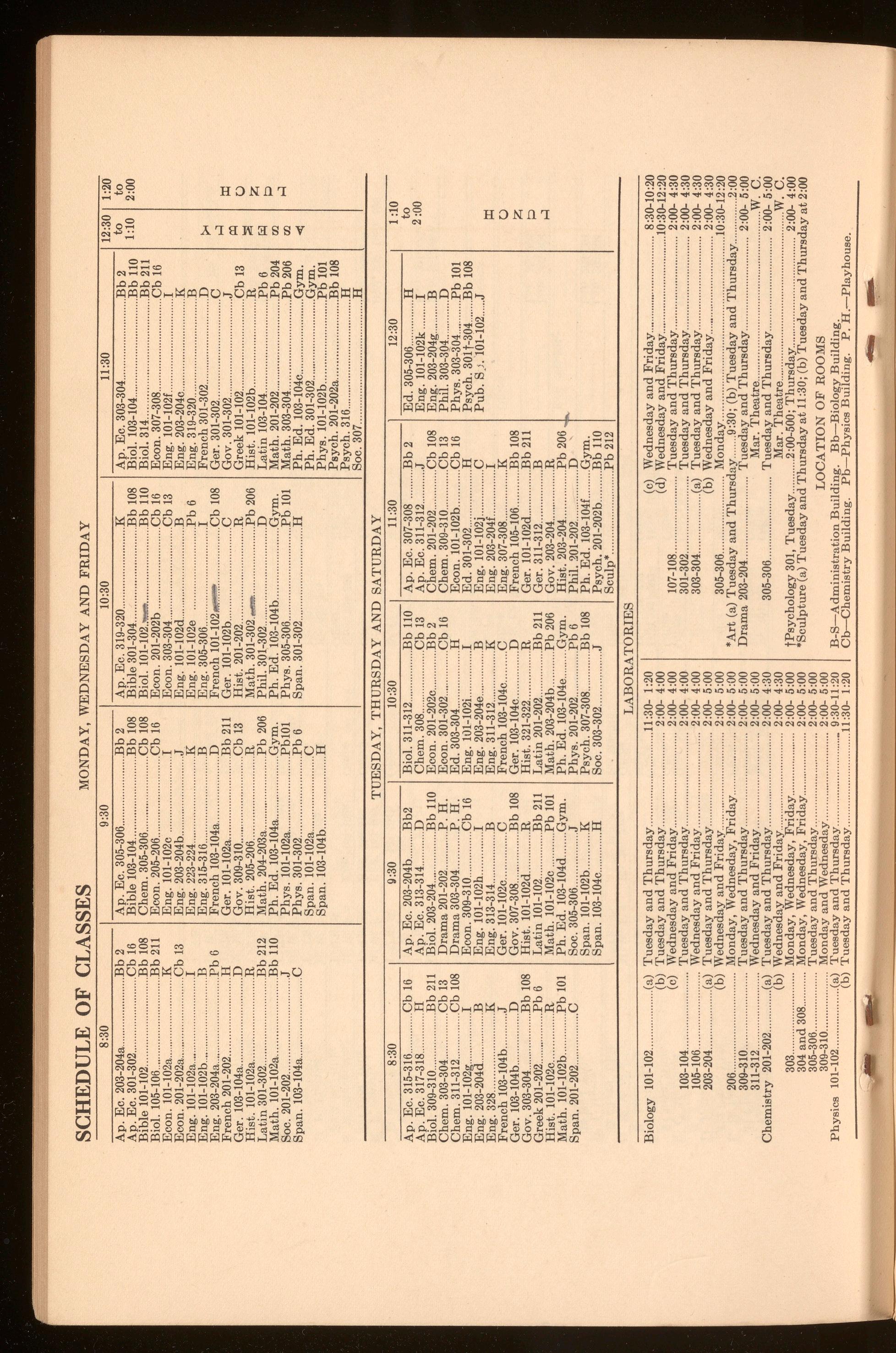Ap. Ee. 315-316 Cb 16 Ap. Ee . 317-318 ......... H Biol. 309-310 ................... Bb 211 Chem. 303-304 Cb 13 Chem 311-312 Cb 108 Eng. 101102g