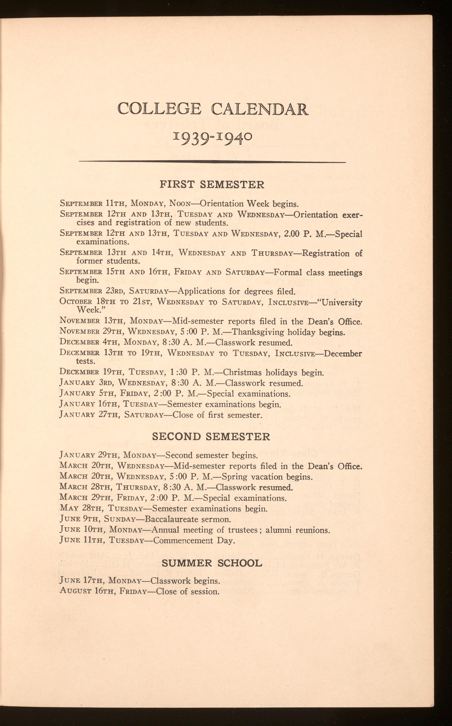 SEPTEMBER12TH AND 13TH, TUESDAY AND WEDNESDAY-Orientation exercises and registration of new students.