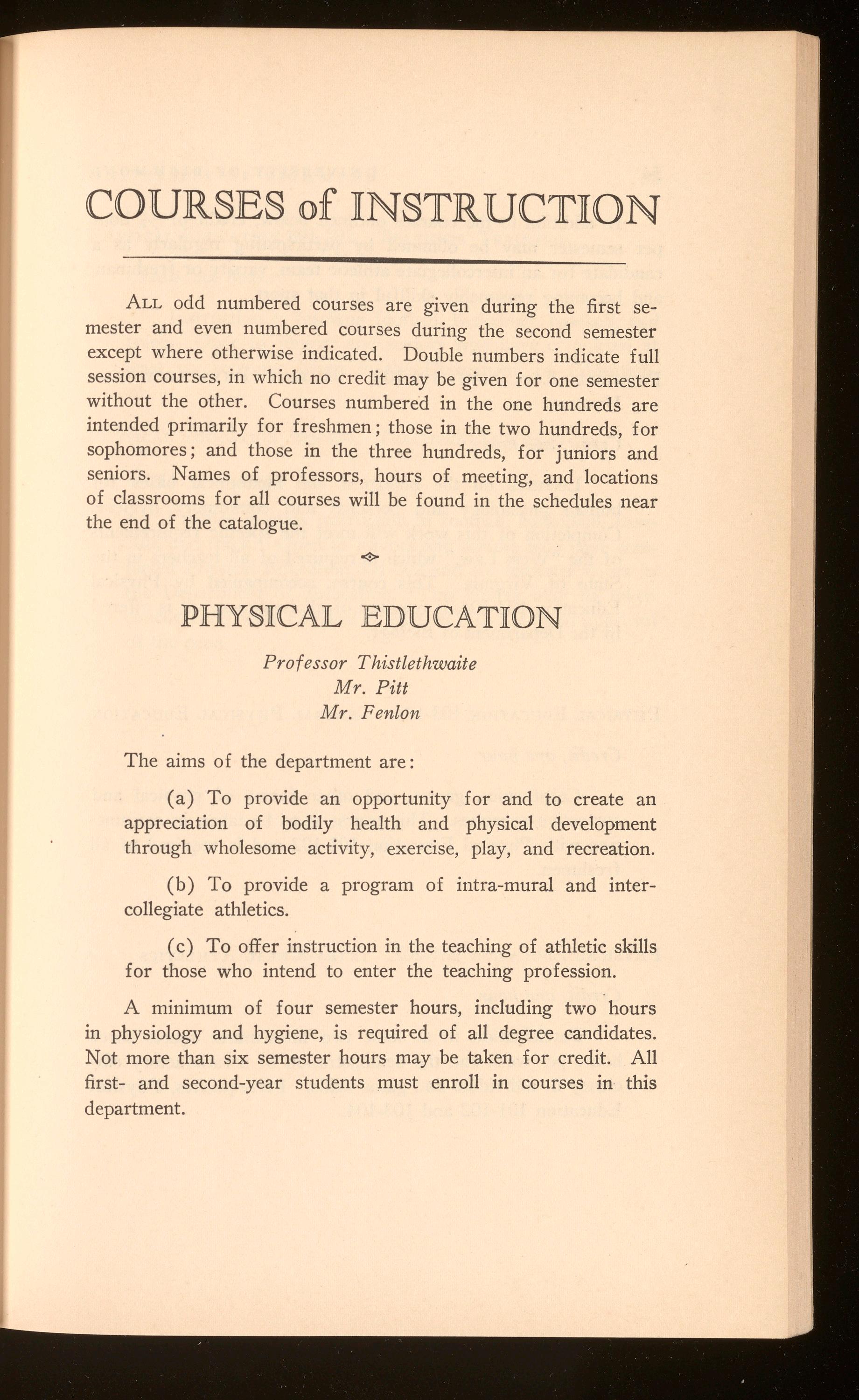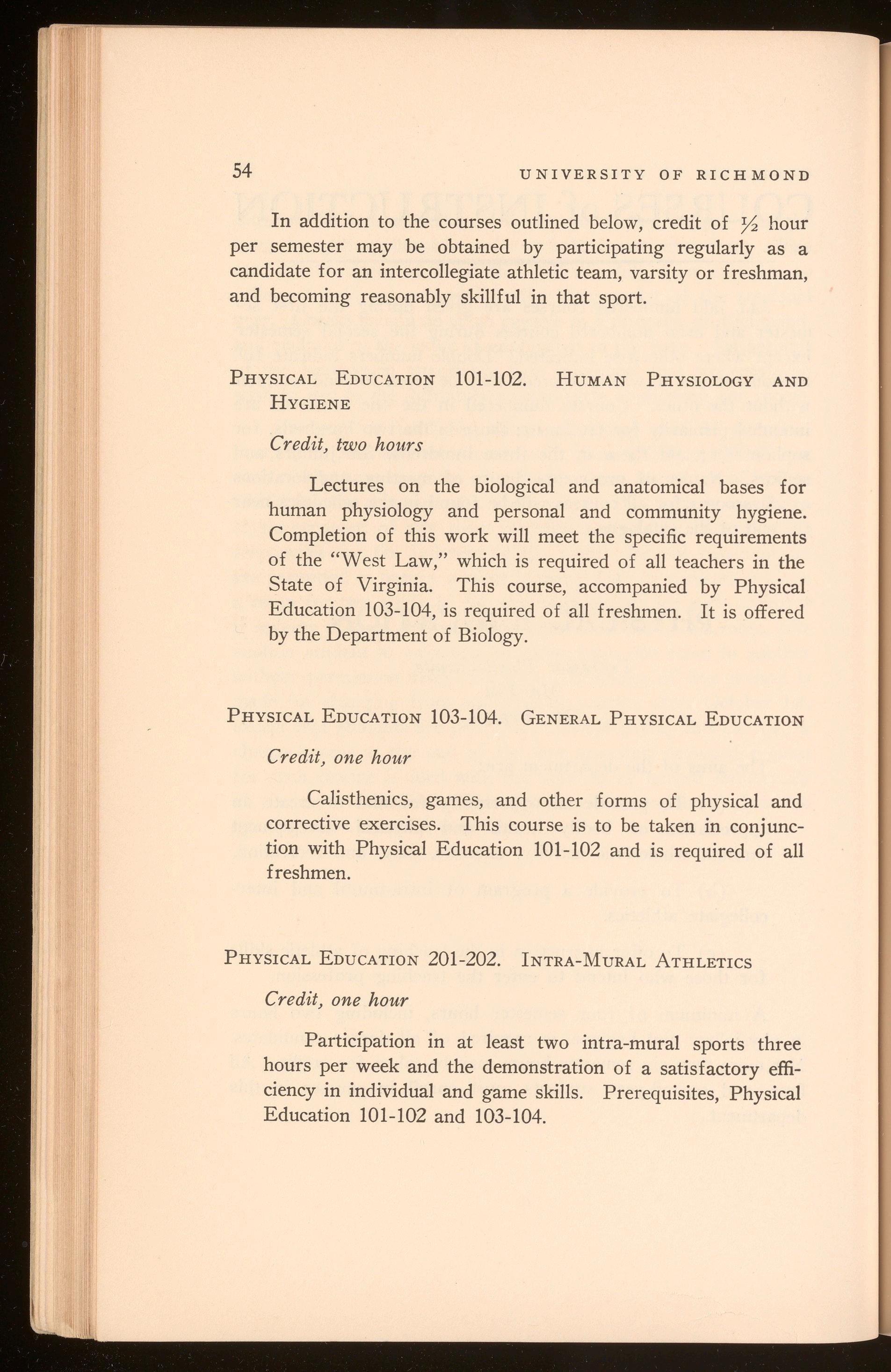 Gym. Phys. 101-102a PblOI Ph. Ed. 103-104b .... Gym. Phys. 305-306 Pb 1 01 Math. 201-202..