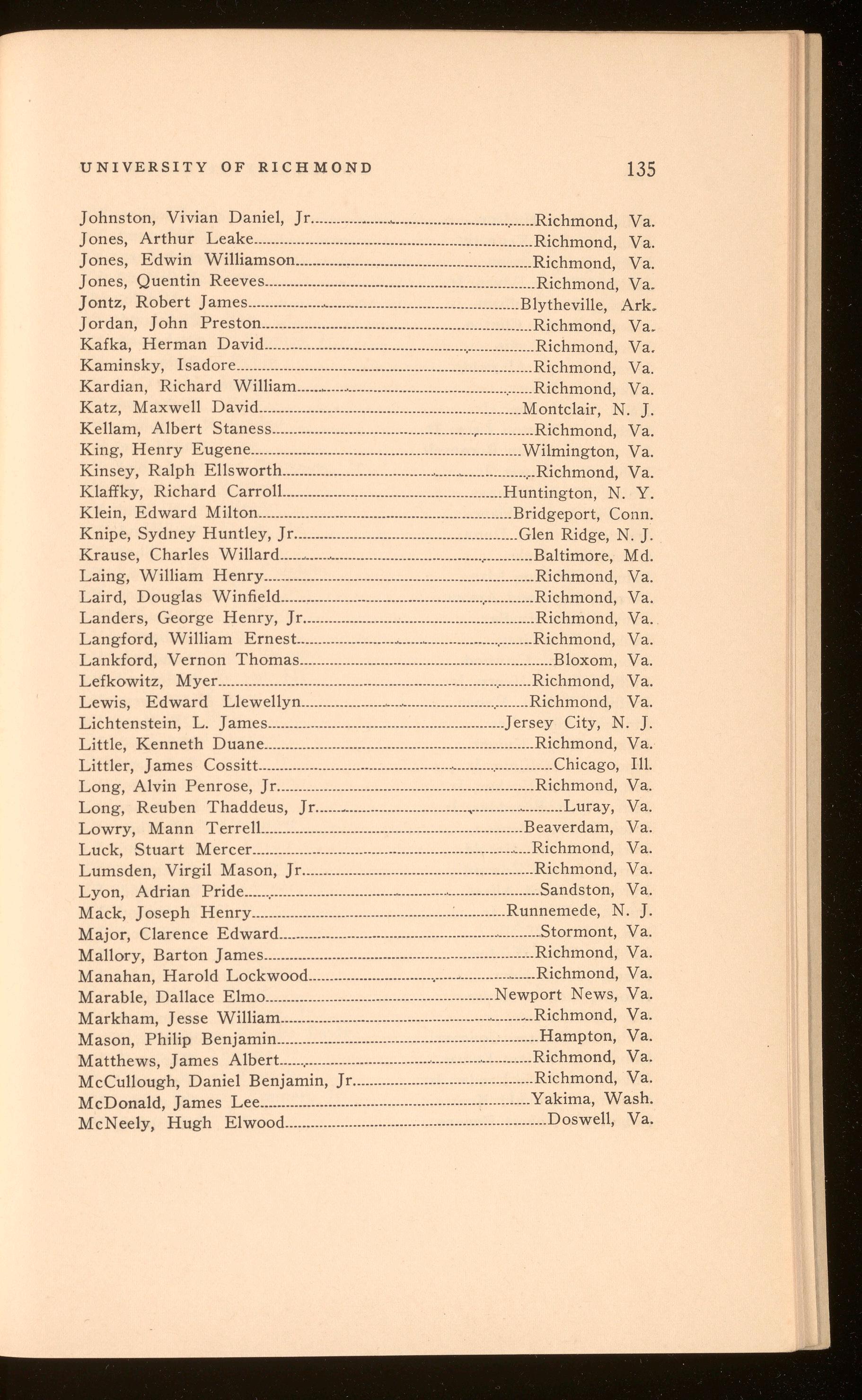 Stigall, John Jefferson, 111......................................................Richmond, Va.