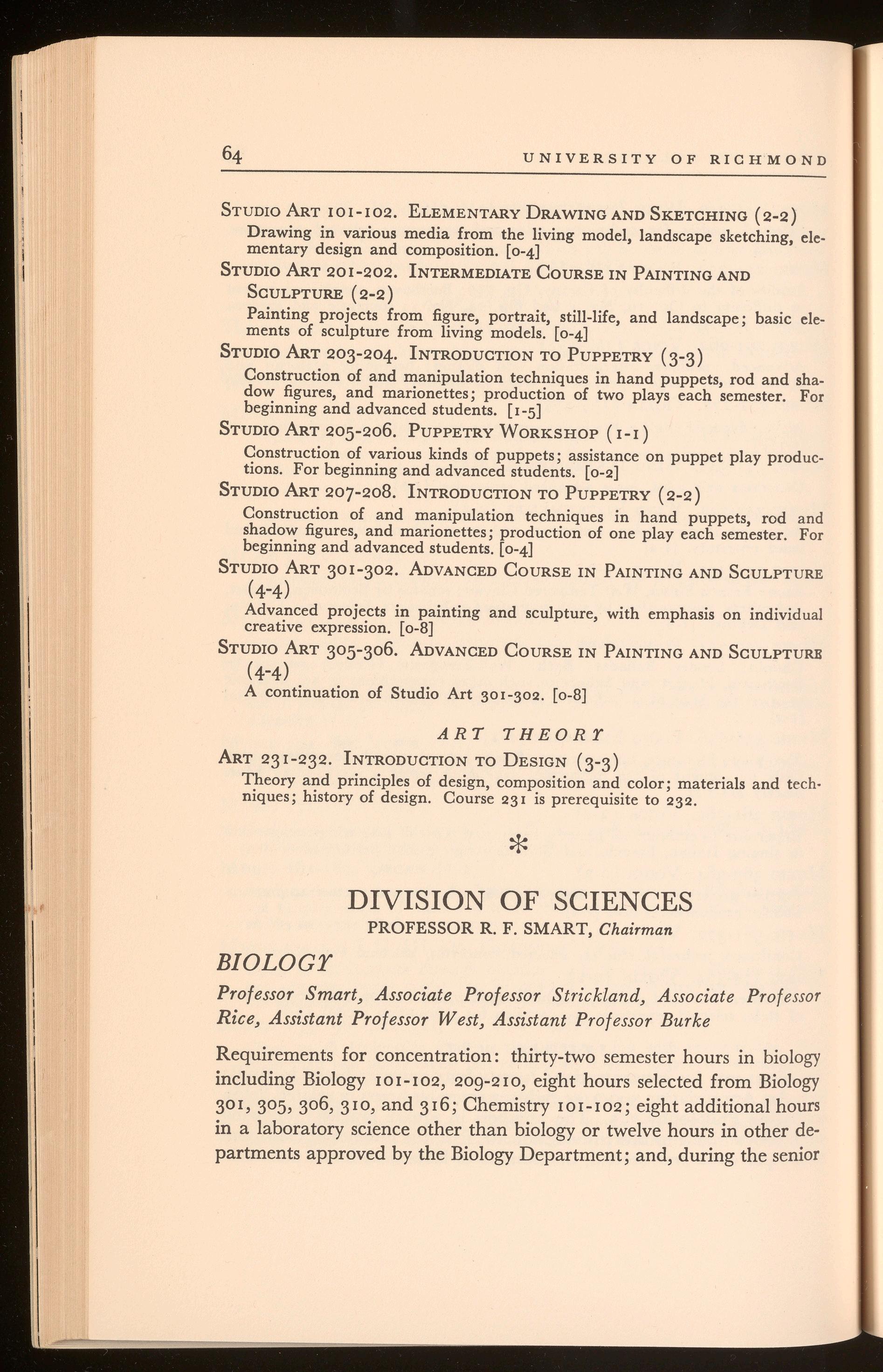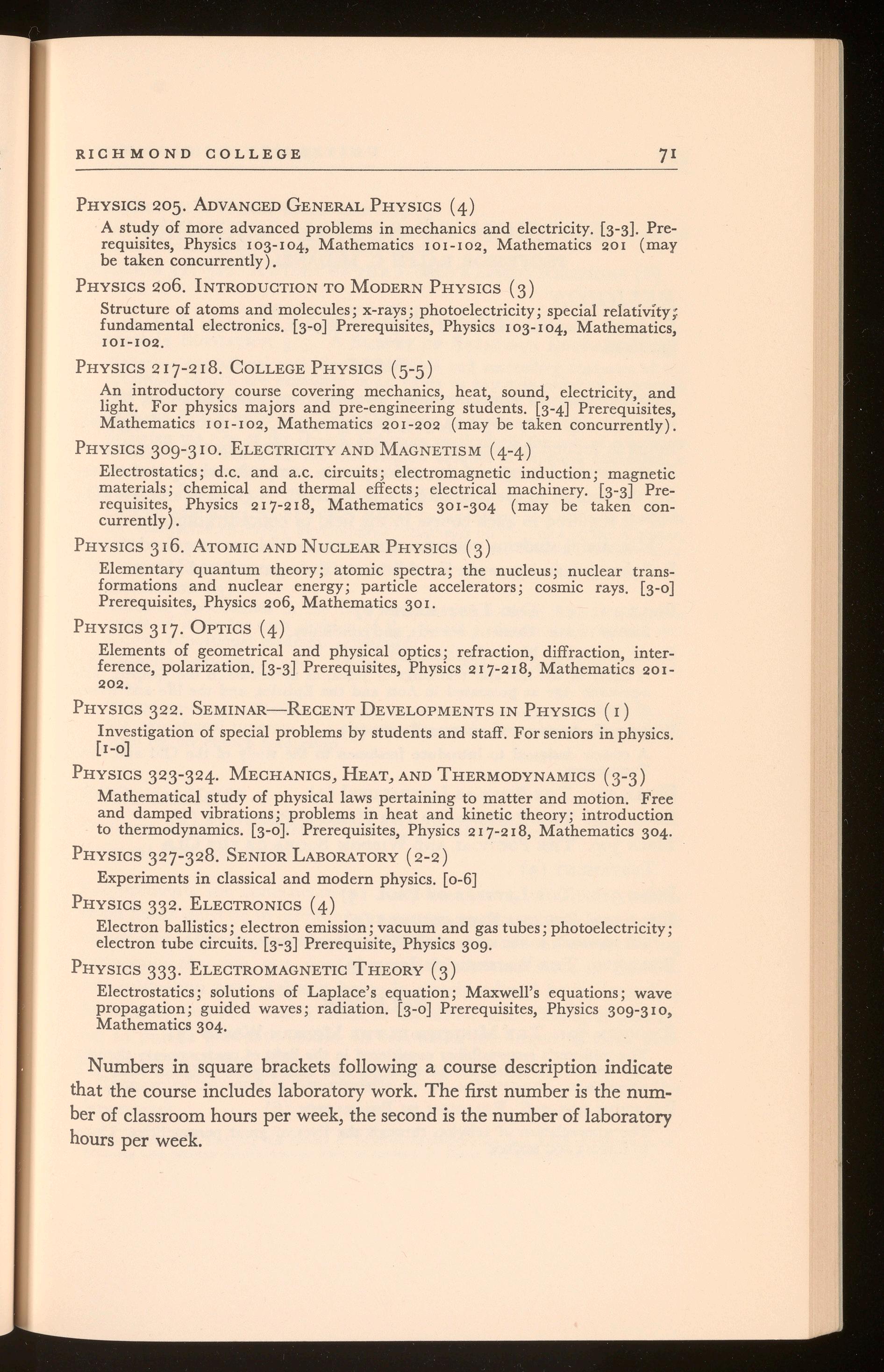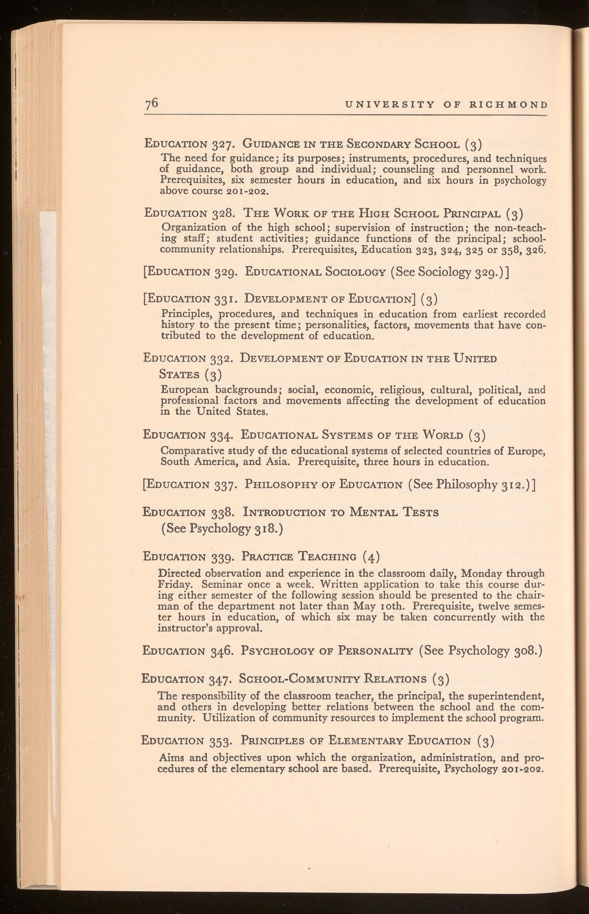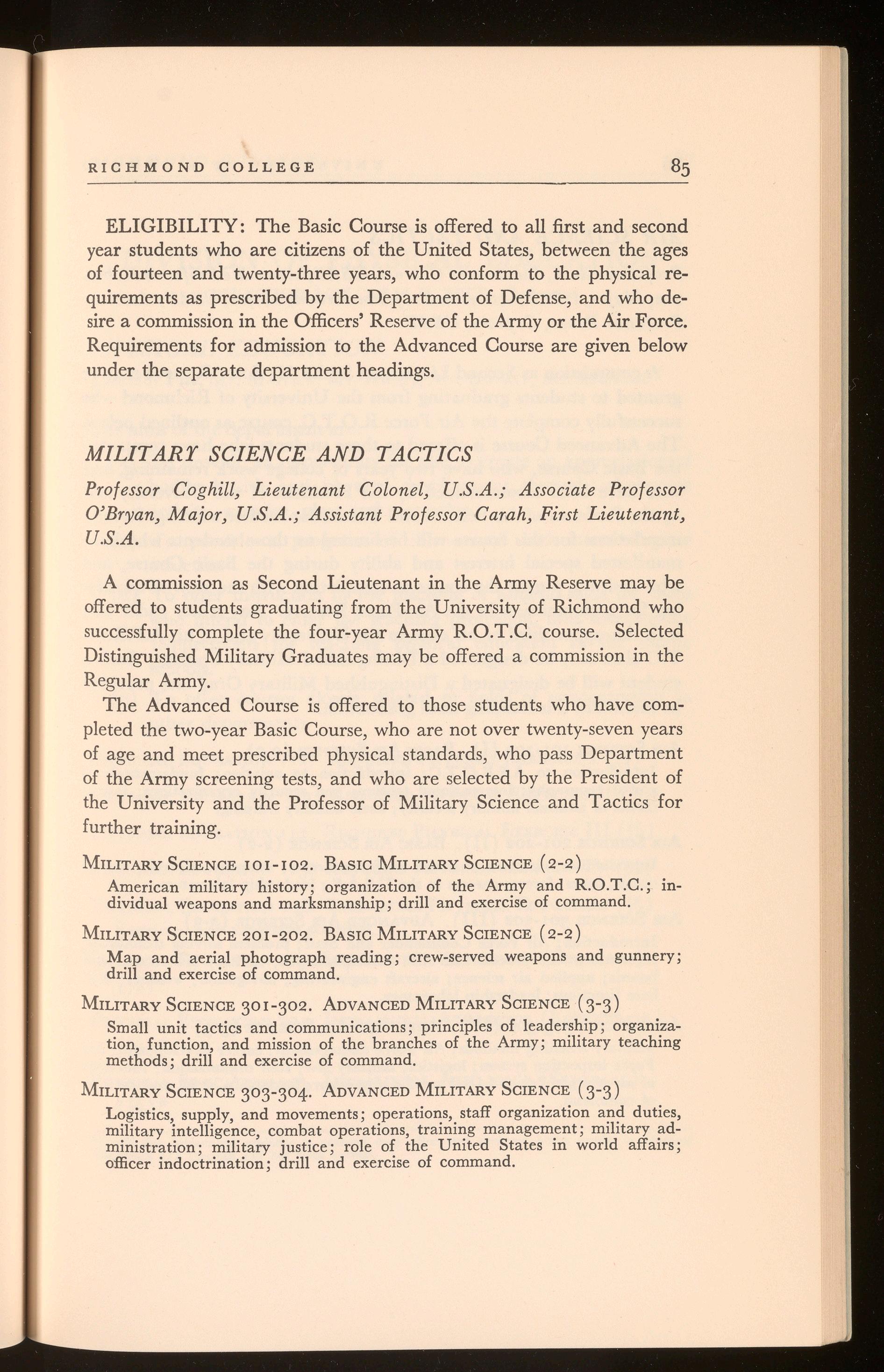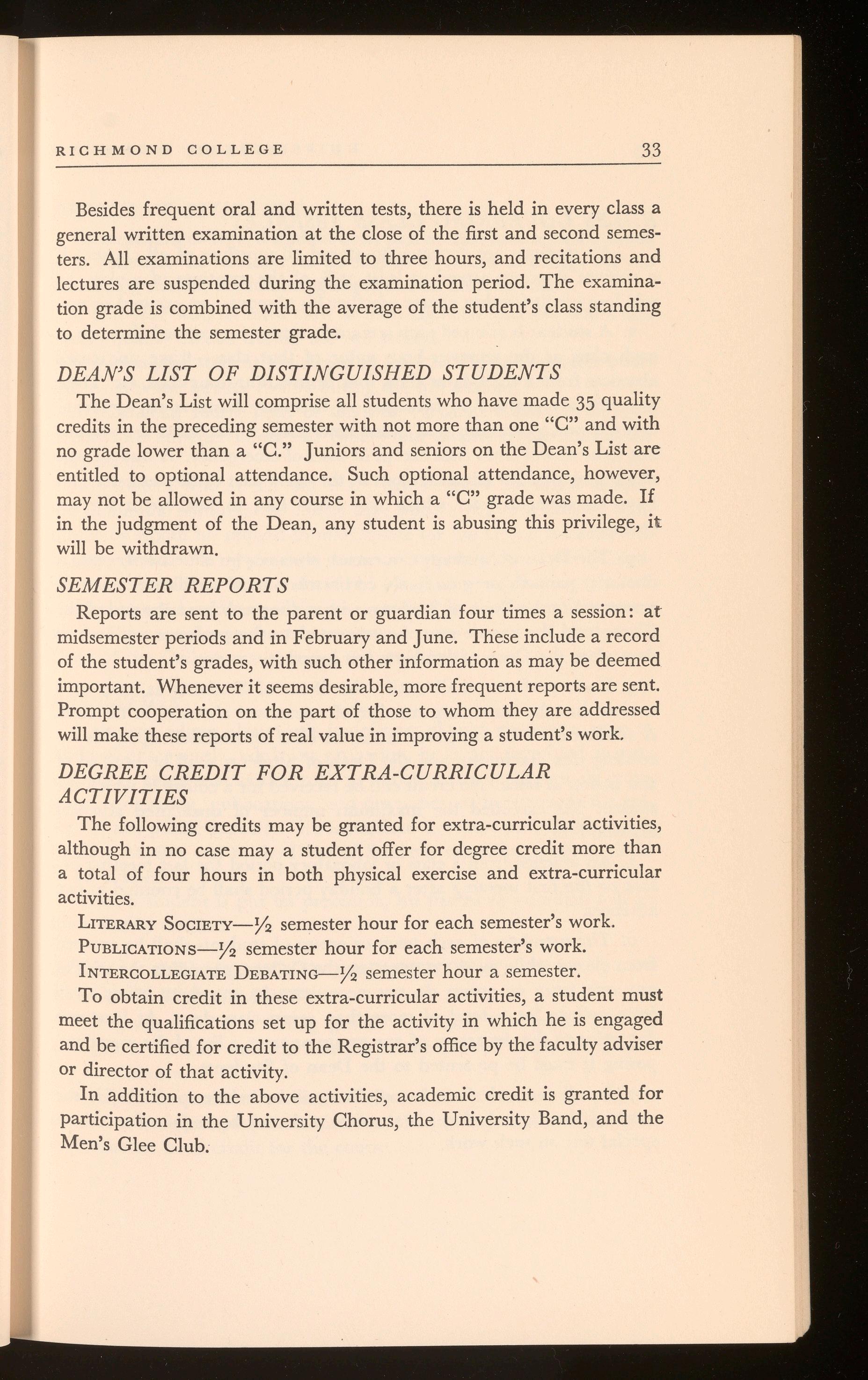 The School of Business Administration is designed to serve both full-time and part-time students. Full-time students who desire to work for the degree of Bachelor of Science in Business Administration are eligible to enter the Business School upon the completion of sixty hours of work (including six in principles of economics or its equivalent) with sixty quality credits. This preliminary work in liberal arts courses can be taken at Richmond College or any other accredited school.