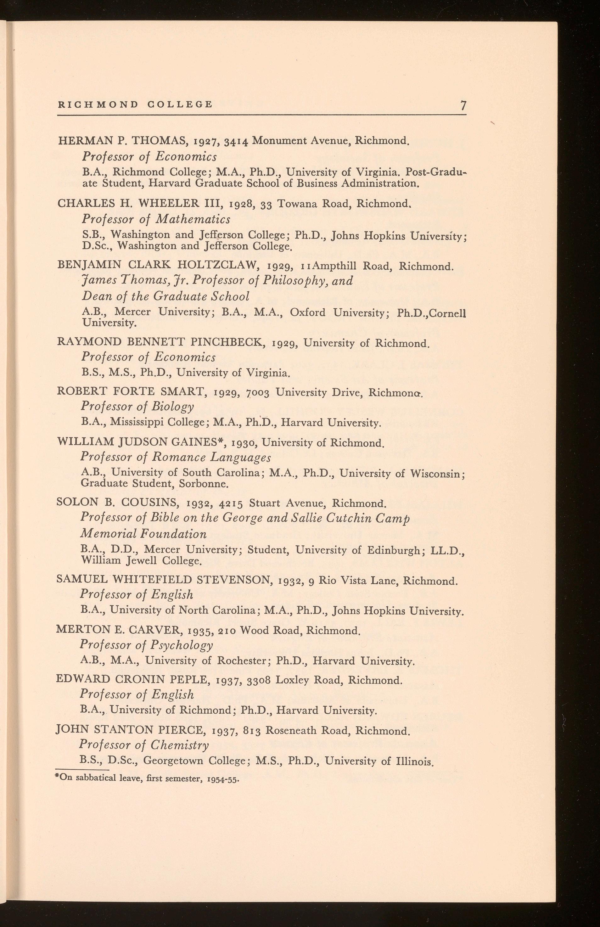 ROBERT EDWIN GAINES, 1890, 3 Bostwick L a n e, Univ ersit y of Richmond Professor of Mathemat ics, Em eritu s