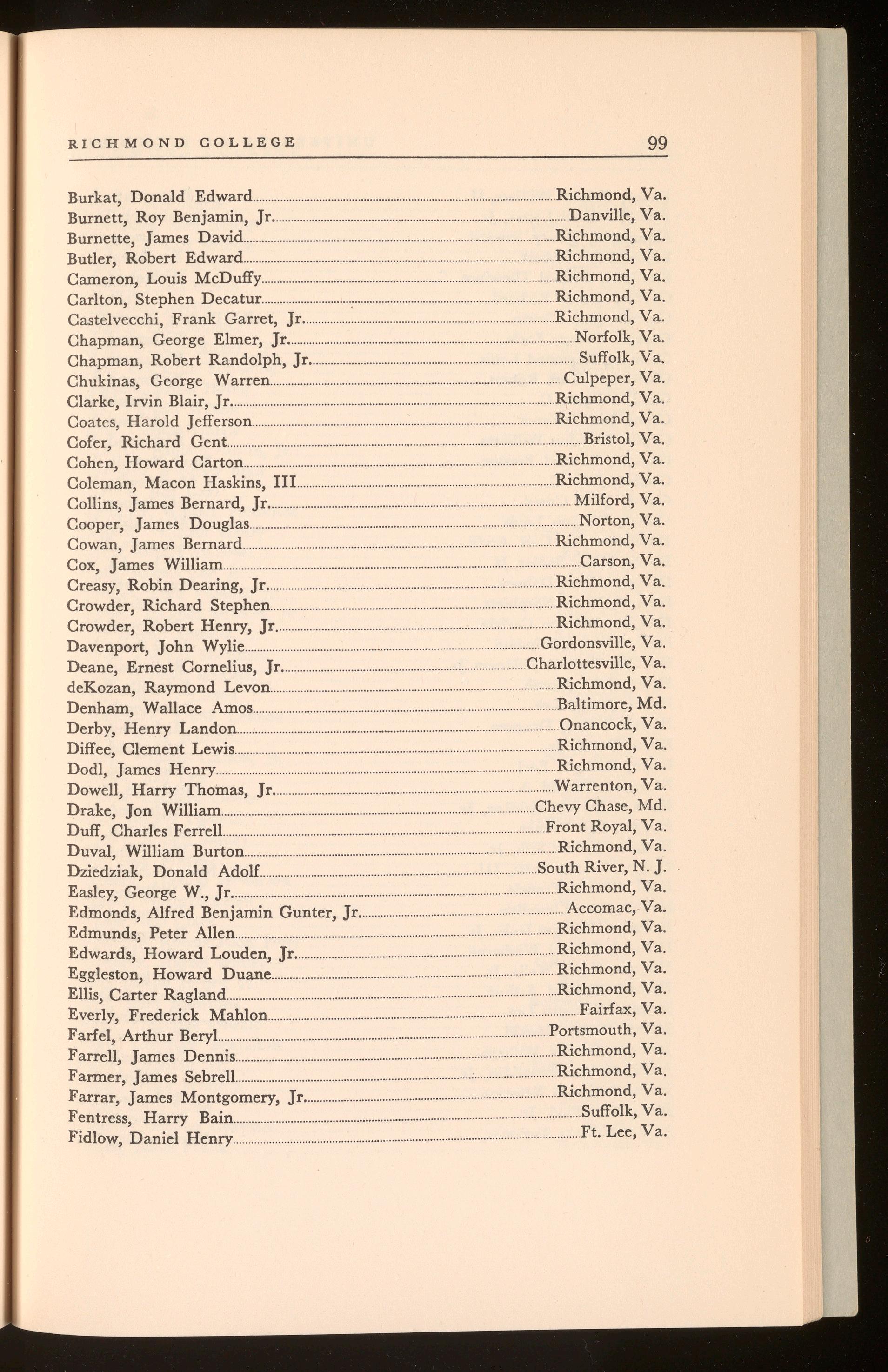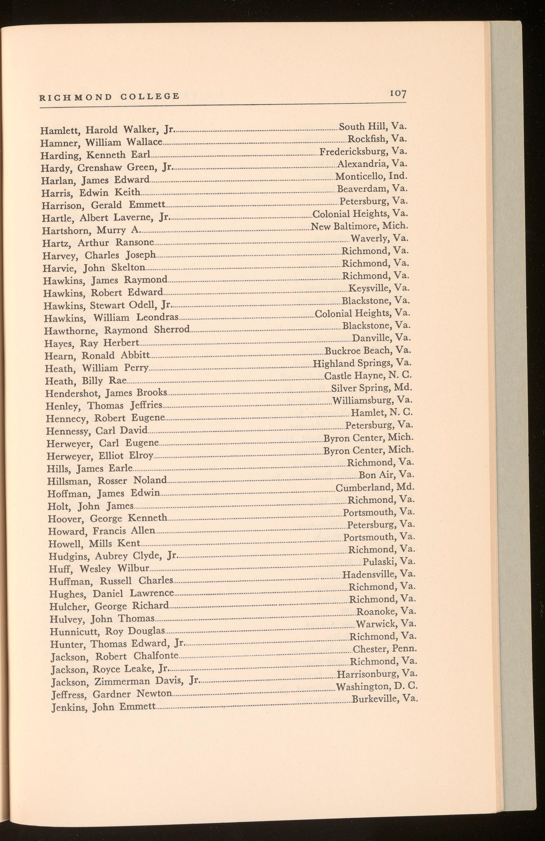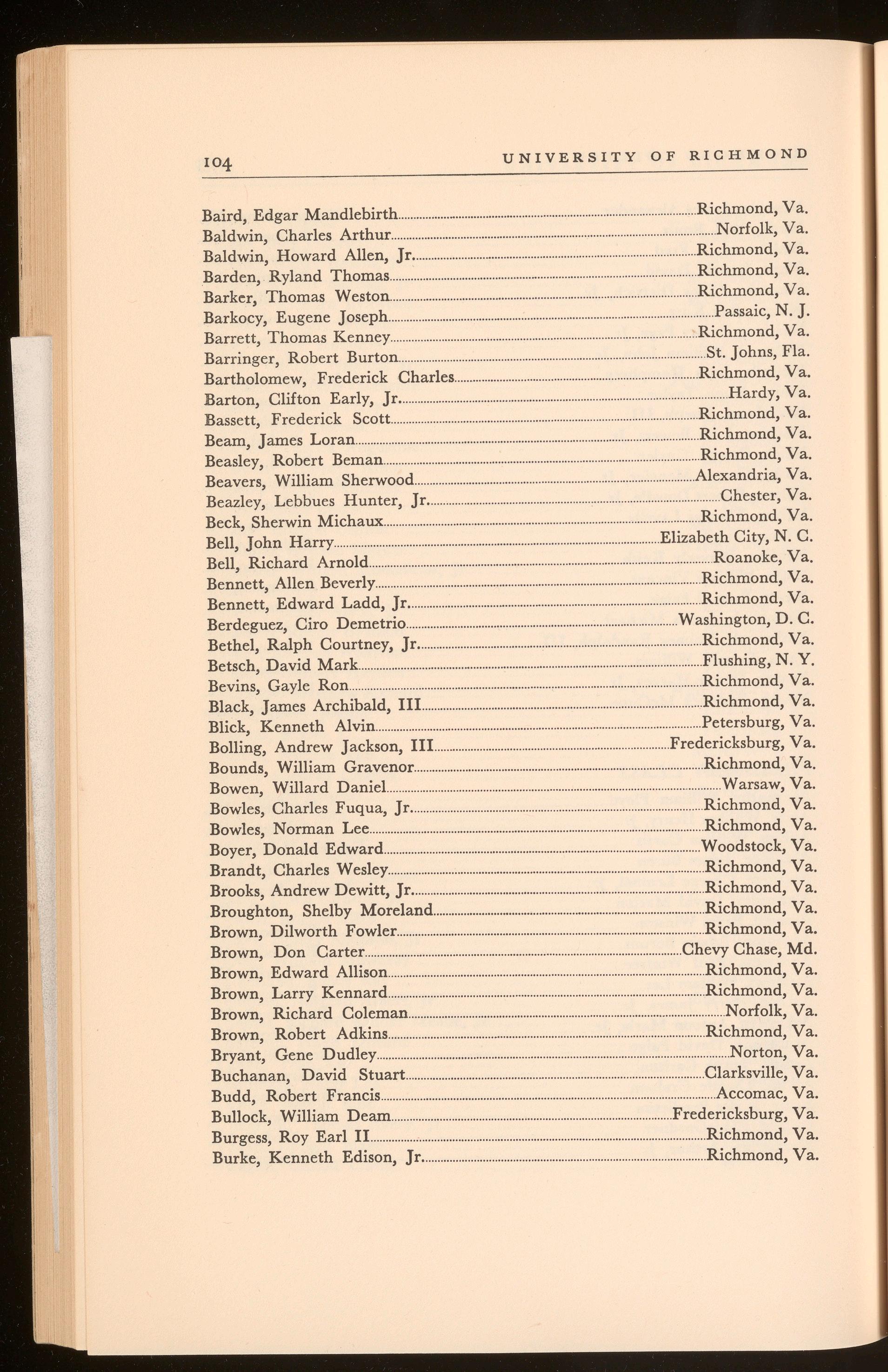 Jack Maurice Davis Pric e (Bible) ...Petersburg, Va. McKenney, Va. Richmond, Va. Etlan, Va. Roanoke, Va. Emporia, Va. ............. Ellerson, Va . .............Richmond, Va. .. . ..... Richmond, Va. ......................Princeton, N. J. .Vinton, Va. Danville, Va. Richmond, Va. .Hopewell, Va . Portsmouth, Va. Richmond, Va. ..... Buena Vista, Va. Richmond, Va. .Lawrenceville, Va. . .. Aliquippa, Pa. . .Richmond, Va. ...............Church Road, Va . ................Roanoke, Va. Richmond, Va