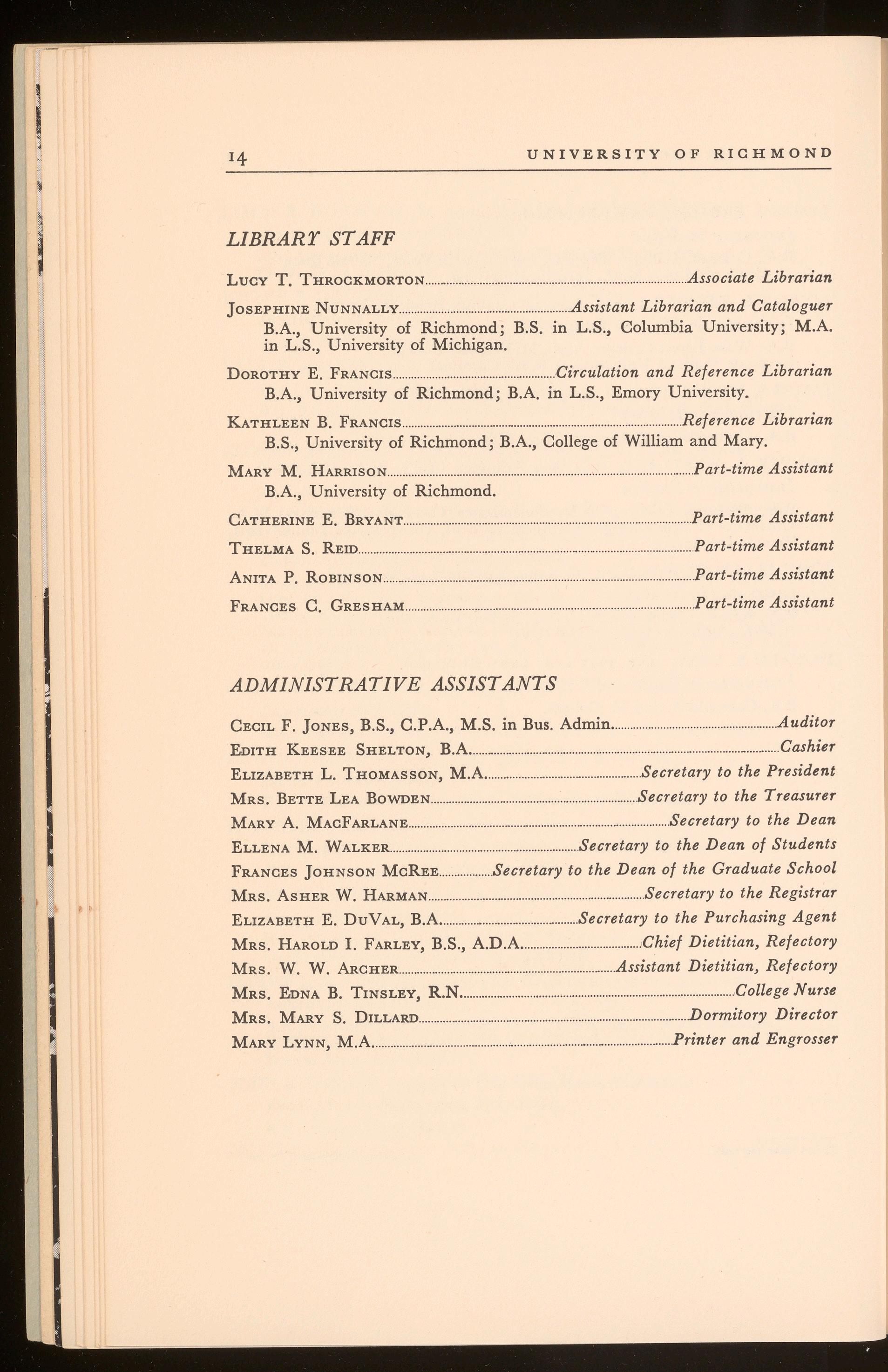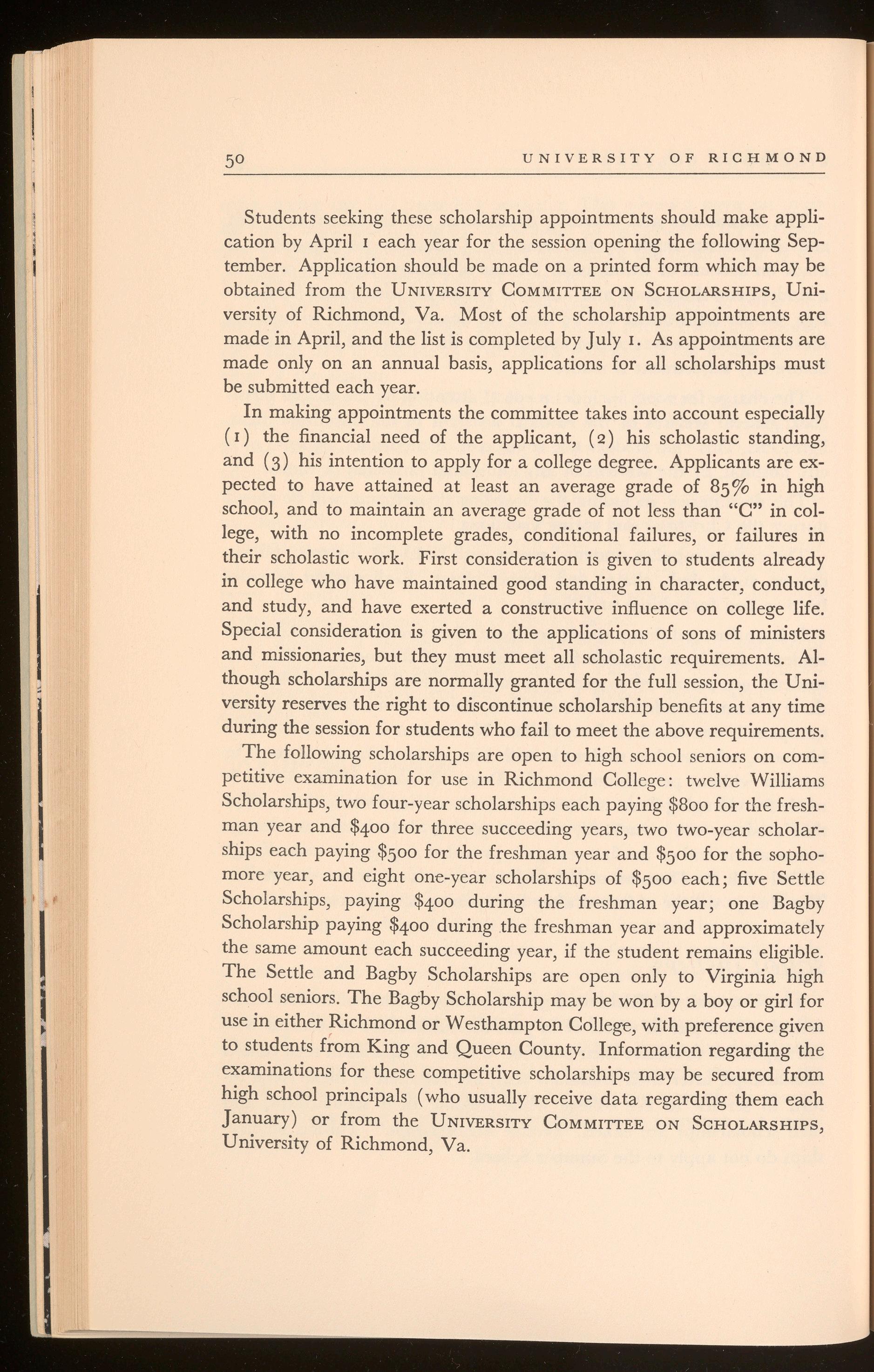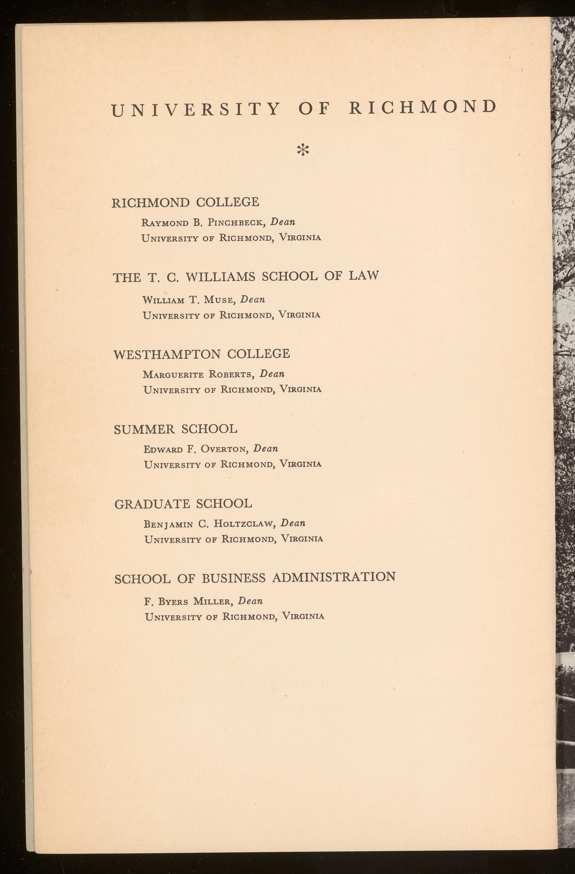 For the catalogue of the School of Business Administration, address the Dean, School of Business Administration, University of Richmond, Virginia.