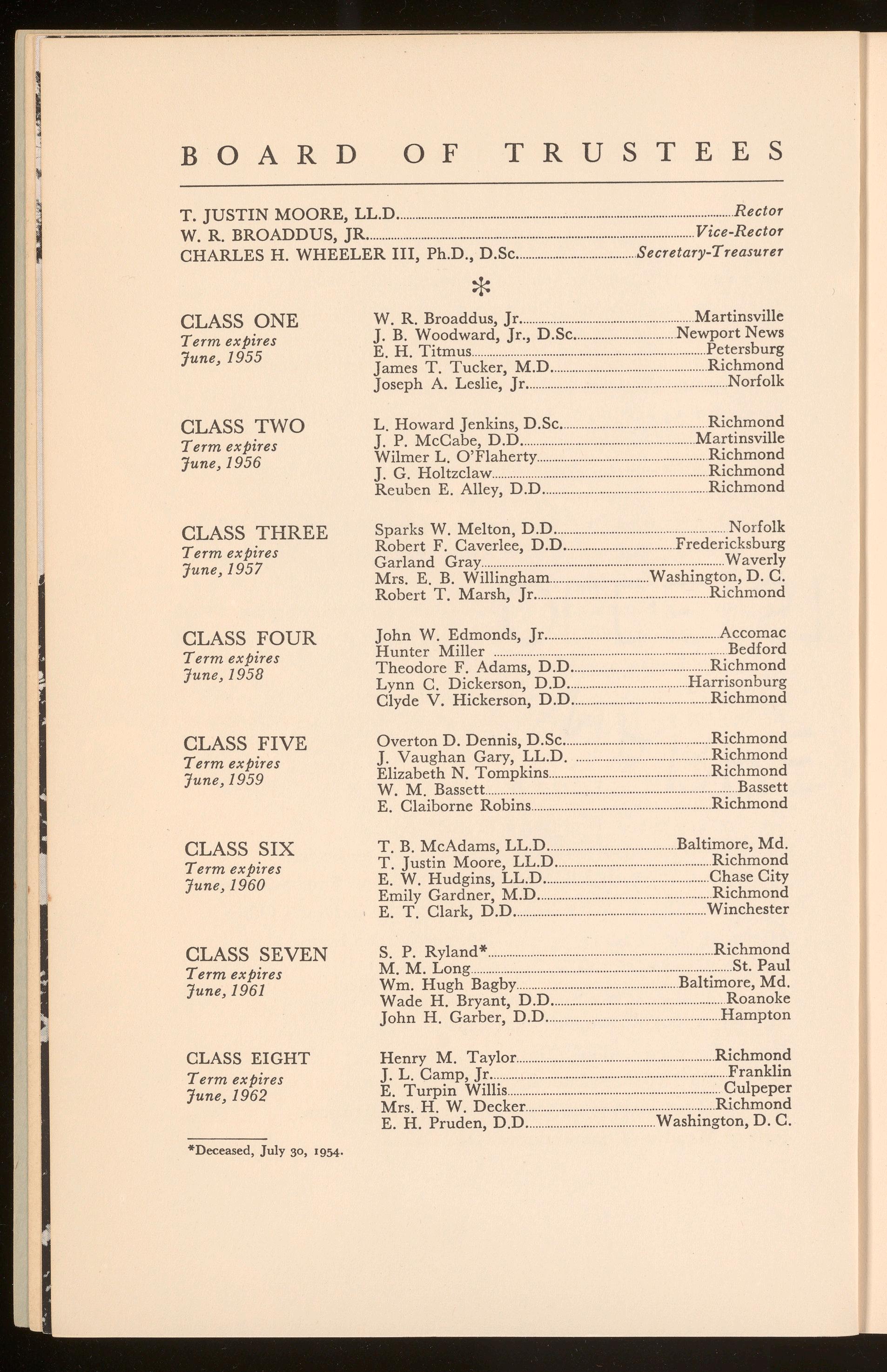 Overton D. Dennis, Theodore F. Adams, L. Howard Jenkins, Robert T. Marsh, Jr., E. Claiborne Robins, J. Brockenbrough Woodward, Jr., and the three ex officio members.