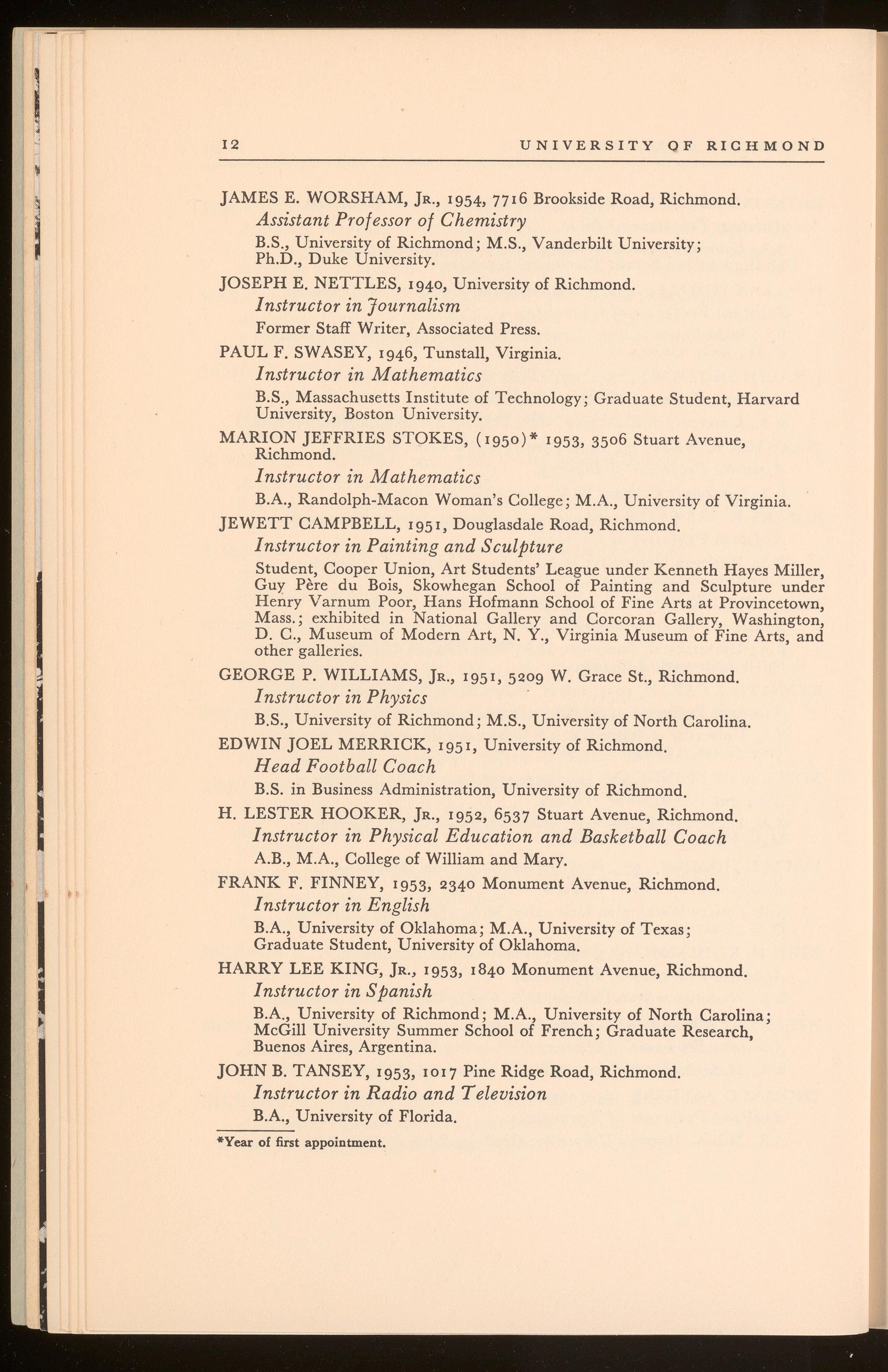 James M . Reynolds, Jr. (Chemistry) ..............................................................Richmond, Va.