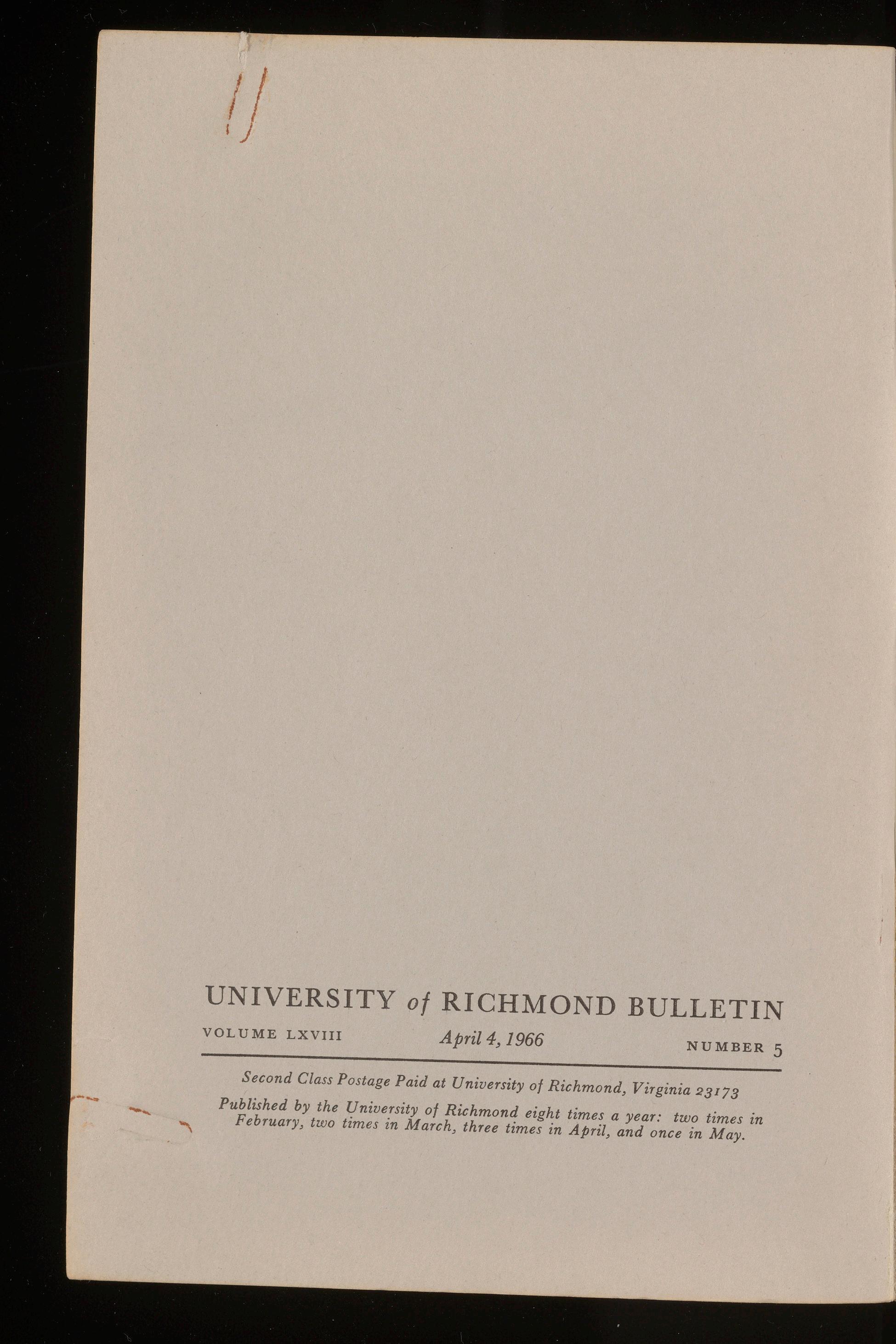 Second Class Postage Paid at University of Richmond, Virginia 23173 Published by the University of Richmond eight times a year: two times in February, two times in March, three times in April, and once in May.