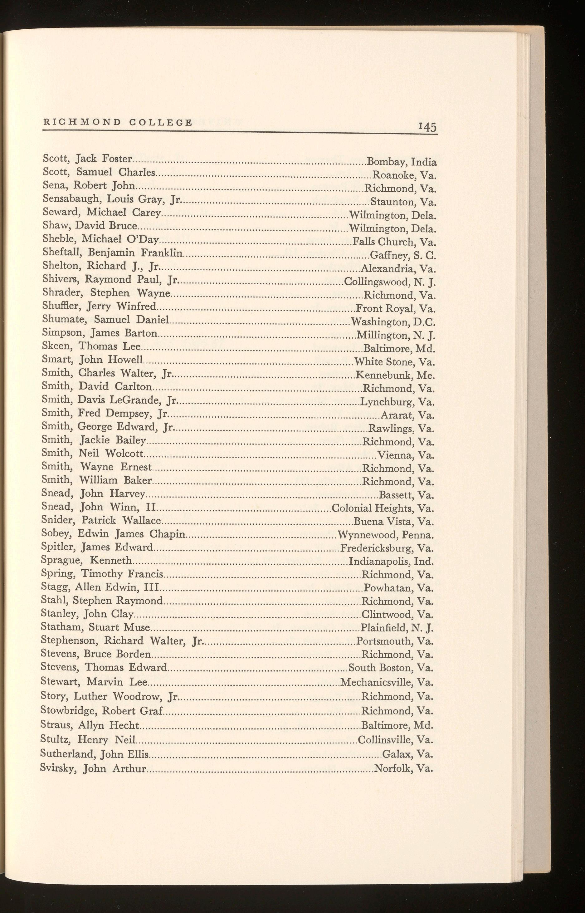 Pennsauken, N J. Wells, David Thomas ........................................................................ Richmond, Va. Wentz, William Ira Danville, Va. Westlow, Edward James, Jr