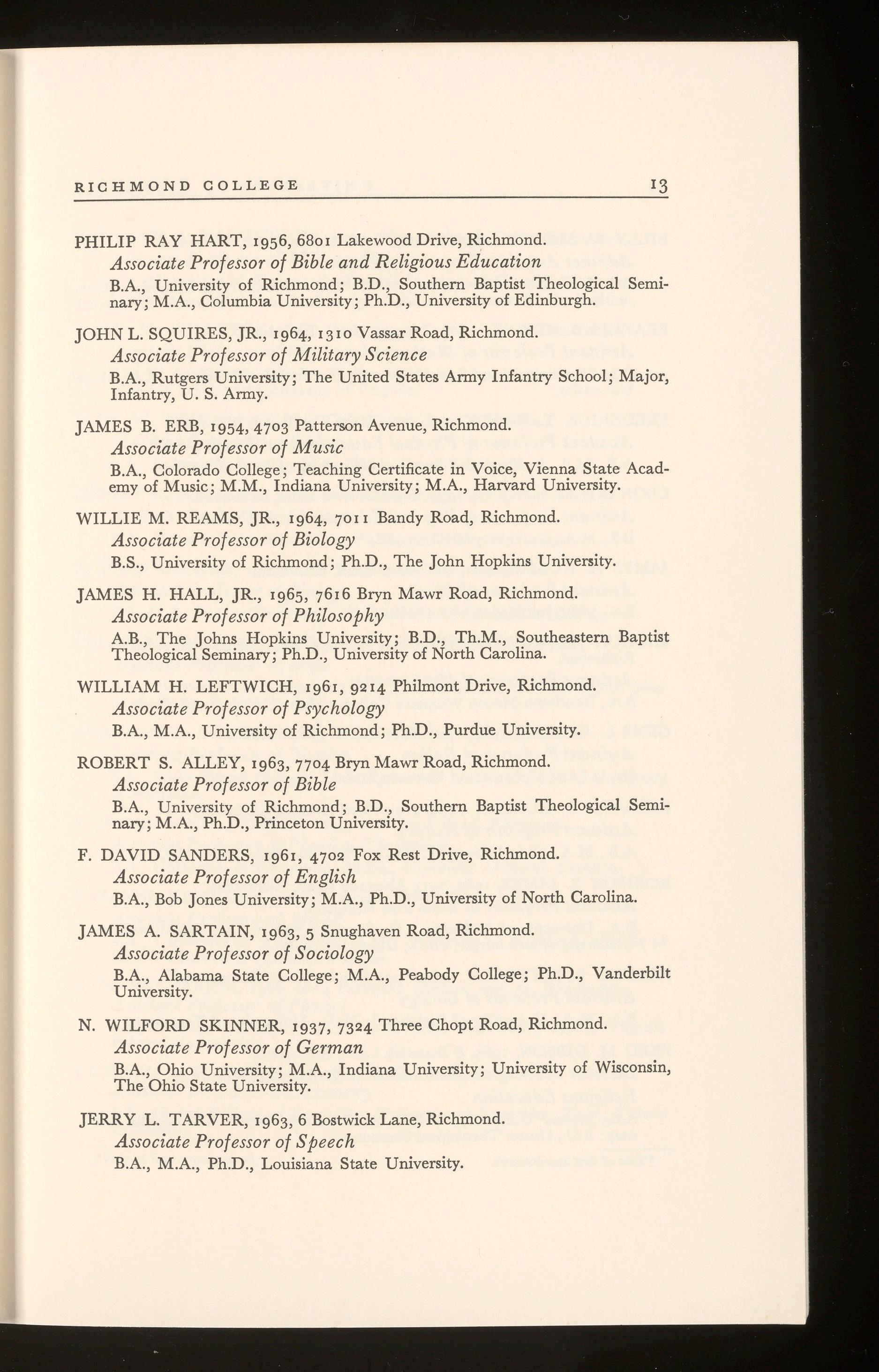 Wayland, Douglas Keith ............................ Richmond, Va. Weekley, Jeffrey Jennings Richmond, Va . Weissmann, Christopher Bell. ....................