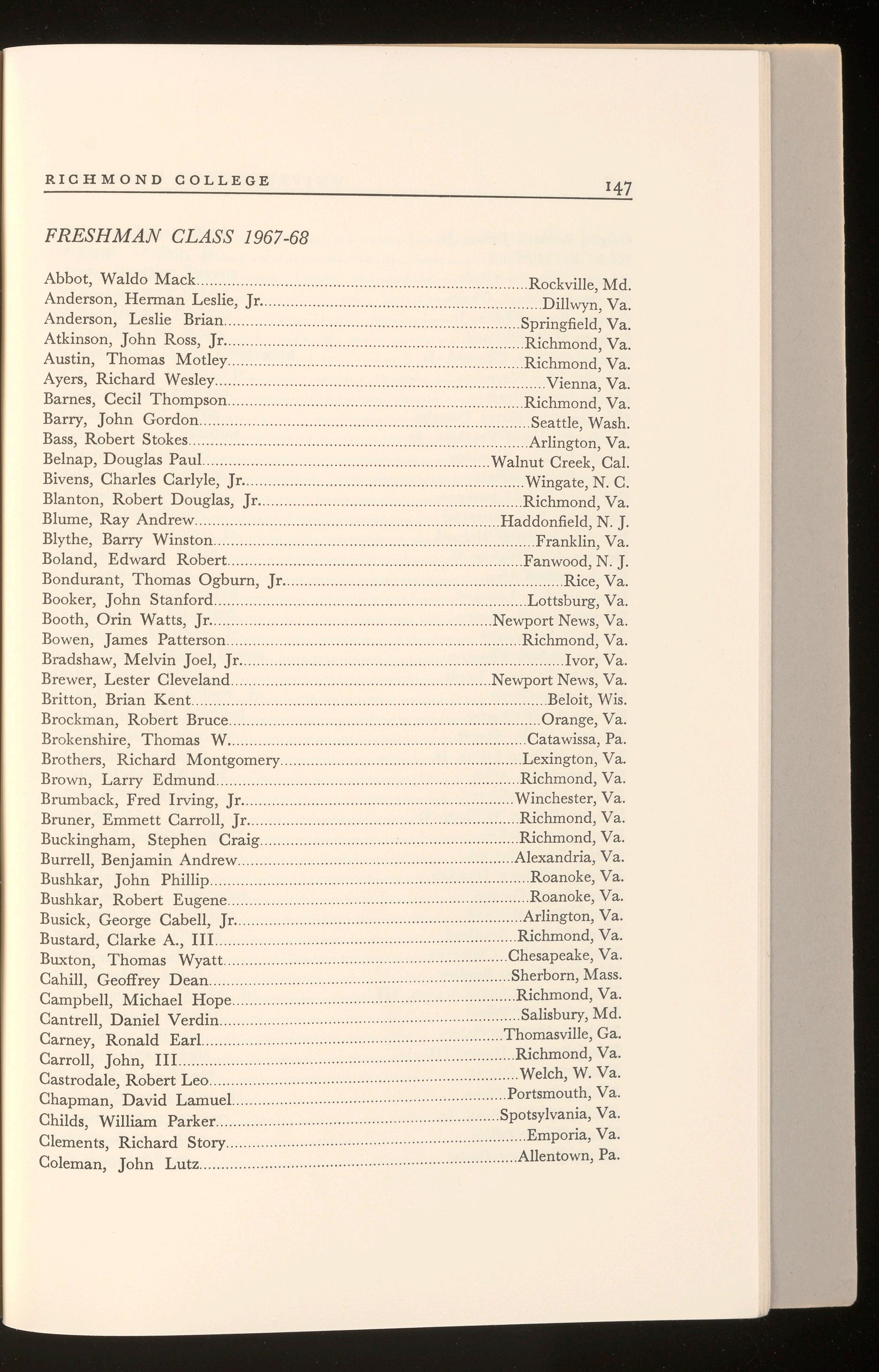 James Charles Jeffers (Political Science) ..................................... Richmond, Va.