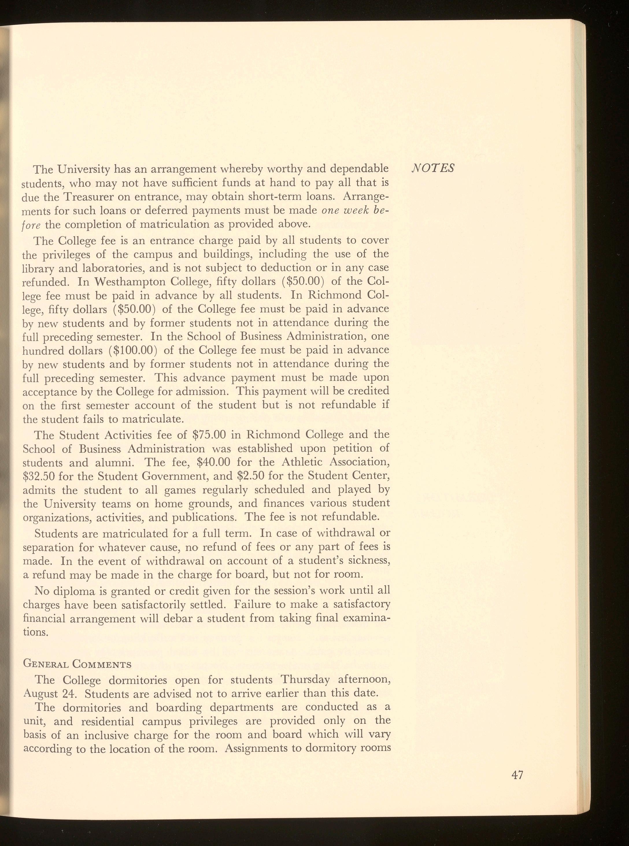 Richmond College , the oldest and largest of the seven colleges and schools that make up the University of Richmond , is the coordinate liberal arts and sciences division for undergraduate men. It offers programs that lead to the Bachelor of Arts and Bachelor of Science degrees. Students may concentrate in most academic fields except engineering . Pre-medical , pre-dental, pre-law, prebusiness, and pre-forestry courses are also offered. Twelve national fraternities have chapters on the campus, and a Student Center provides social activities for all students. Students also enjoy the varied social and cultural opportunities available in the City of Richmond. A 10-million dollar athletic center on the campus, with the most modern facilities for physical education and intercollegiate athletics, will be completed in December 1972. There is ample opportunity to participate in a variety of extracurricular activities.