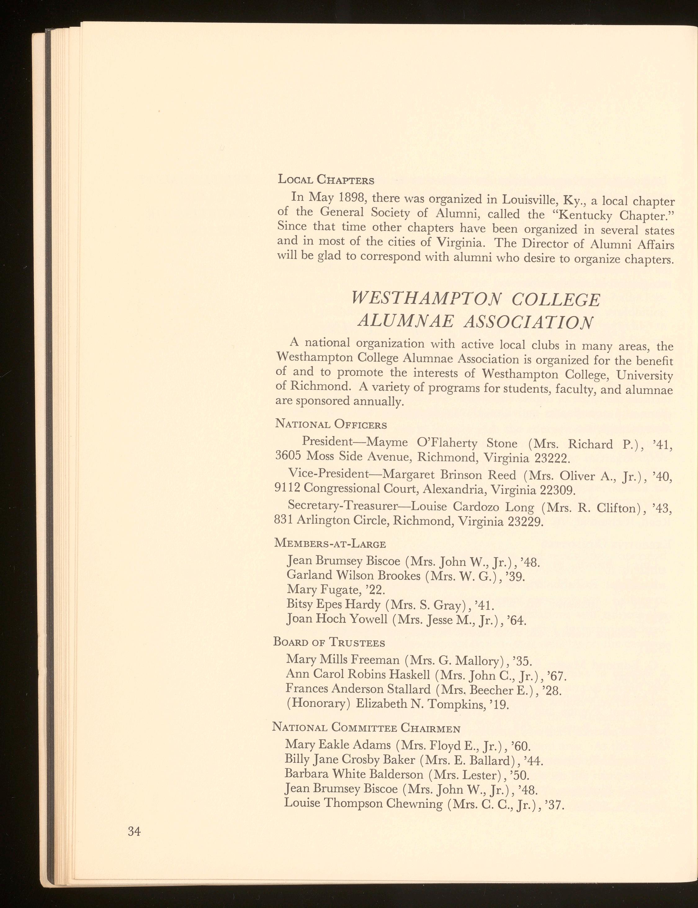 The University of Richmond is also a member of the Southern University Conference, the Association of American Colleges, the American Council on Education, the National Commission on Accrediting, the Council of Graduate Schools in the United States, and the National Association of Summer Sessions. In addition, Westhampton College is a corporate member of the American Association of University Women.