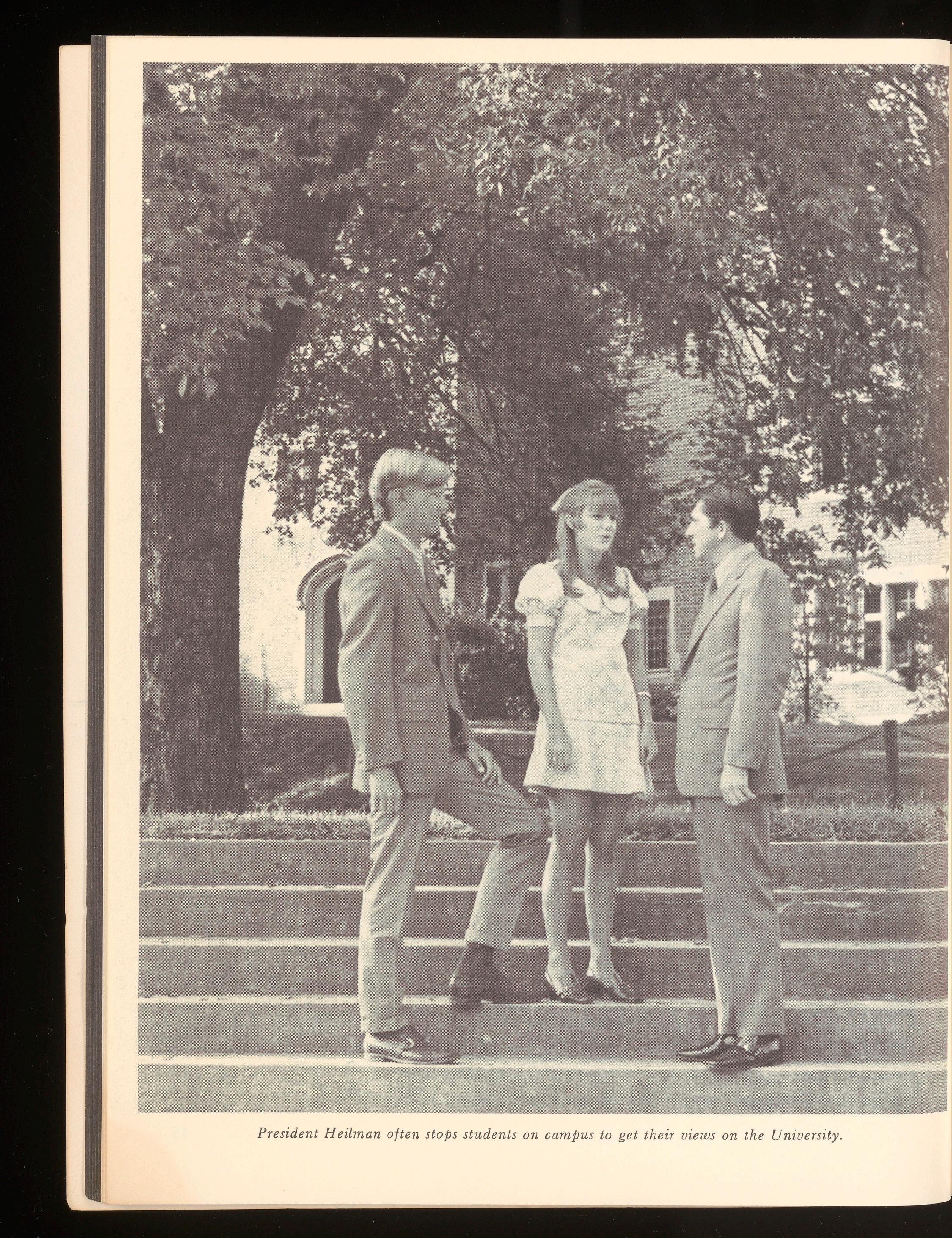 President Heilman often stops students on campus to get their vie ws on the University
