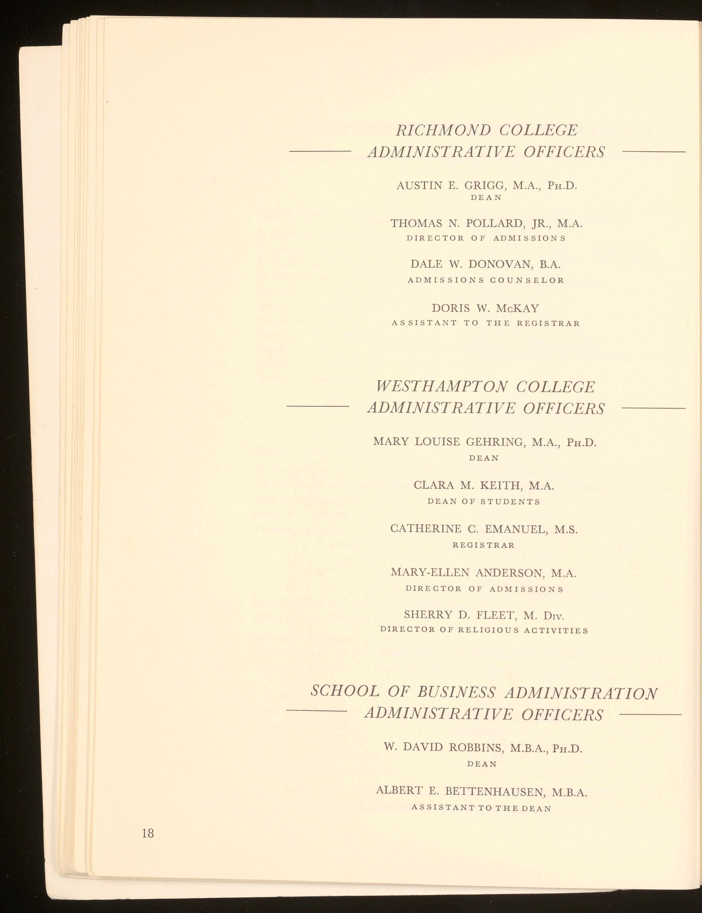The University of Richmond is also a member of the Southern University Conference, the Association of American Colleges, the American Council on Education , the National Commission on Accrediting, the Council of Graduate Schools in the United States, and the National Association of Summer Sessions. In addition , Westhampton College is a corporate member of the American Association of University Women