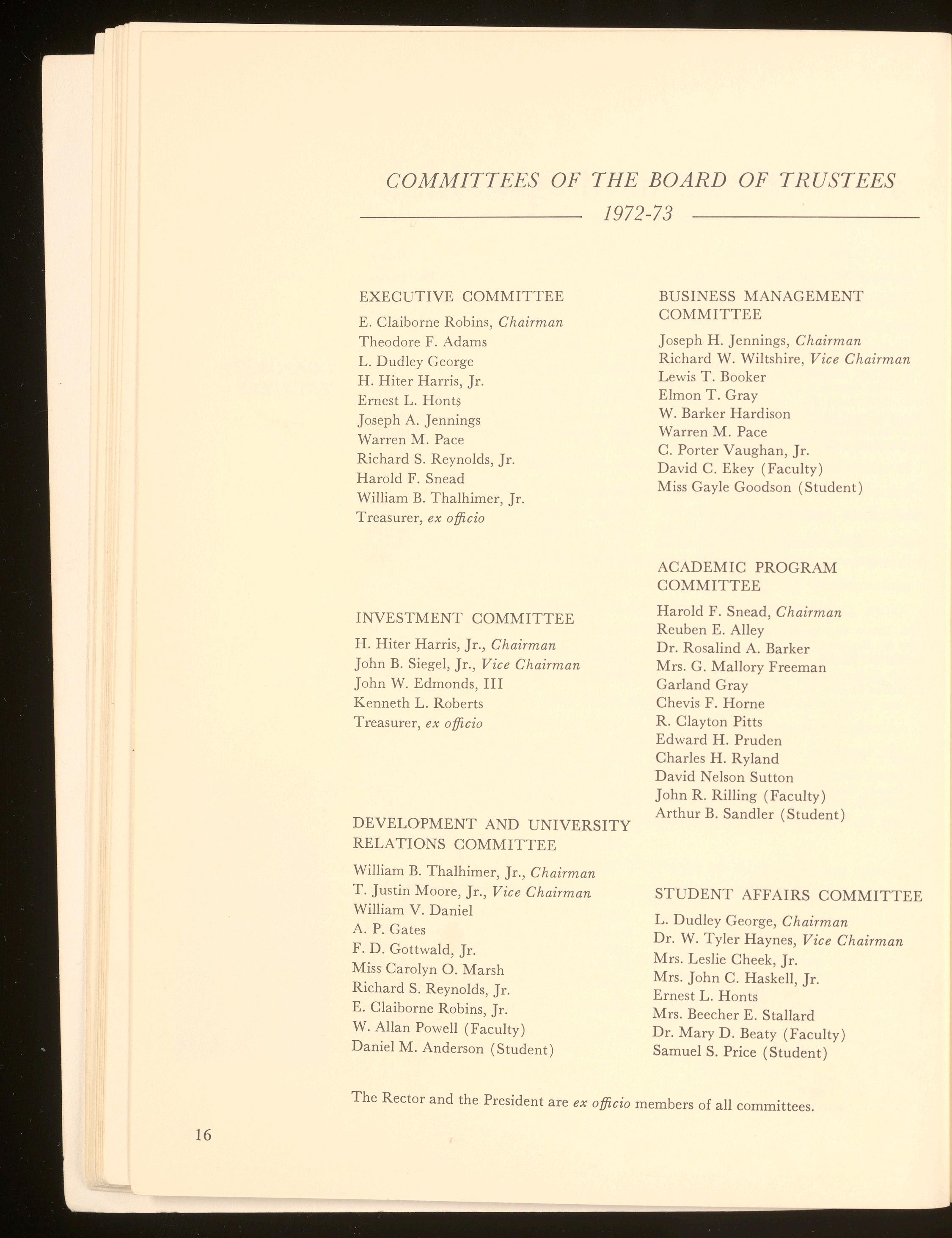 Trustees, Board of 15