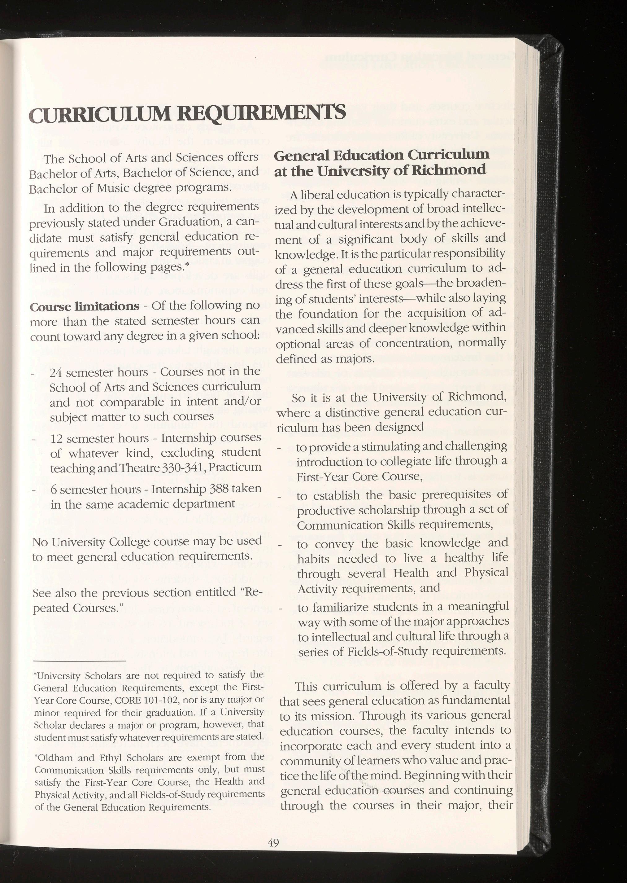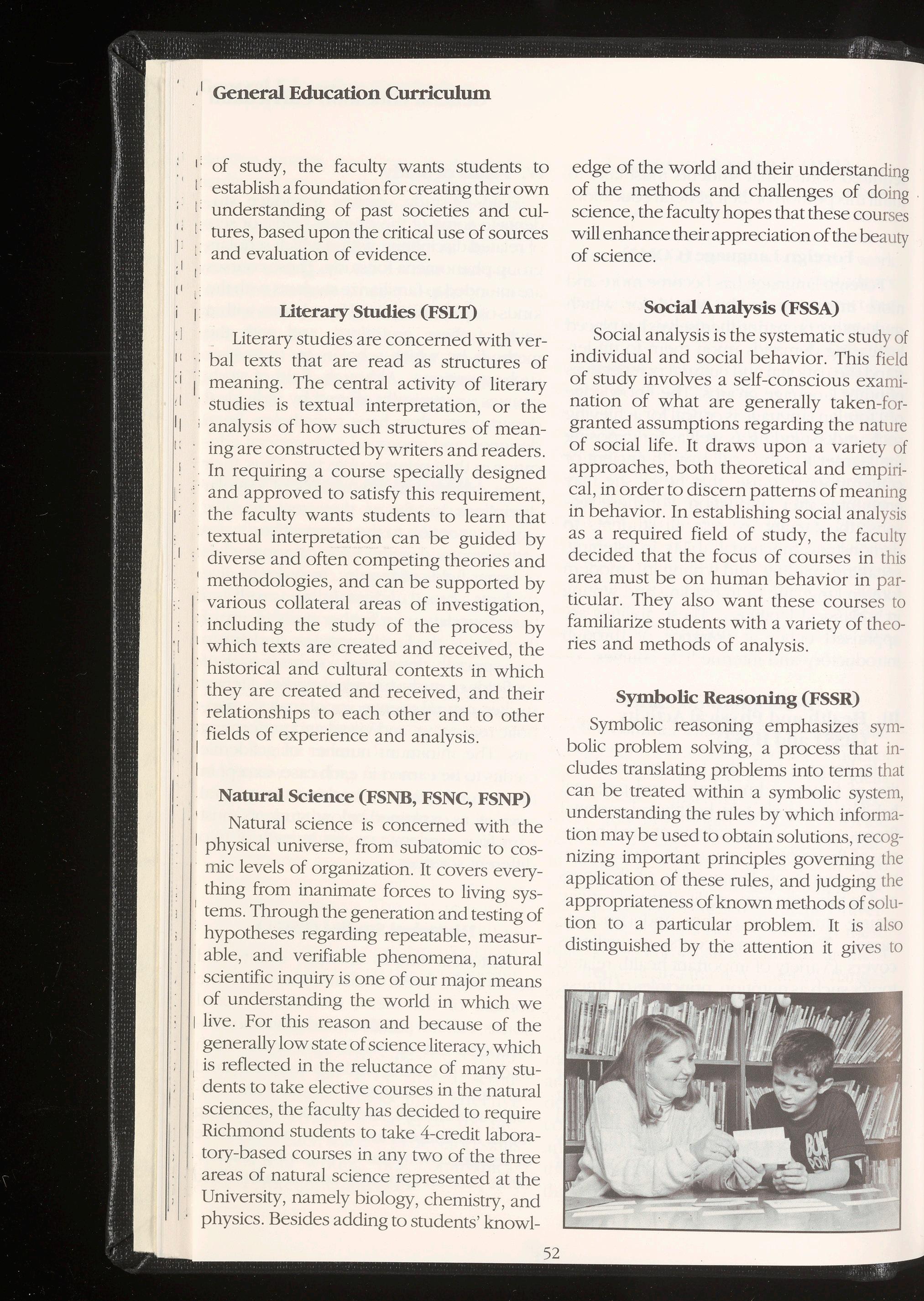 The goal of the university's academic programs is not simply to impart knowledge. Instead, we seek to instill in our students attitudes, values, habits of mind, and an appreciation of intellectual and cultural experience which will cause them to be thoughtful and critically reflective throughout their lives. We also seek to provide strong foundations in analytic and problem-solving skills and in ethical and social responsibility upon which graduates build during the course of their lives. To this end, we seek to provide a context that promotes both the development of intellectual curiosity and a strong commitment to the value of learning for its own sake. The love of learning, the desire to pursue ideas, and the recognition of the need to think in a complex manner about intellectual questions should become so ingrained in our students that these characteristics become life-long attributes which influence how our graduates live and think.