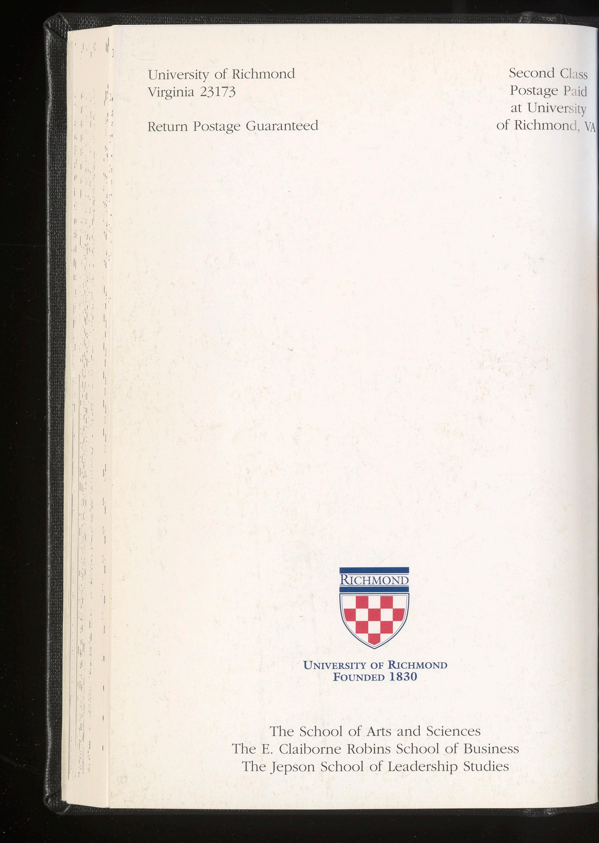Second-class postage paid by University of Richmond, Virginia 23 173. Published by the University of Richmond four times a year : once in Februa1y, once in April, once in Jun e and once in August.
