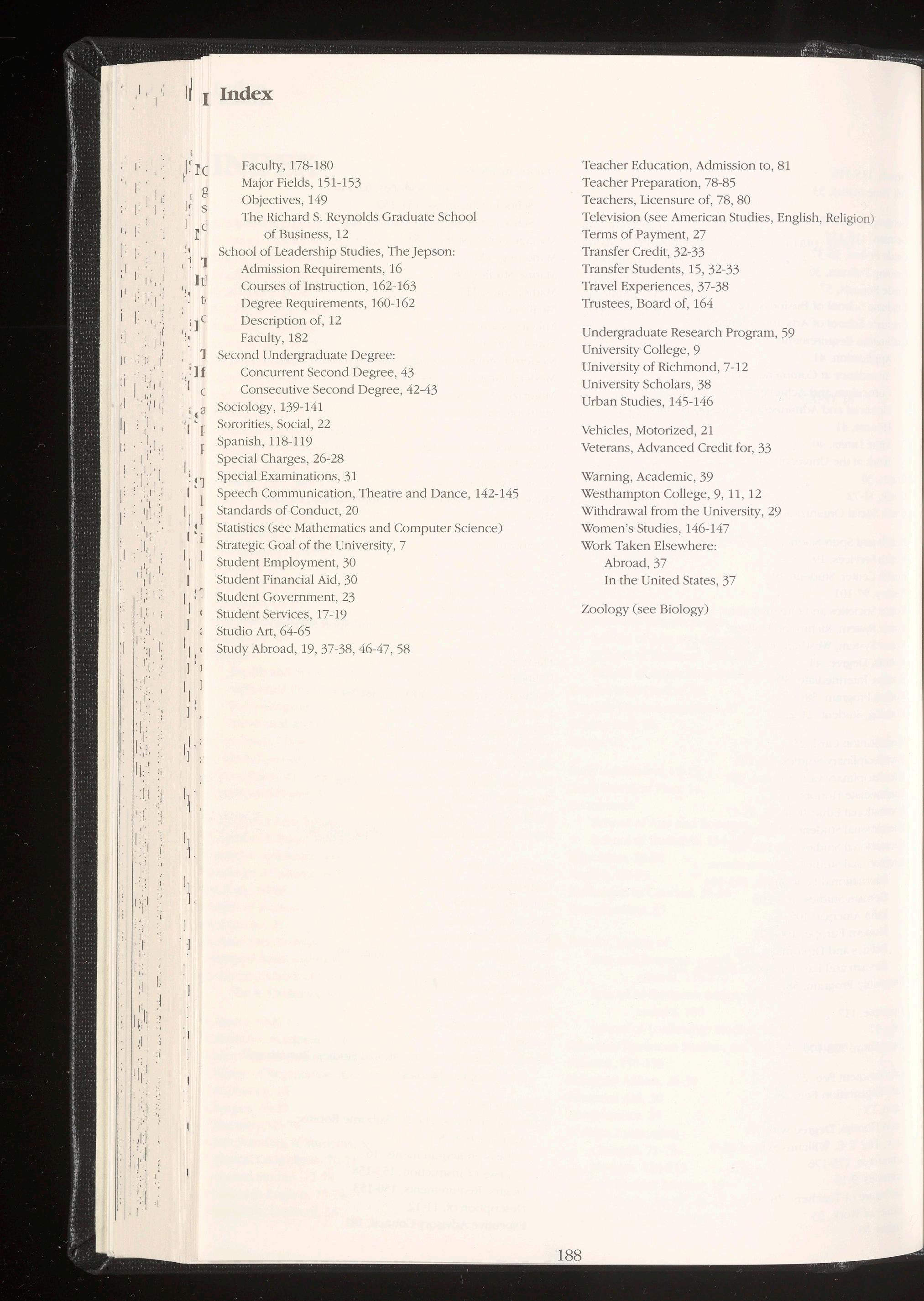 Honor System. Richmo n d Co llege, 20 I lonor System, Westh ampton Co llege , 20 Honors, Degree, 41 Honors, Intermediate, 39 Ilonors Program, 58 !lousing, Student, 21-22