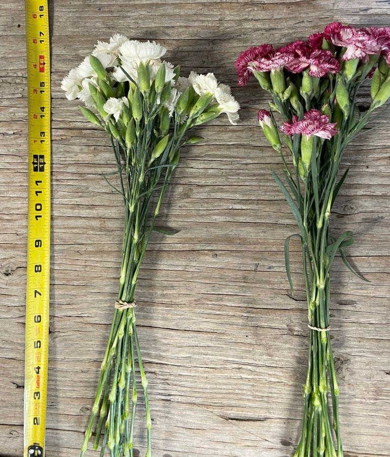 Carnation has a longer maturation period than other annual cut flowers, with approximately 130 to 140 days from seed to bloom. Likewise, determining the right harvest stage for carnation is greatly dependent on the sales channel or market. Standard flowers with one bloom per stem are harvested when the bud is cracked and showing color (referred to as the “star stage”) or when petals are straight up or open but not yet