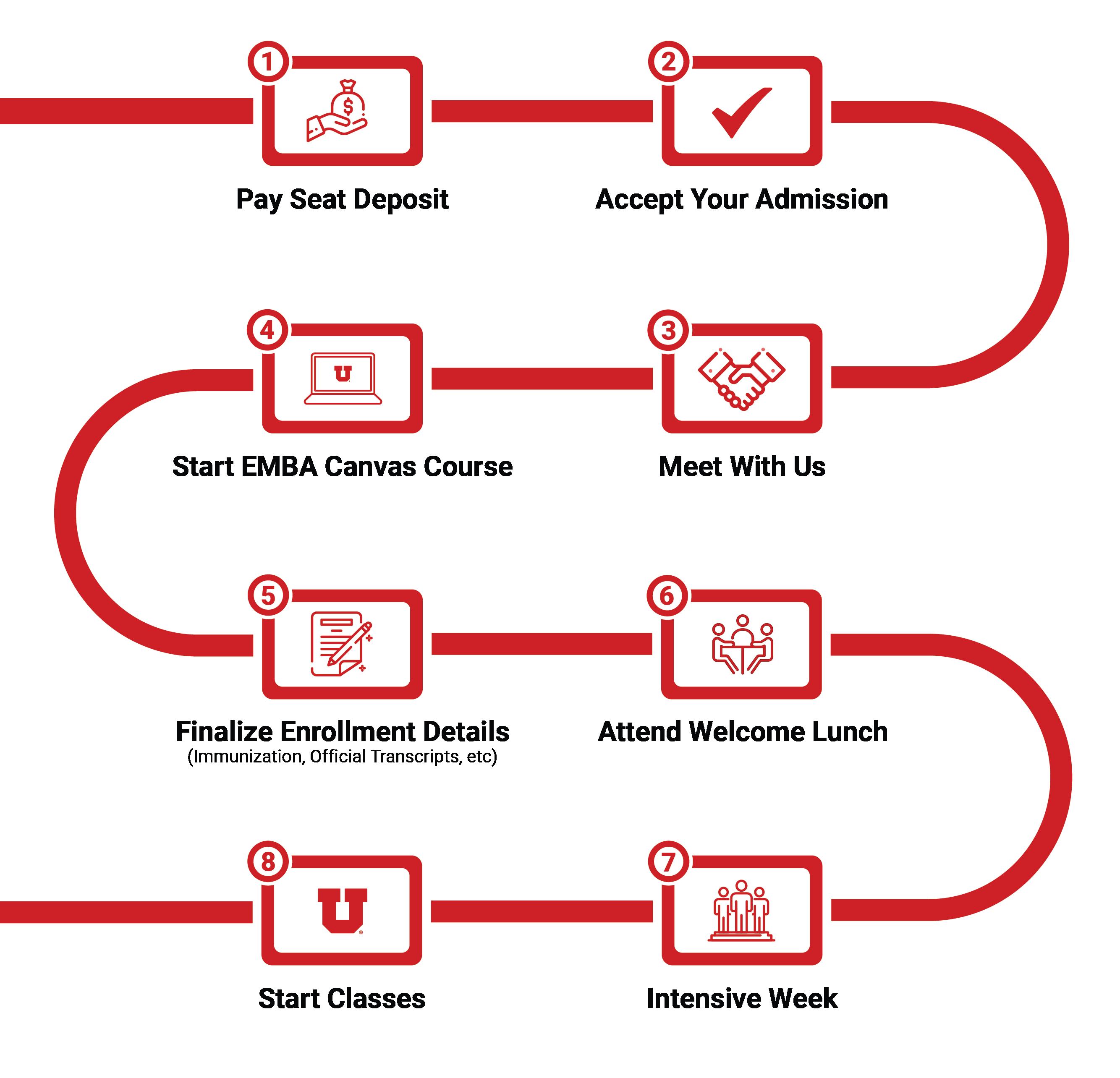 You are joining one of the most elite programs at the University of Utah, the Executive MBA at the David Eccles School of Business. Over the next 21 months, you will be challenged, inspired, and transformed alongside accomplished leaders from diverse industries. We cannot wait to begin this journey with you.
