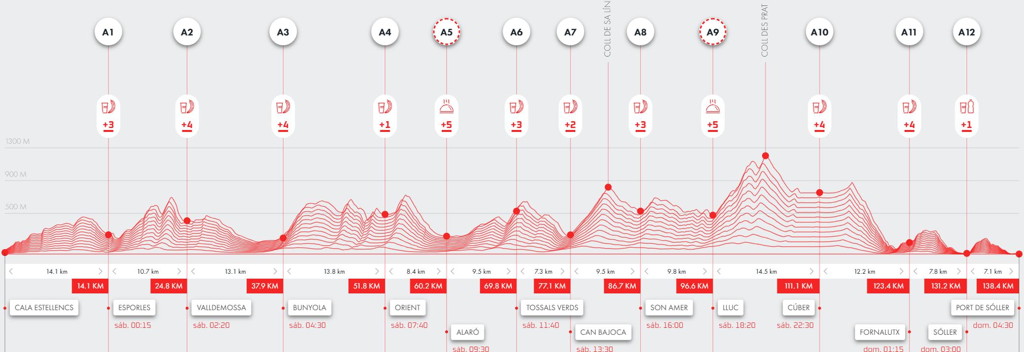 • Female changing rooms at aid stations with life bags (Alaró and Lluc).
