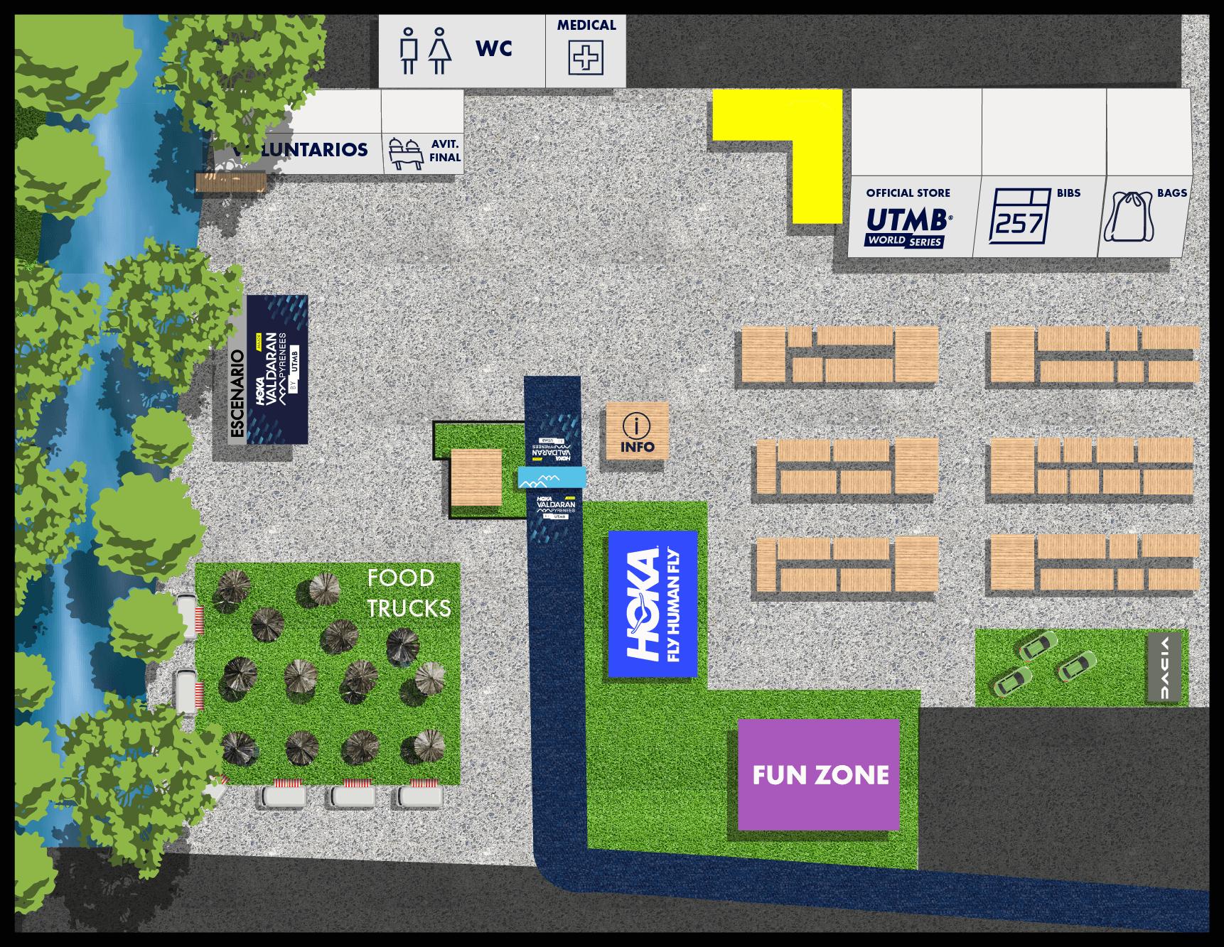 In this space, made up of wooden huts, there will also be the collection of race bibs, the sale of event merchandising, and there will be a runner information and service centre.