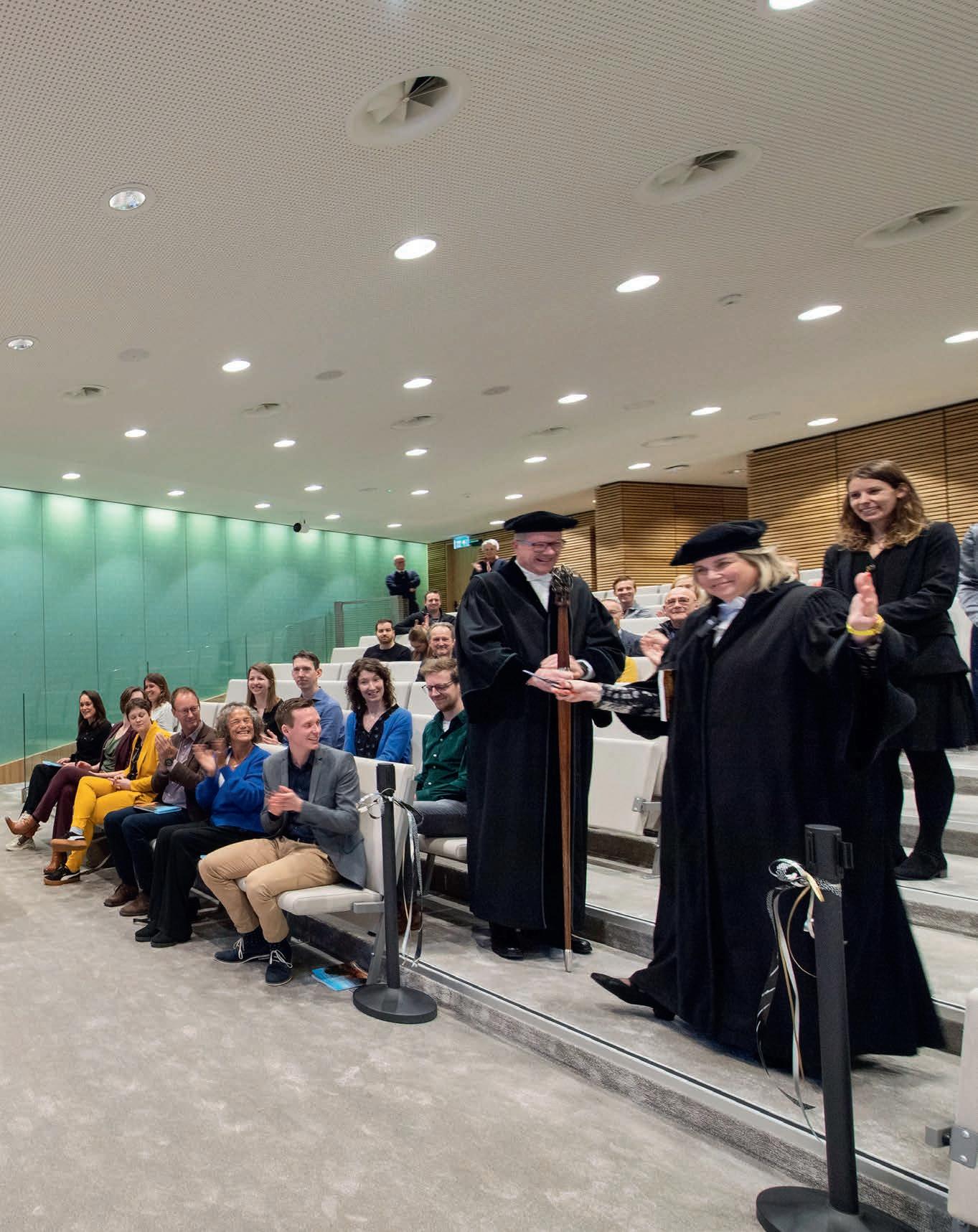 ‘Dear learned doctor [….….] Let me congratulate you also on behalf of the university with your acquired dignity. From now on you have the right to use the title of doctor. This title implies that society can rely on the quality of your judgement, that you will act with integrity and transparency, and that you will communicate independently about the results and the social relevance of your work. Value the doctoralis as an honourable distinction and a well-deserved prerogative, but always remember the obligations imposed by it, towards the scientific community and society.’