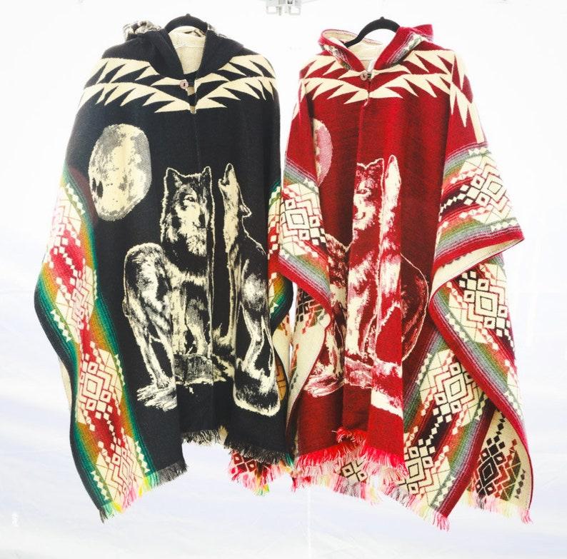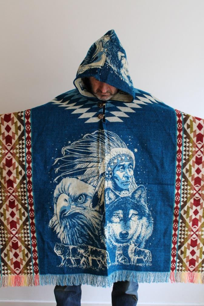 Diseño de nativos americanos “Pluma Blanca” plasmado en poncho.